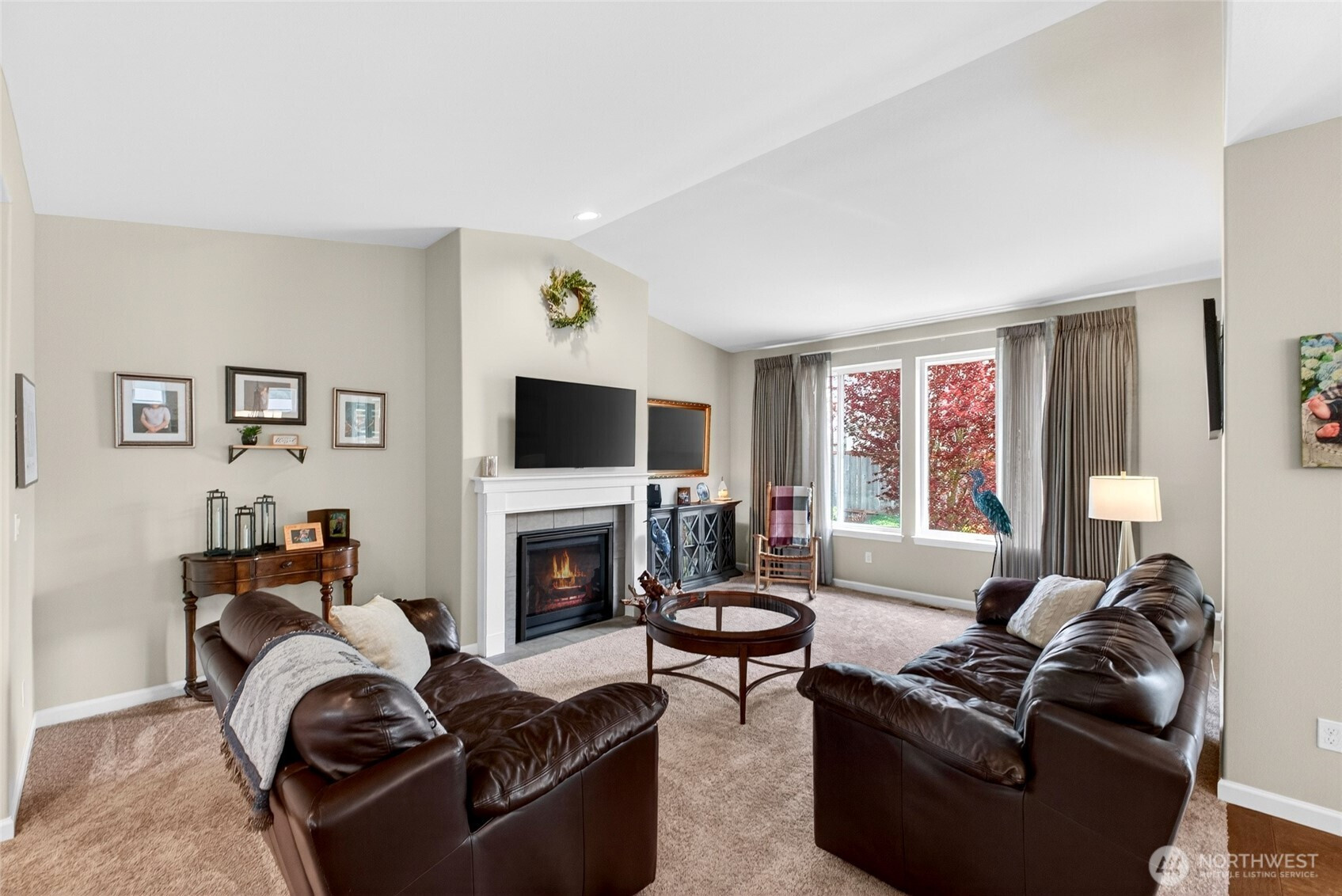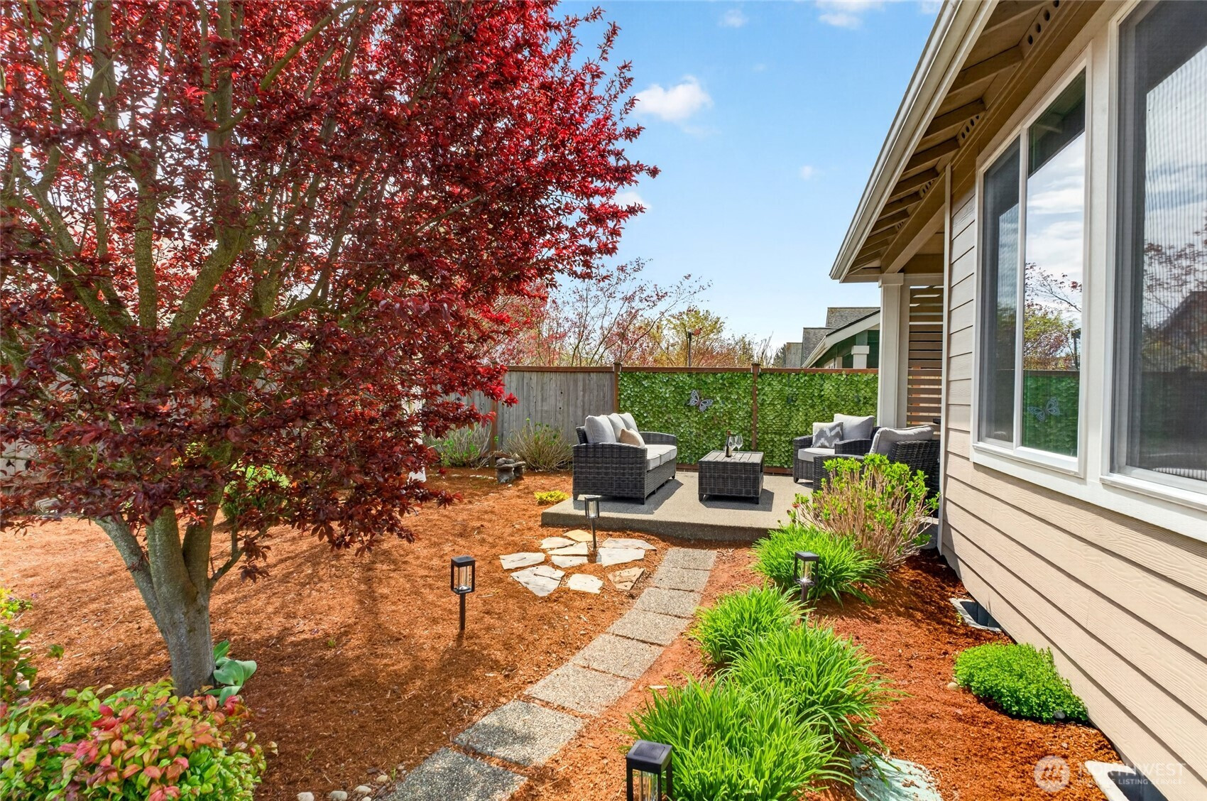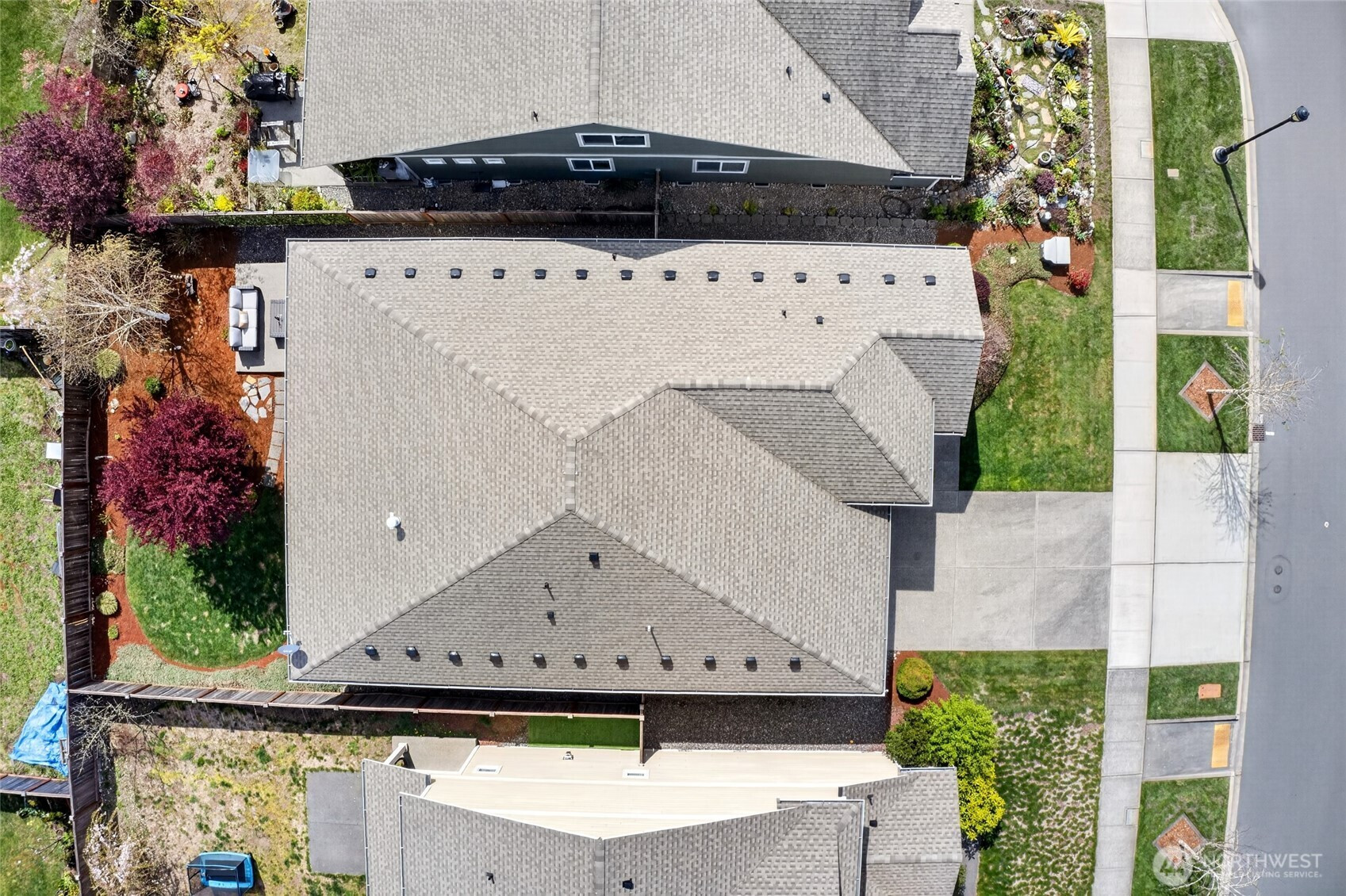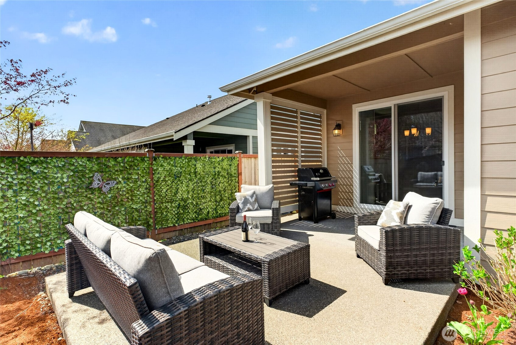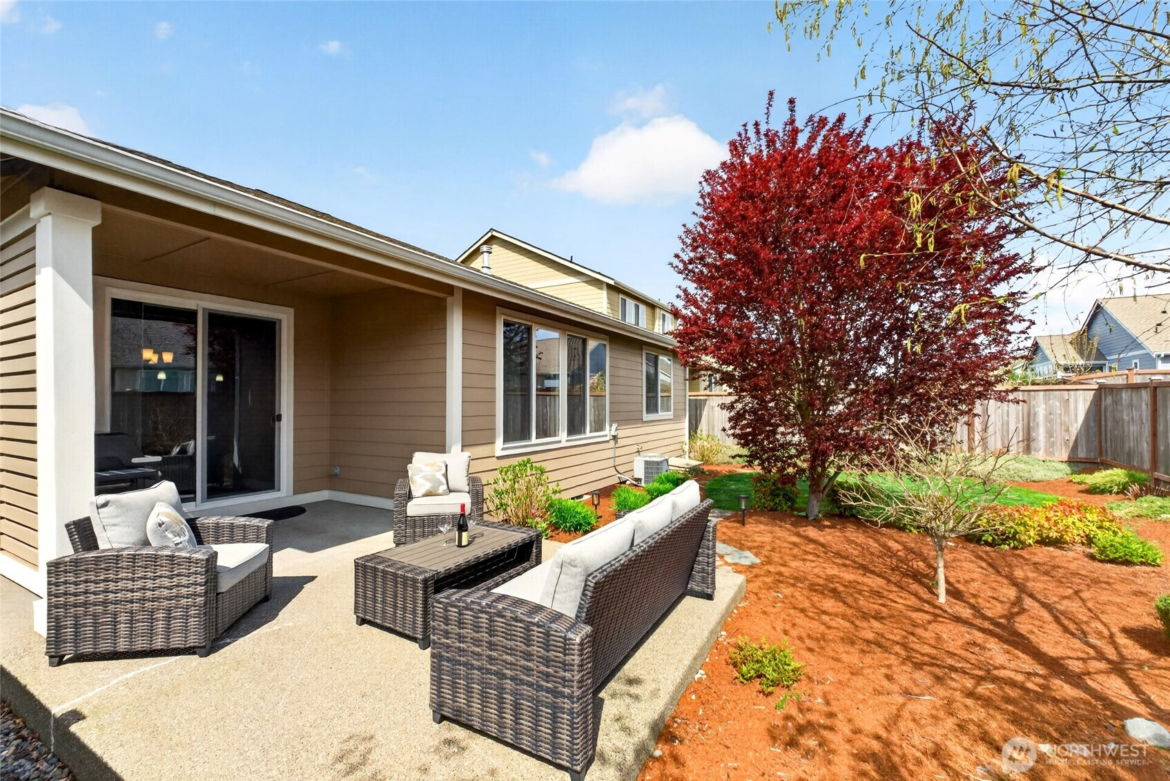 Experience the Juniper by Rob Rice Homes, a stunning 3 bedroom luxury rambler in the sought-after Steilacoom Ridge community. Boasting over 1,700 square feet of meticulously maintained living space, this home stands out from surrounding homes with high-end upgrades including custom shutters, a whole-house surge protector, tankless water heater, professional front/back yard landscaping & a sprinkler system. The heart of the home is a gourmet kitchen featuring an expansive granite island that serves as a natural hub for entertaining, complemented by premium stainless steel appliances & elegant beech wood cabinetry w/soft-close drawers. The open-concept living area is anchored by a cozy gas fireplace, while the oversized primary suite offers a true retreat w/a spacious walk-in closet & luxurious 5-piece bath. A full guest bathroom & two additional well-appointed guest bedrooms provide plenty of space for visitors or home office. For added convenience, the laundry is ideally located in the hallway & provides direct access to the 2-car garage. Enjoy year-round comfort with included AC & seamless indoor-outdoor living on the covered back patio, featuring a built-in privacy screen & a fully fenced yard. This prime location is just a block away from a community park & offers an effortless commute with quick access to I-5 & JBLM, all while staying just minutes from the 100-acre Regional Athletic Complex, Chehalis Western Trail, premier shopping, dining & entertainment. Welcome Home!