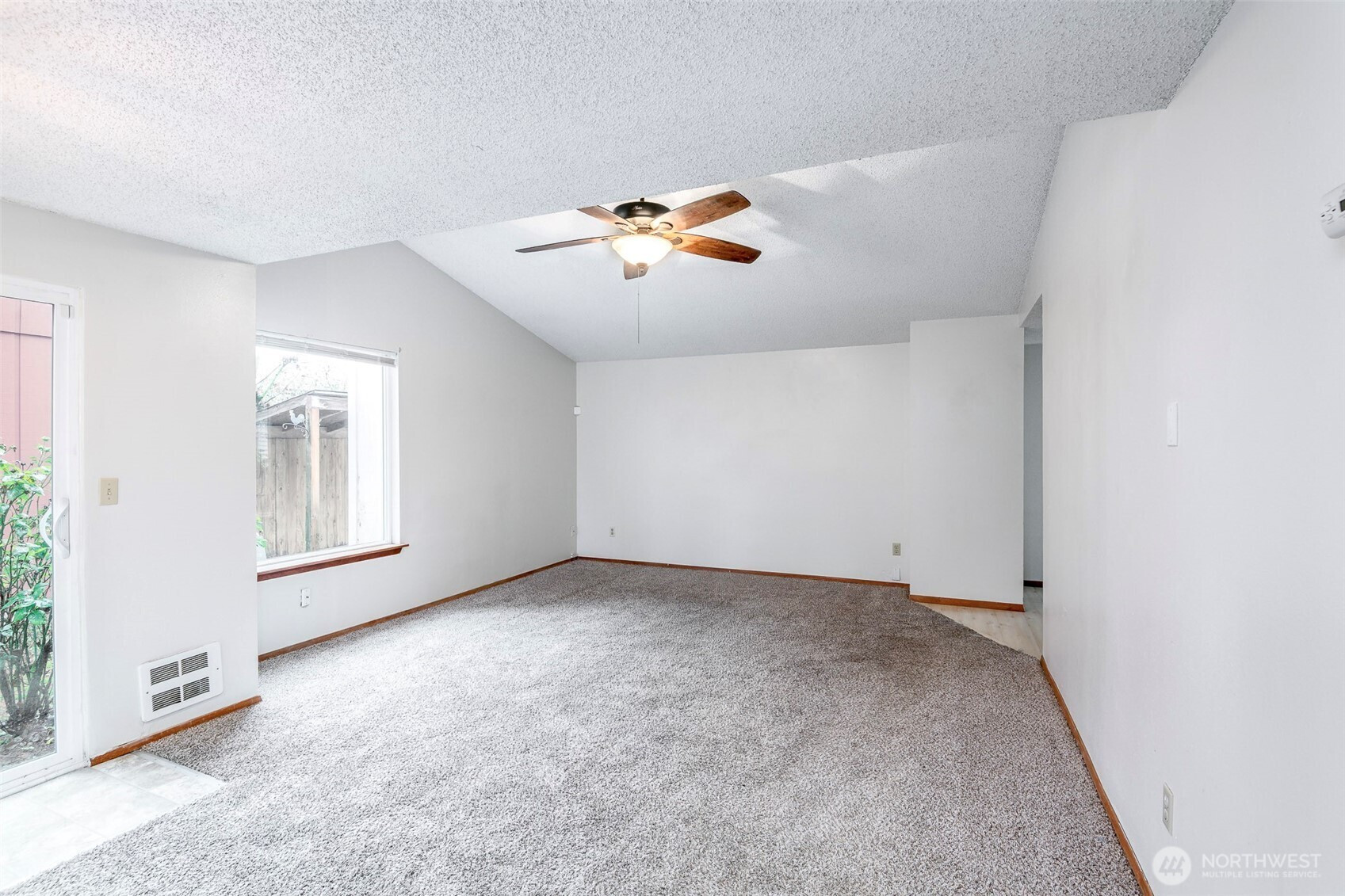 Welcome home to this charming 3 bedroom, 1.75 bathroom home with 1,092 sqft featuring a large living space with a flexible layout thats ideal for everyone! Walk inside to a light & bright inviting living room with high ceilings that opens to the dining room & kitchen. Kitchen has tons of cabinet space & pantry, large secondary bedrooms, great size bathroom and a primary bedroom with it's own bathroom attached! Step outside to your fully fenced backyard with enough space to play and call your own! This move-in ready home is conveniently located near restaurants, shopping, parks and perfect for commute to JBLM. Hurry-you won't want to miss this one!
