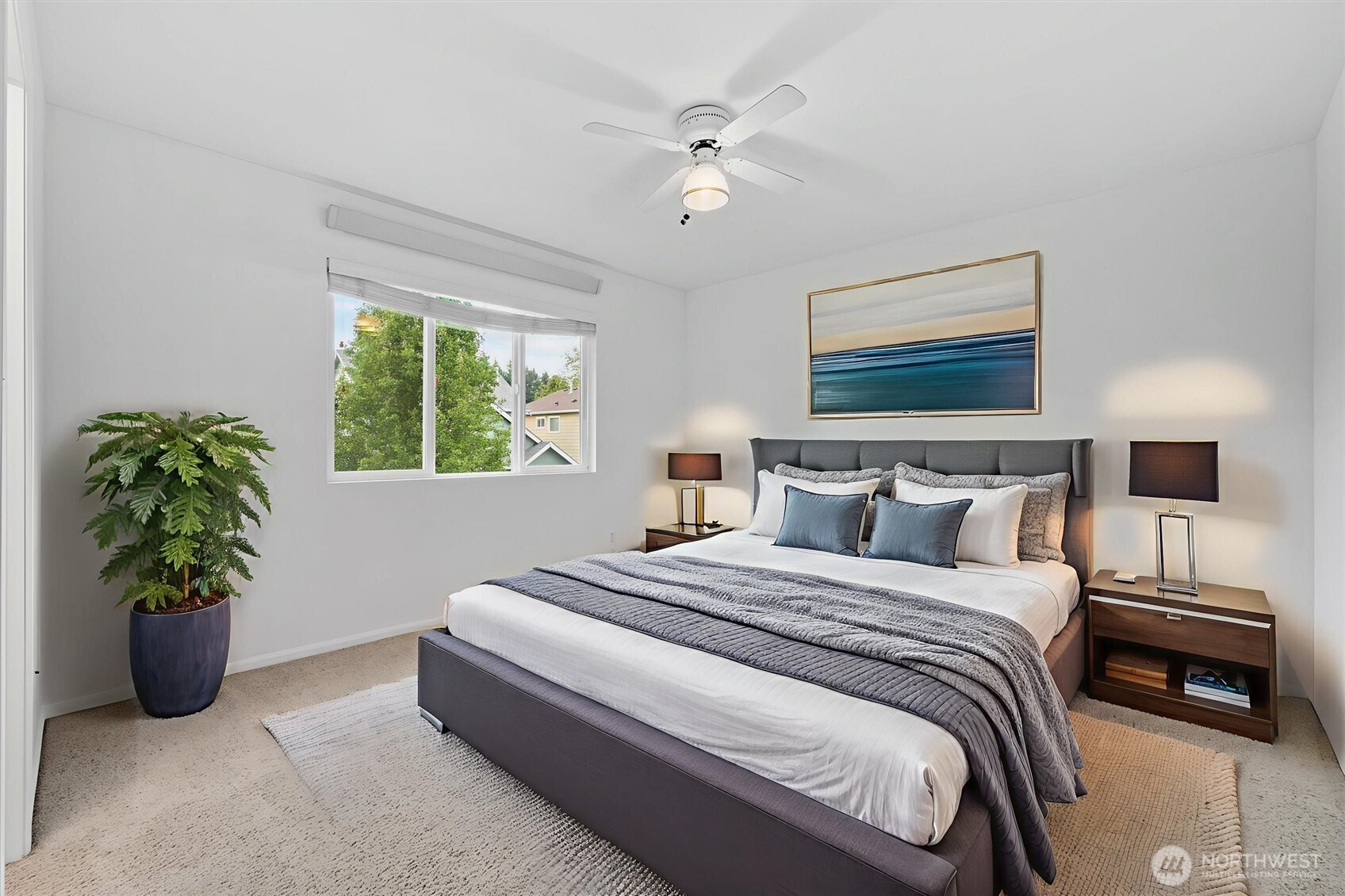 Nestled in the sought-after Horizon Pointe neighborhood, this beautiful townhome! The bright, open-concept layout is ideal for entertaining, a spacious kitchen with an oversized island that connects to the main living areas. Large windows with natural light, creating a warm and inviting atmosphere. Main level, you’ll find a charming powder room, upstairs boasts TWO primary suites—each with its own ensuite bath and walk-in closet. The laundry room is located upstairs. Fully fenced, back yard with attached garage. The quiet community offers a park with athletic fields. Just minutes from shopping, dining, and popular Lacey golf courses, this home combines the charm of small-town living with everyday convenience!