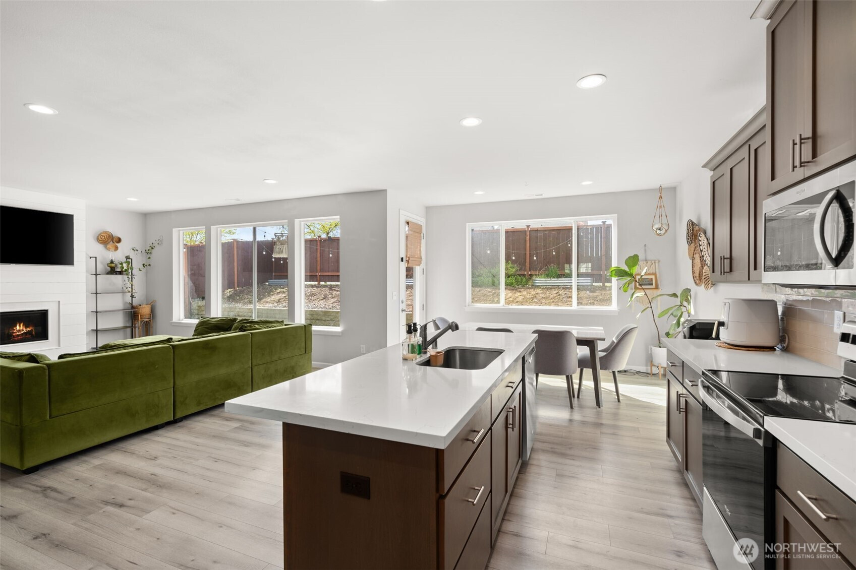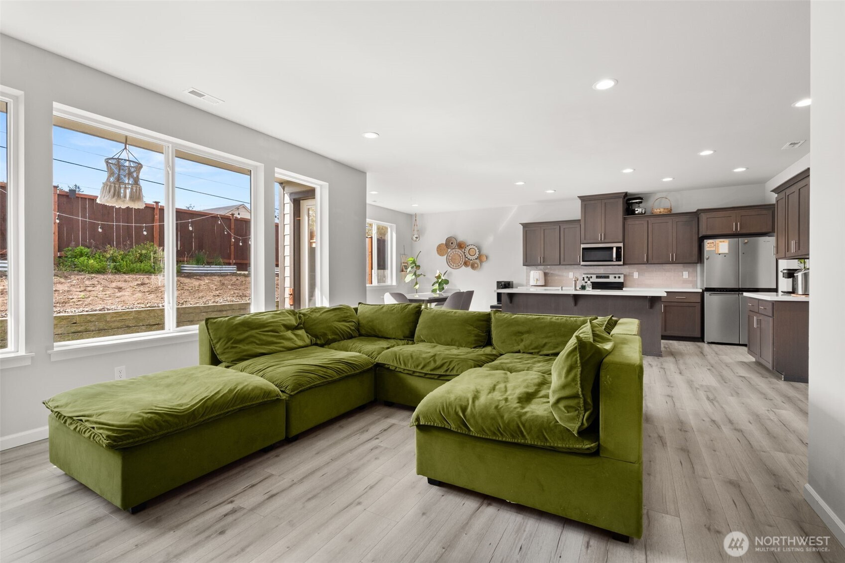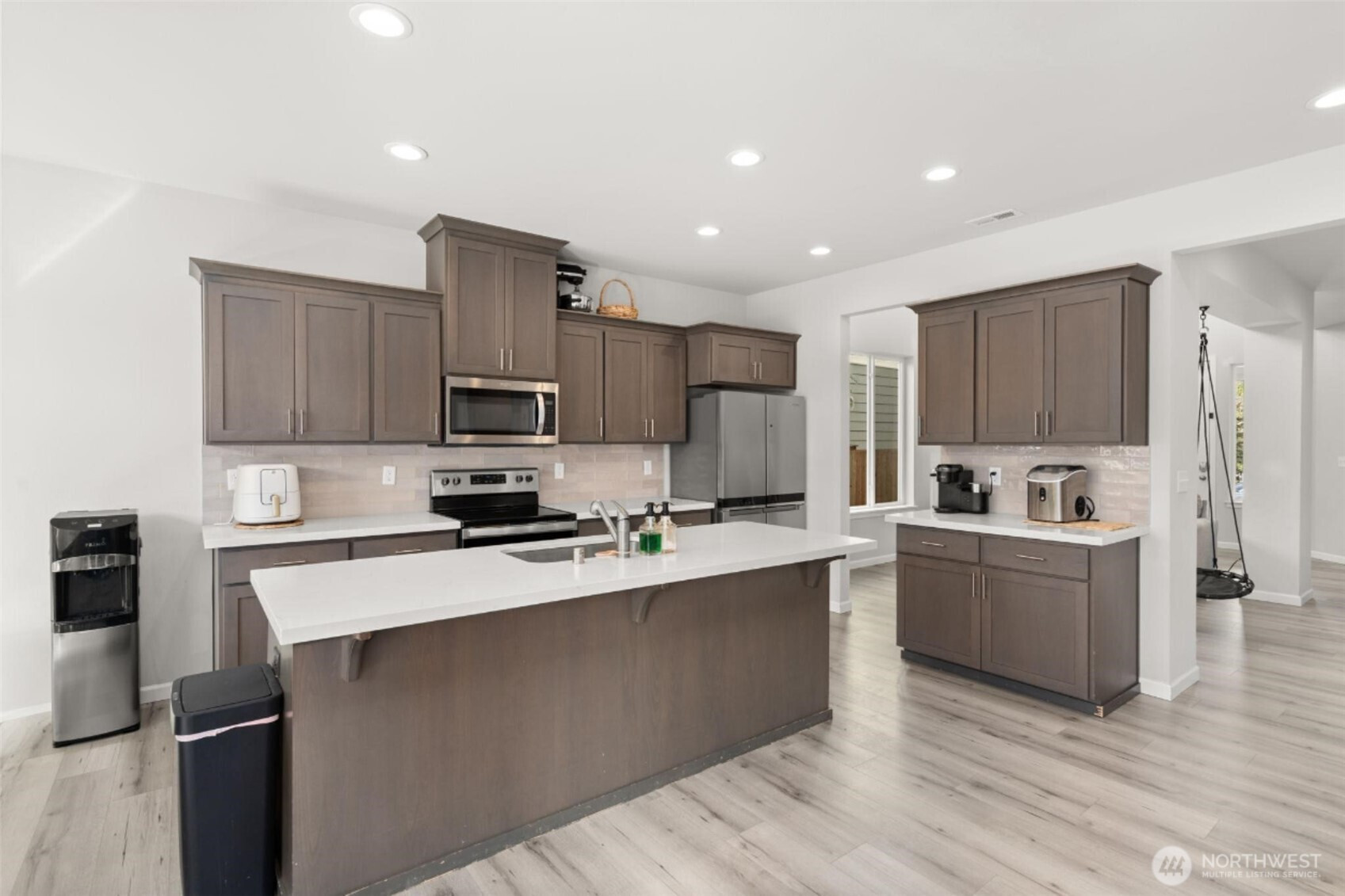 Welcome to Susan Lake Court by Sager Family Homes, a quiet cul-de-sac community of just 16 homes with convenient access to schools, shopping, parks, and I-5 for commuters. This 2,565 square foot home features a functional and inviting layout centered around great room living, with a spacious kitchen and large island that opens to the main living area, along with a formal dining space and an additional flex room on the main floor that works well as a home office or extra living space. Upstairs offers a generous primary suite with an en-suite bath, three additional well-sized bedrooms, a full bathroom, and convenient upstairs laundry. Additional features include high ceilings, a two car garage, and a heat pump with 90%+ efficiency heating and forced air cooling for year round comfort. All stainless steel appliances are included, including the dishwasher, microwave, range, washer, and dryer, making this home move in ready.