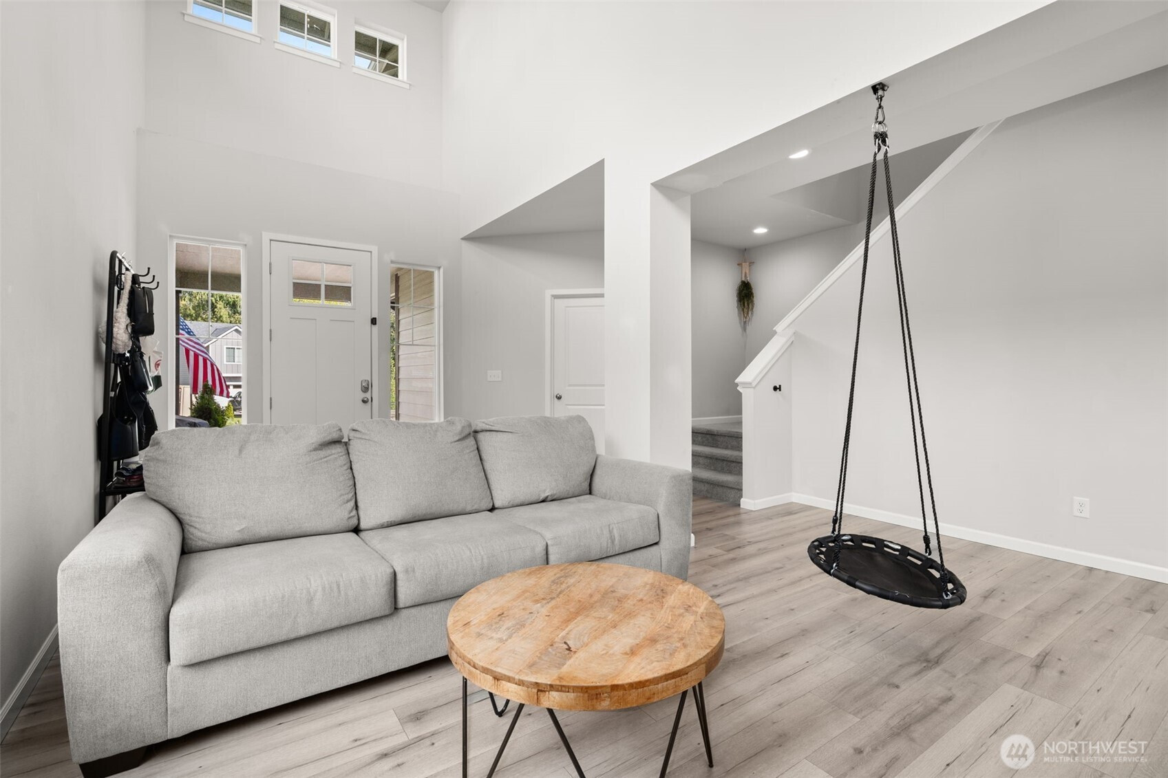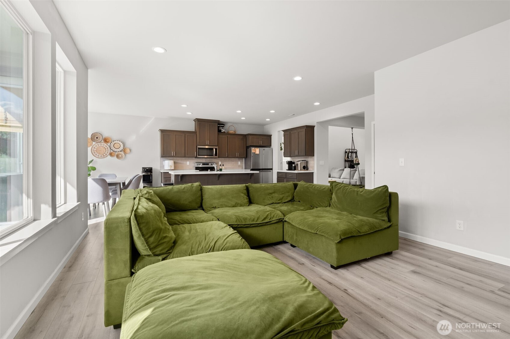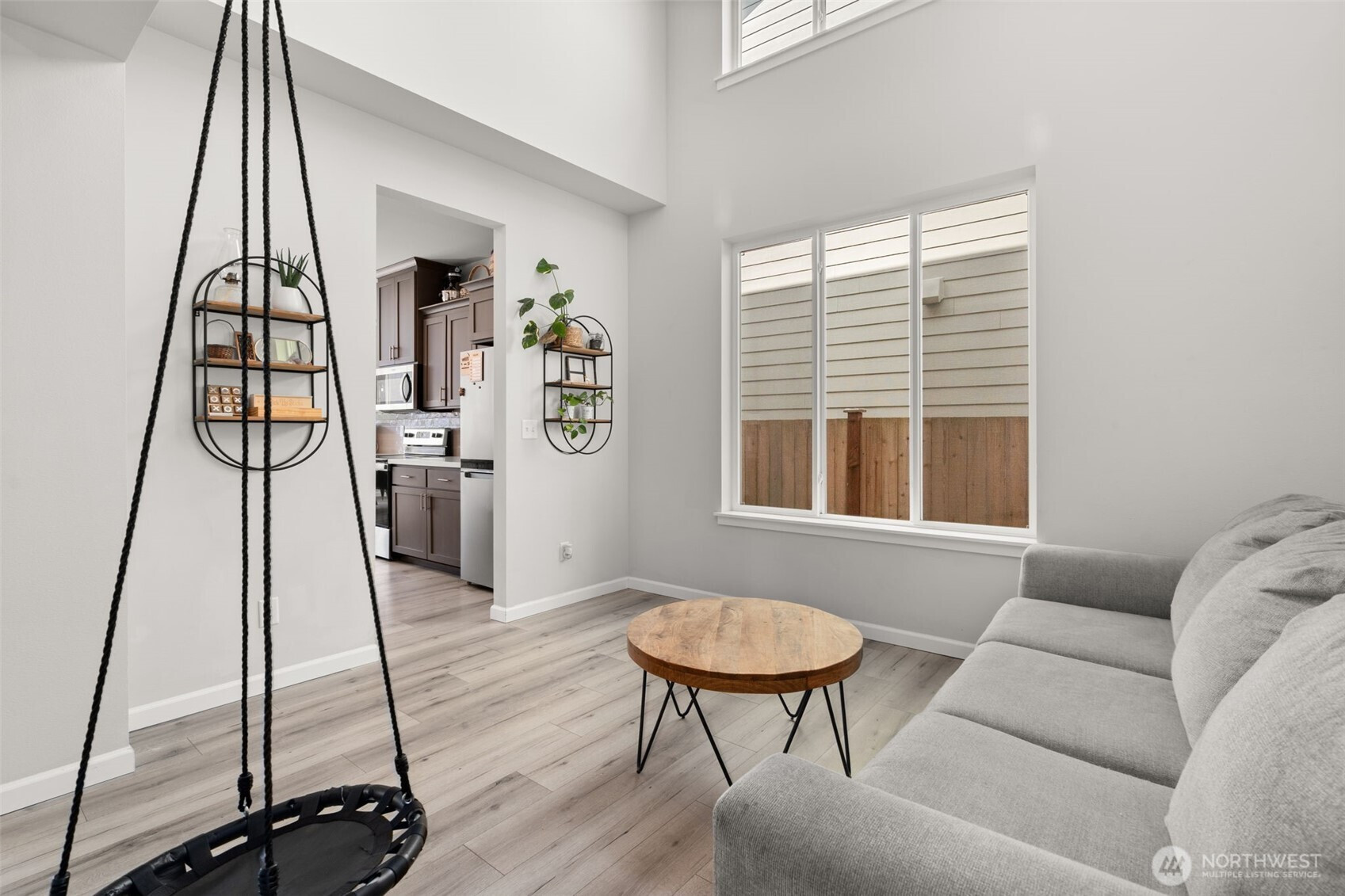 Welcome to Susan Lake Court by Sager Family Homes, a quiet cul-de-sac community of just 16 homes with convenient access to schools, shopping, parks, and I-5 for commuters. This 2,565 square foot home features a functional and inviting layout centered around great room living, with a spacious kitchen and large island that opens to the main living area, along with a formal dining space and an additional flex room on the main floor that works well as a home office or extra living space. Upstairs offers a generous primary suite with an en-suite bath, three additional well-sized bedrooms, a full bathroom, and convenient upstairs laundry. Additional features include high ceilings, a two car garage, and a heat pump with 90%+ efficiency heating and forced air cooling for year round comfort. All stainless steel appliances are included, including the dishwasher, microwave, range, washer, and dryer, making this home move in ready.