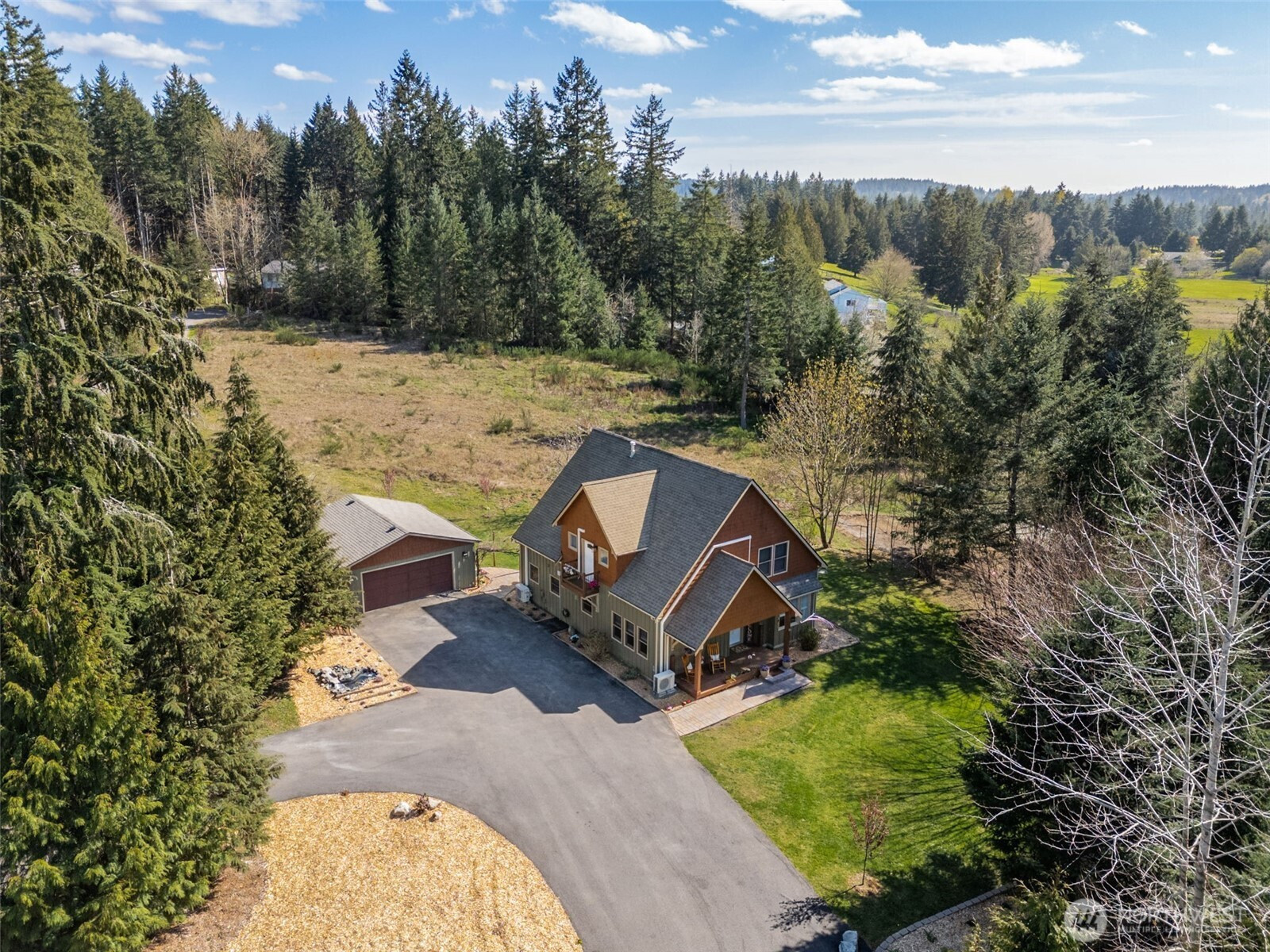 Welcome to the one-of-a-kind “Funky Farm” — a truly captivating custom bungalow that feels like your own private retreat, yet keeps you close to everything Lacey has to offer. Set on 5.96 peaceful acres, this architecturally inspired home blends personality, function, and comfort in all the right ways. The inviting covered front porch sets the tone for what’s inside — a thoughtfully designed home where every square foot is put to good use. Recent updates provide peace of mind and modern style. The kitchen is both stylish and functional, featuring stone counters, brand-new soft-close cabinets, large pantry with barn door, new appliances including 8-burner cooktop, wine fridge, and a convenient butler’s pantry with cozy dining nook nearby — perfect for everyday living or entertaining. The main floor primary suite offers ease and privacy. Main floor radiant heat floors. Upstairs, you’ll find spacious secondary bedrooms, charming upper-level porches, and a fully remodeled bathroom. Ductless heating & cooling in each bedroom. With an oversized 2-car detached garage shop, a chicken coop, AND friendly chickens, the property itself offers endless possibilities, with room to roam, garden, or simply enjoy the peaceful surroundings. All of this in a convenient location just minutes to local amenities, schools, parks, and easy access to the interstate — giving you the best of both privacy and accessibility. This is not just a home — it’s a lifestyle.