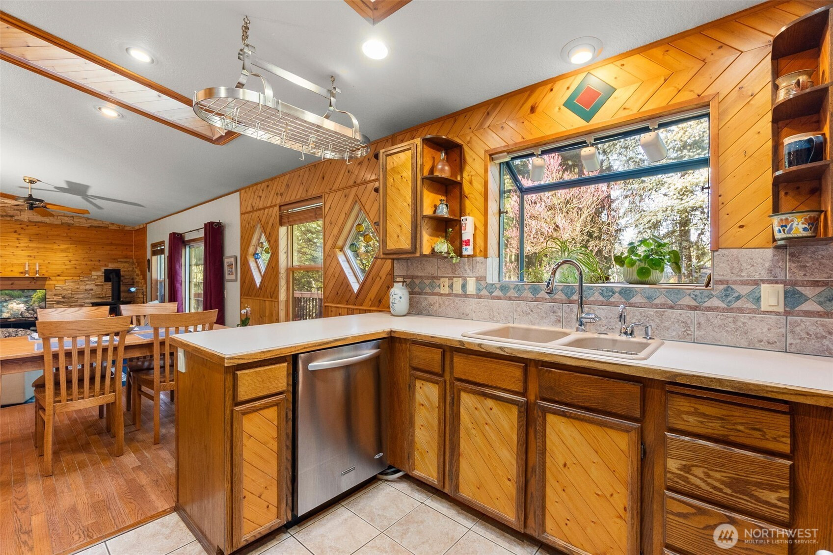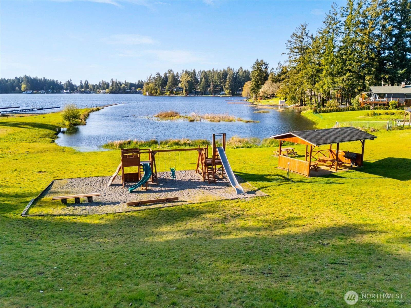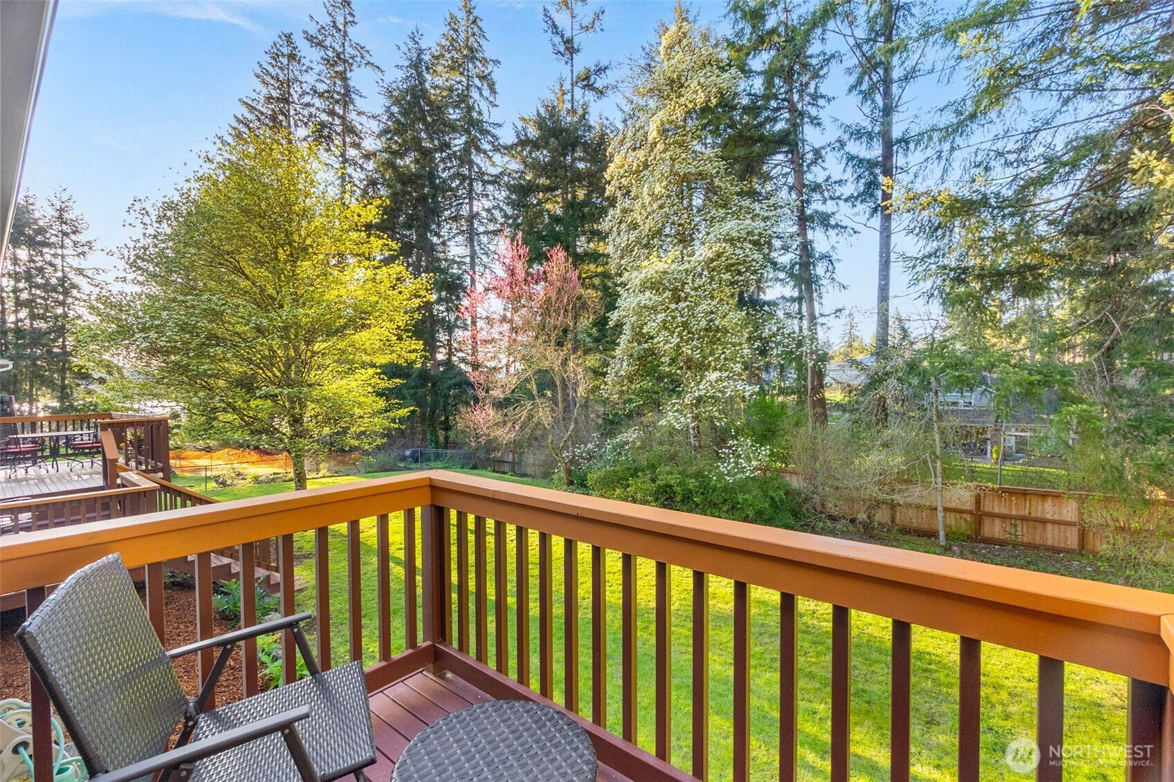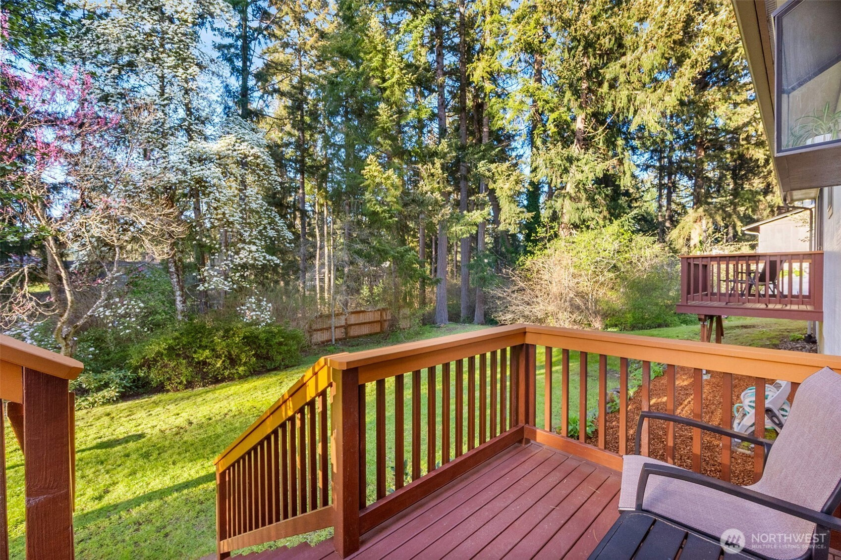 You don’t find many homes maintained as well as this one! Features ornate woodwork throughout, 3-BR, 2 -BA, 1568 SF, primary bedroom with ensuite bath and jetted tub, kitchen with custom tiled backsplash, stainless appliances, all overlooking the great room with a new gas fireplace and a stone wall back splash. Hardwood floors and tile throughout the entire home, 7 wood lined skylights, vaulted ceilings, plantation shutters, & ceiling fans. Owned solar system, installed in 2022, to keep those utility bills in check! 30-year architectural comp. roof installed in 2022 and the driveway replaced in 2024. Multiple rear decks look over the back yard with lots of mature flowering trees. All just a short walk to gated private access of Hicks Lake w/dock, boat launch, cabana and a play area! Minutes to I-5, shopping and schools.