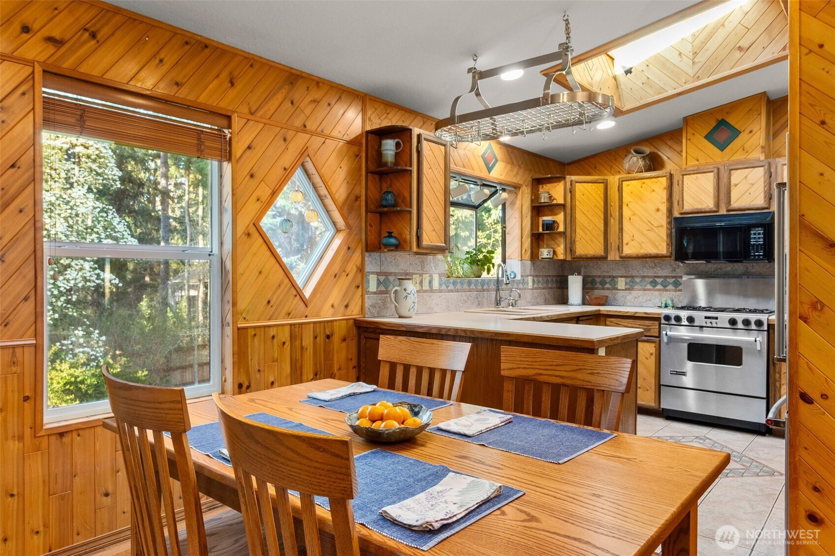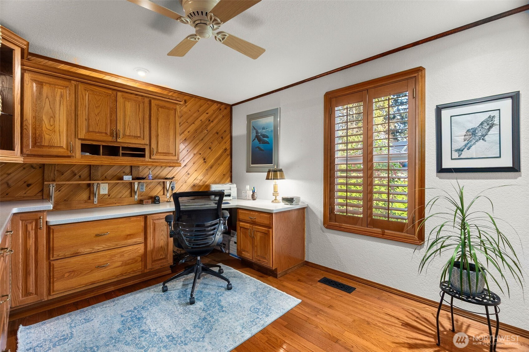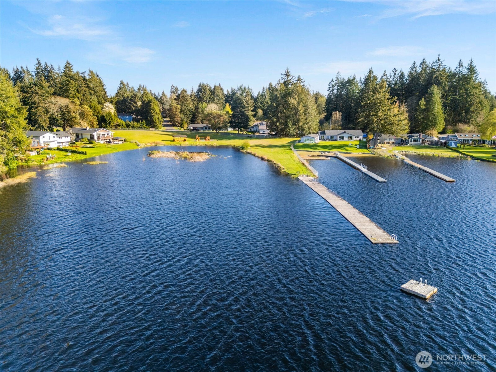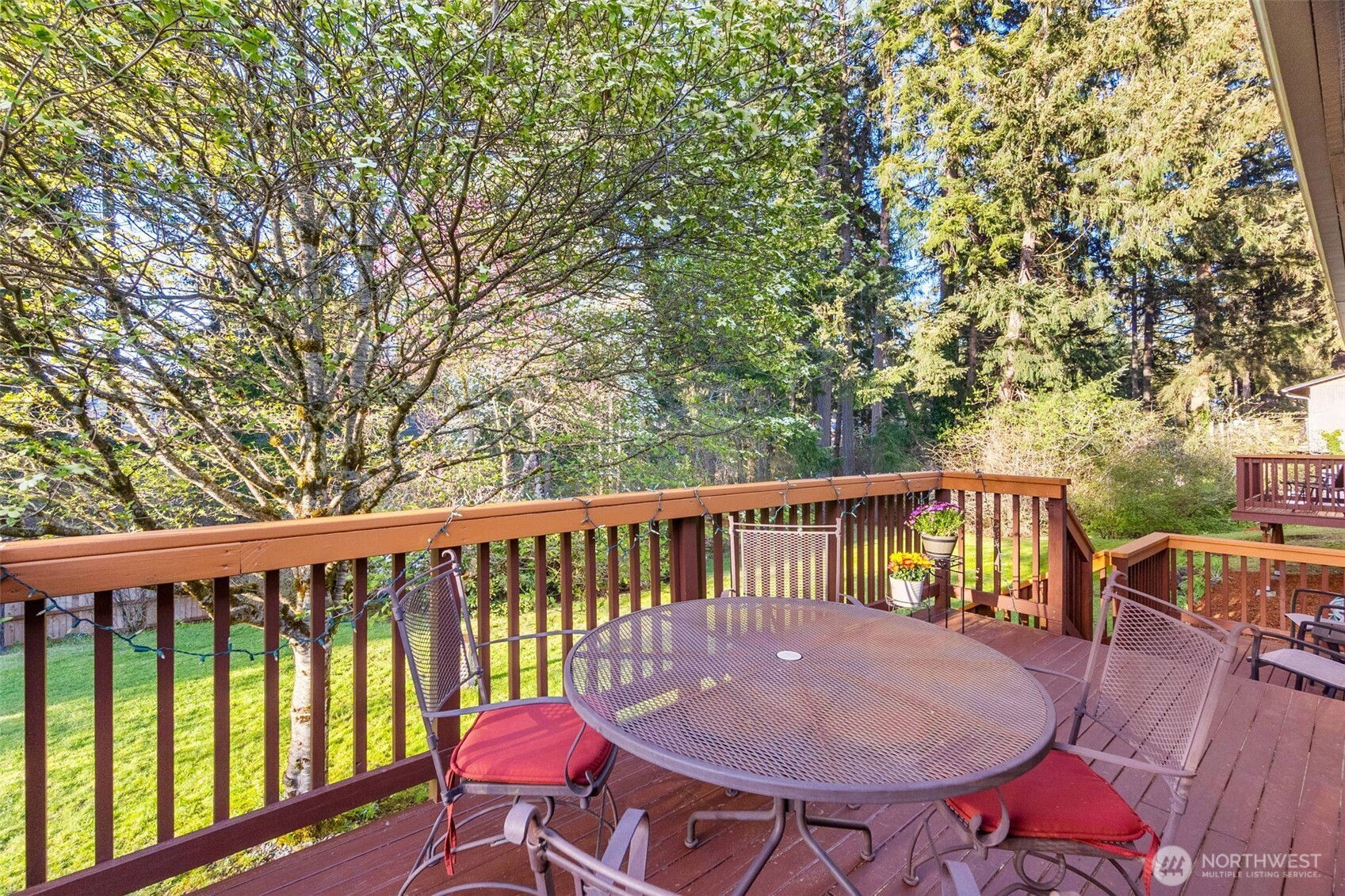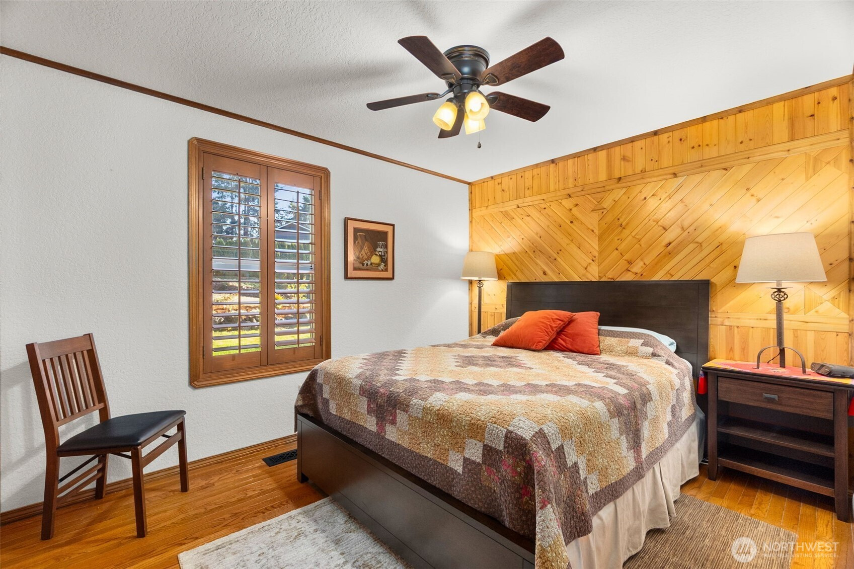 You don’t find many homes maintained as well as this one! Features ornate woodwork throughout, 3-BR, 2 -BA, 1568 SF, primary bedroom with ensuite bath and jetted tub, kitchen with custom tiled backsplash, stainless appliances, all overlooking the great room with a new gas fireplace and a stone wall back splash. Hardwood floors and tile throughout the entire home, 7 wood lined skylights, vaulted ceilings, plantation shutters, & ceiling fans. Owned solar system, installed in 2022, to keep those utility bills in check! 30-year architectural comp. roof installed in 2022 and the driveway replaced in 2024. Multiple rear decks look over the back yard with lots of mature flowering trees. All just a short walk to gated private access of Hicks Lake w/dock, boat launch, cabana and a play area! Minutes to I-5, shopping and schools.