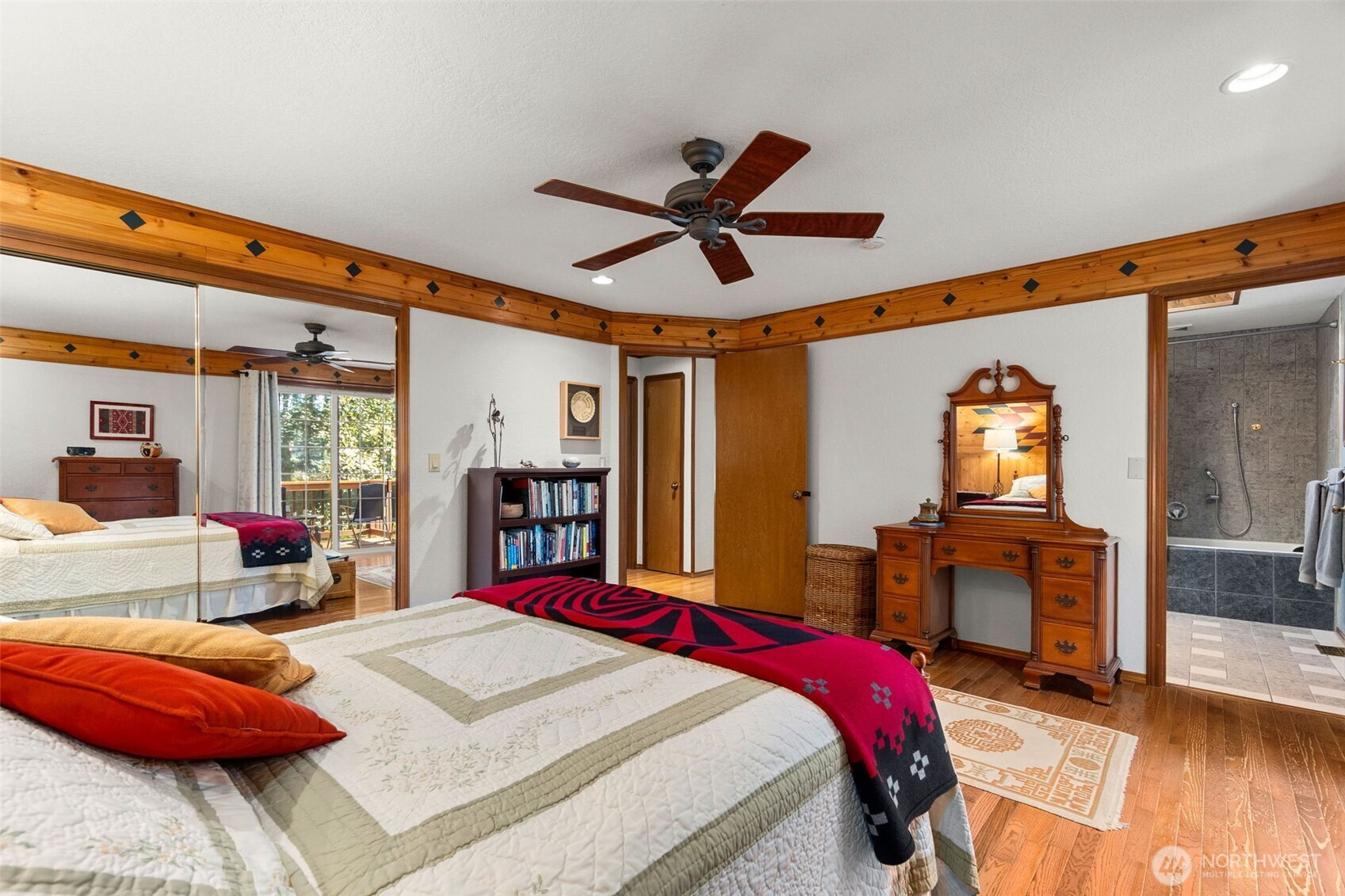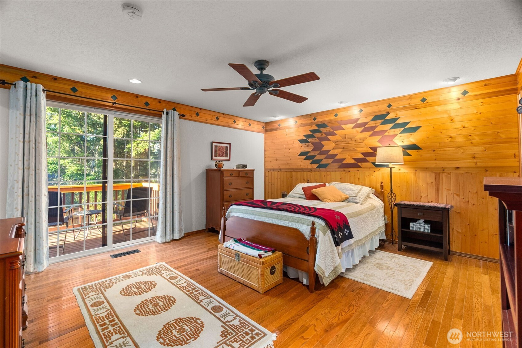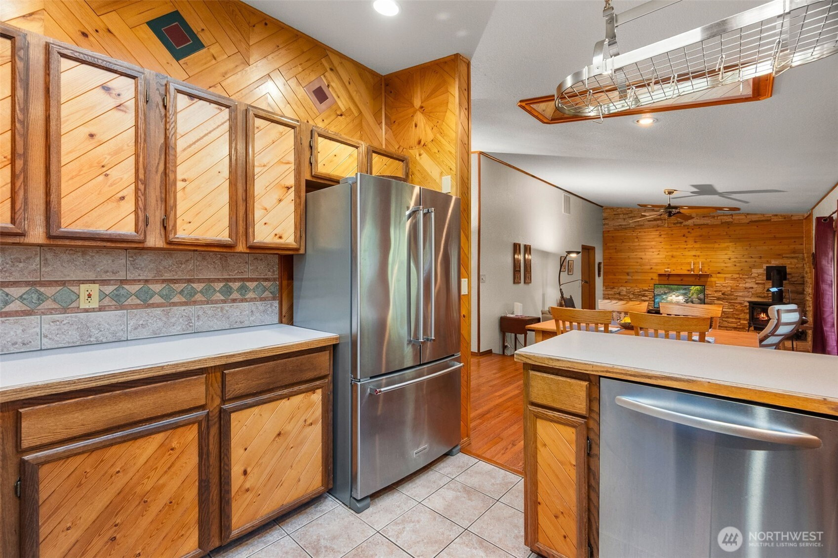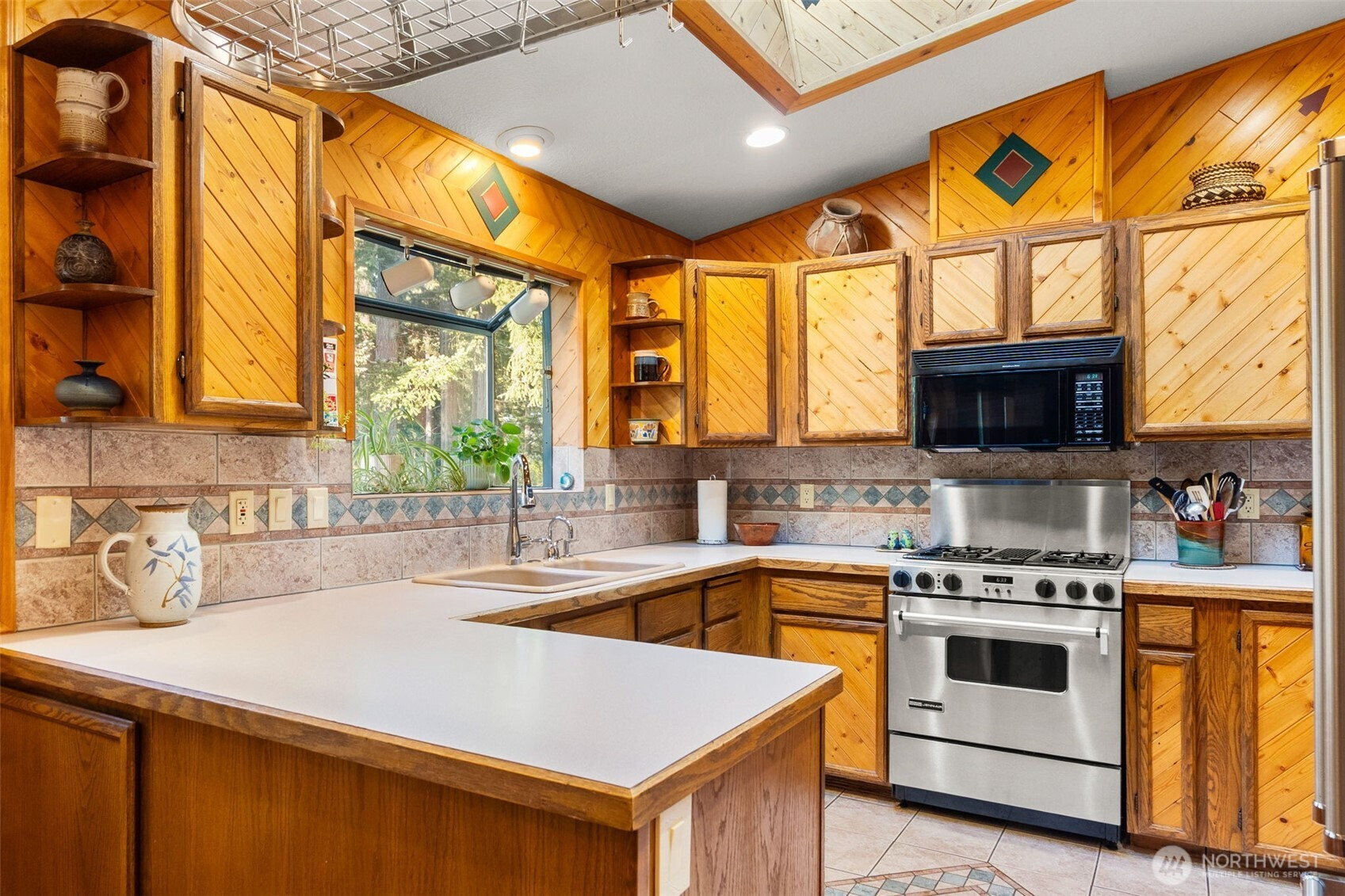 You don’t find many homes maintained as well as this one! Features ornate woodwork throughout, 3-BR, 2 -BA, 1568 SF, primary bedroom with ensuite bath and jetted tub, kitchen with custom tiled backsplash, stainless appliances, all overlooking the great room with a new gas fireplace and a stone wall back splash. Hardwood floors and tile throughout the entire home, 7 wood lined skylights, vaulted ceilings, plantation shutters, & ceiling fans. Owned solar system, installed in 2022, to keep those utility bills in check! 30-year architectural comp. roof installed in 2022 and the driveway replaced in 2024. Multiple rear decks look over the back yard with lots of mature flowering trees. All just a short walk to gated private access of Hicks Lake w/dock, boat launch, cabana and a play area! Minutes to I-5, shopping and schools.