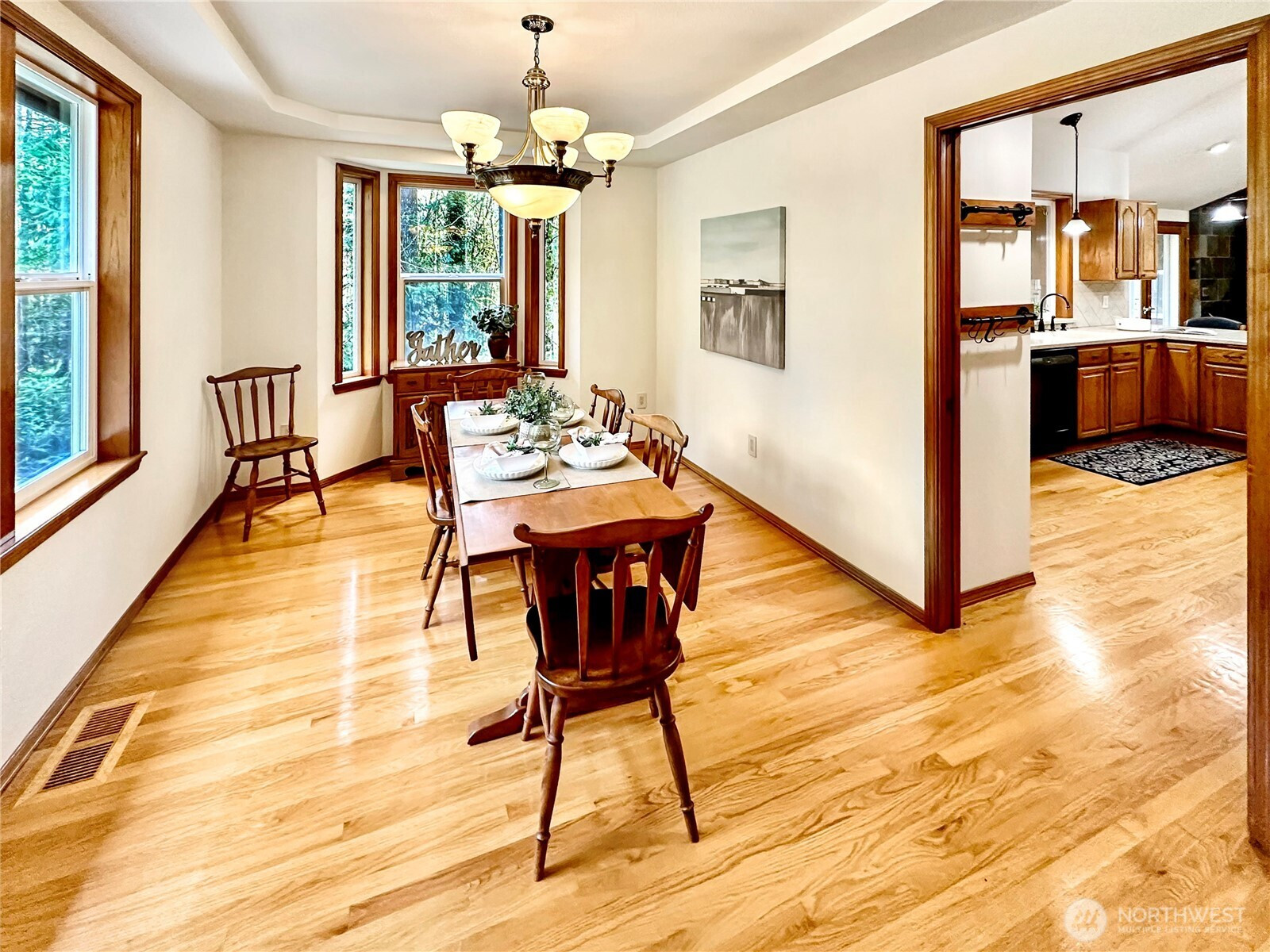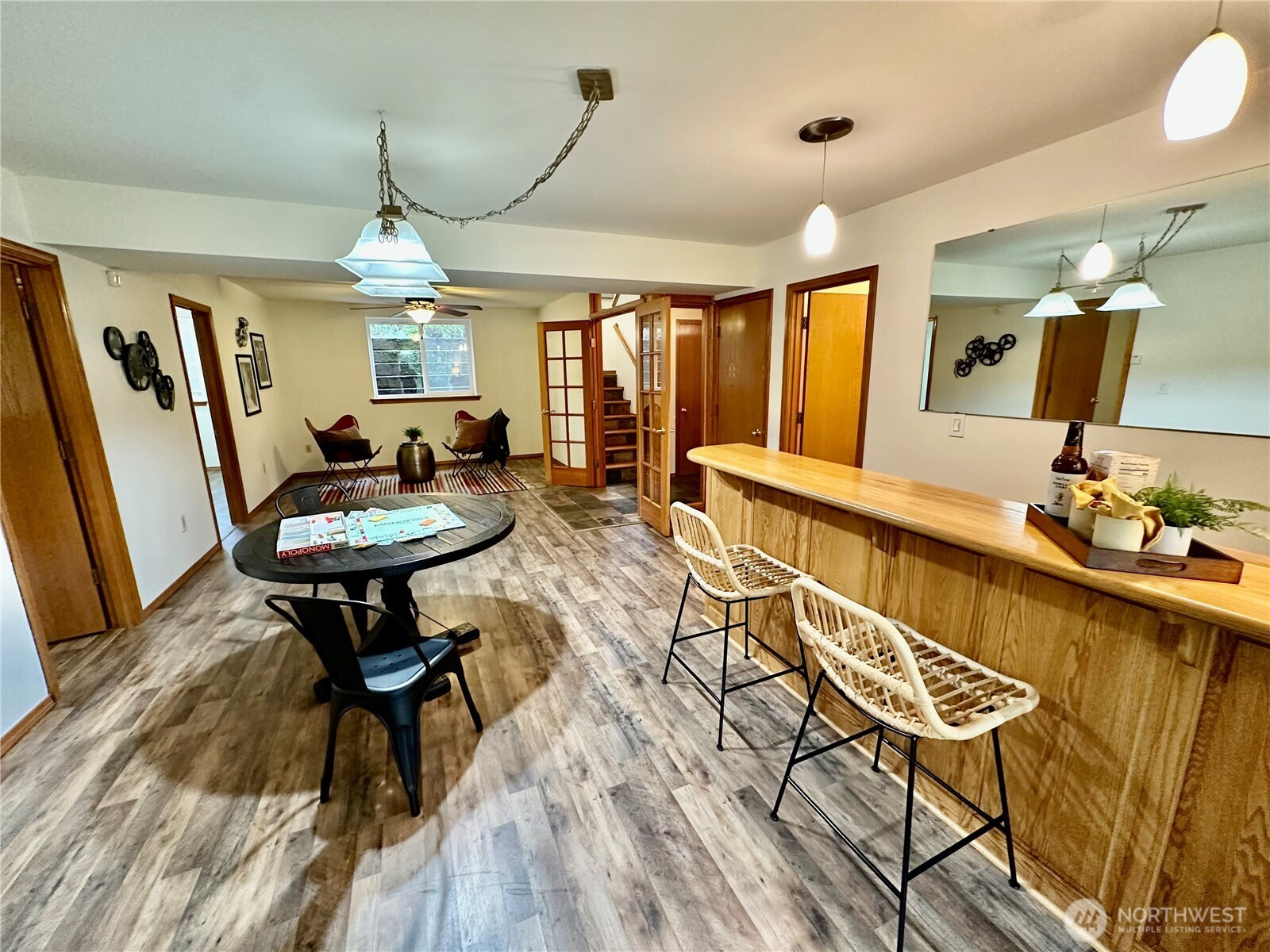 Craftsman Style Rambler w/Daylight Basement on an acre w/versatile floor plan suitable for multiple living styles. Main floor w/spacious foyer w/slate floor & access to formal rms, family rm & stairwell to lower level. Front living rm w/lg picture windows & the double set of French doors that offer access to entry & dining area. Spacious formal dining rm features tray ceiling, hardwood floors & lg windows w/territorial view of the picturesque parcel. Ample kitchen w/Corain counters, loads of oak cabinets, pantry, all appliances, hardwood floors, eating bar & adjoining family rm. Cozy, vaulted family rm offers a wood stove w/slate surround & access to the lg, composite deck w/steal railing & gas hookup. Primary bedroom w/French doors that open to the composite deck, walk-in closet & lovely updated bath w/walk-in shower, & separate water closet. Two additional rooms both w/closets & attractive 3/4 bath & laundry rm all on the main floor. Lower level features a lg rec room, laminate flooring, wet bar w/counter space, 3/4 bath & 2 additional rooms...which could be bedrooms, office space or hobby rms. The rec rm offers access to a covered patio & fenced rear yard. Additional features include: new gas hot water tank, whole-house generator, low maintenance landscaping, oversize garage w/storage space, fresh interior paint throughout and new main floor carpets. The neighborhood offers walking trails & community park w/play equipment & covered picnic area. Tumwater Schools!
