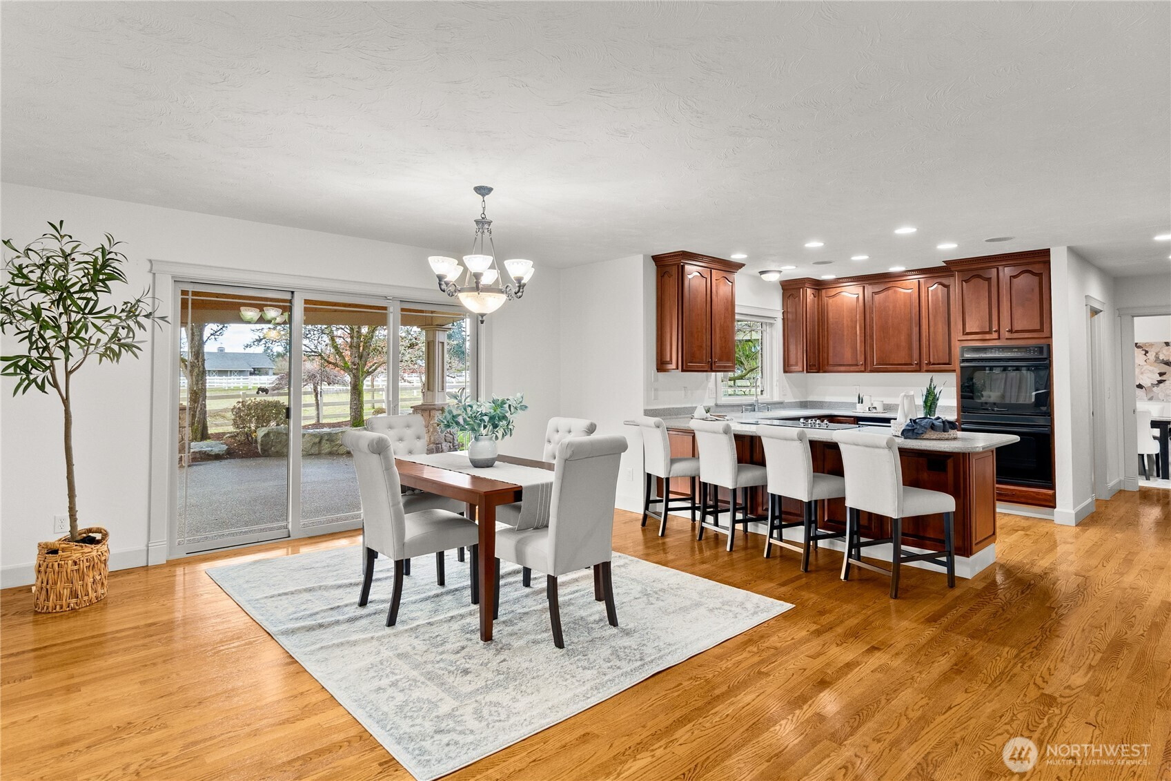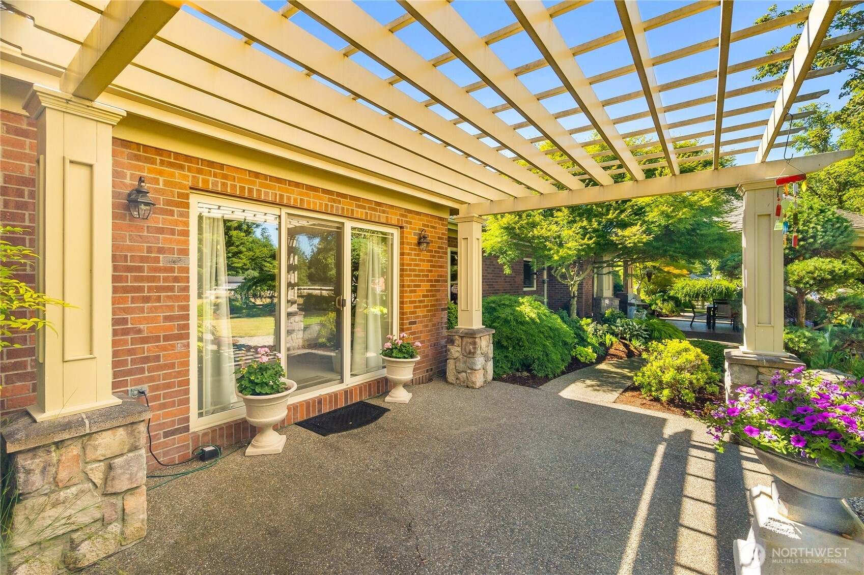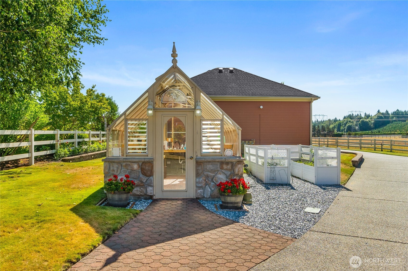 Impeccably maintained brick rambler in an equestrian community on beautifully landscaped acreage with sweeping Mt. Rainier views. Large picture windows frame manicured gardens & fill the home with natural light. A spacious kitchen opens to a gathering room with gas fireplace while an inviting covered patio with skylights offers year-round entertaining. Park an RV or use the detached garage/shop for hobbies or storage. Realize your equestrian dreams in the stunning 4-stall barn with dormer windows, cupolas, loft & drive-through access while you watch your horses graze peacefully in PVC fenced fields. A charming greenhouse, mature trees & stonework add privacy & appeal. NEW roof/interior paint/carpet. Every detail shows quality & care.