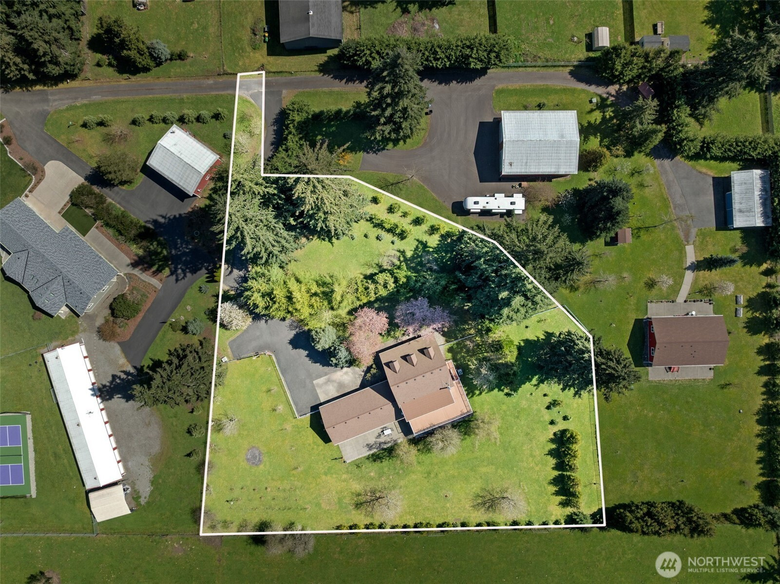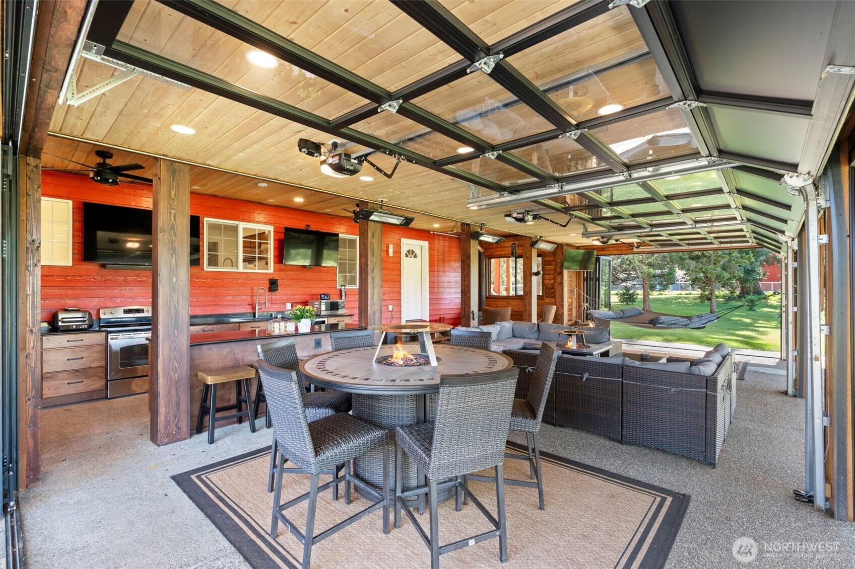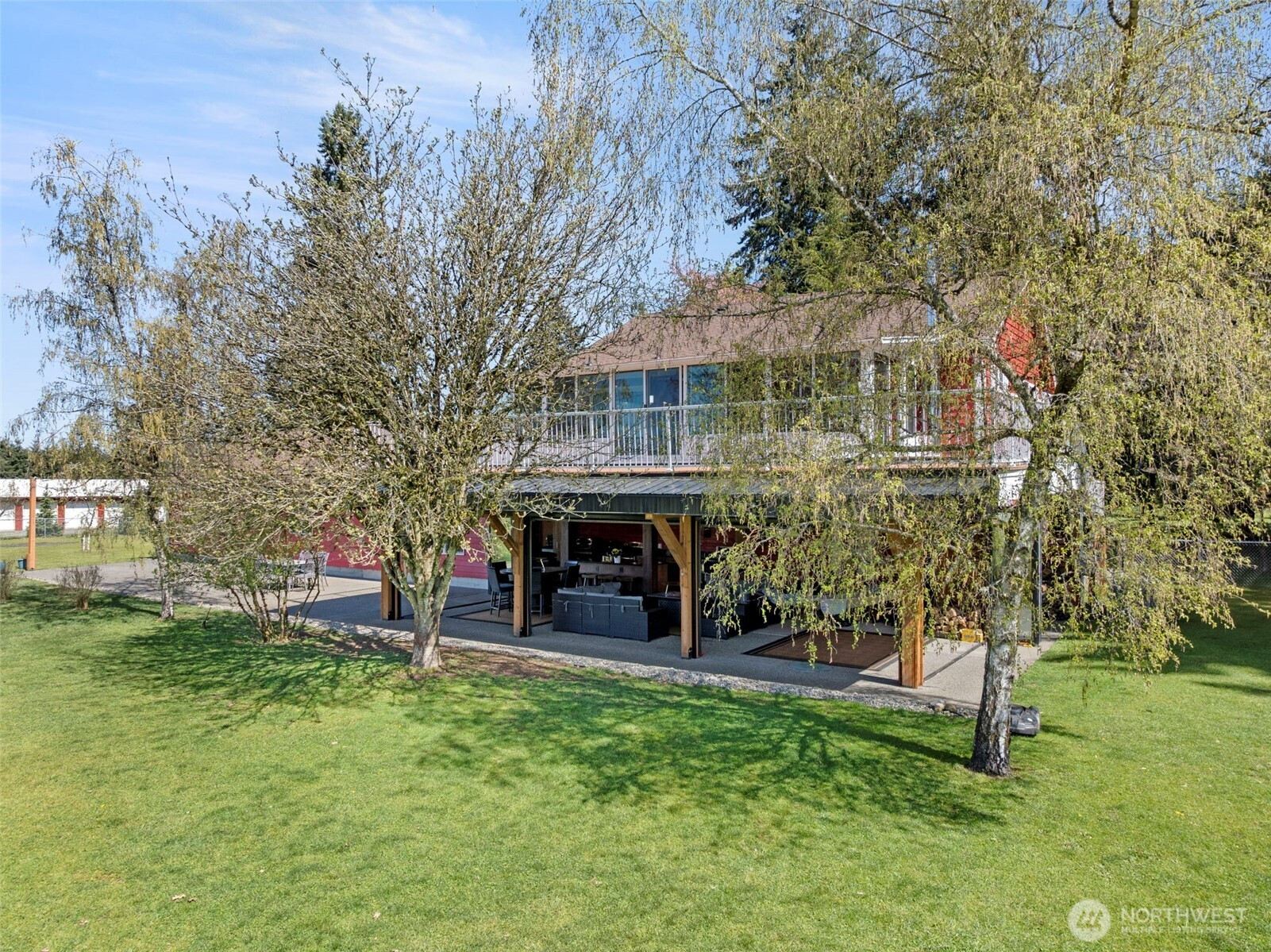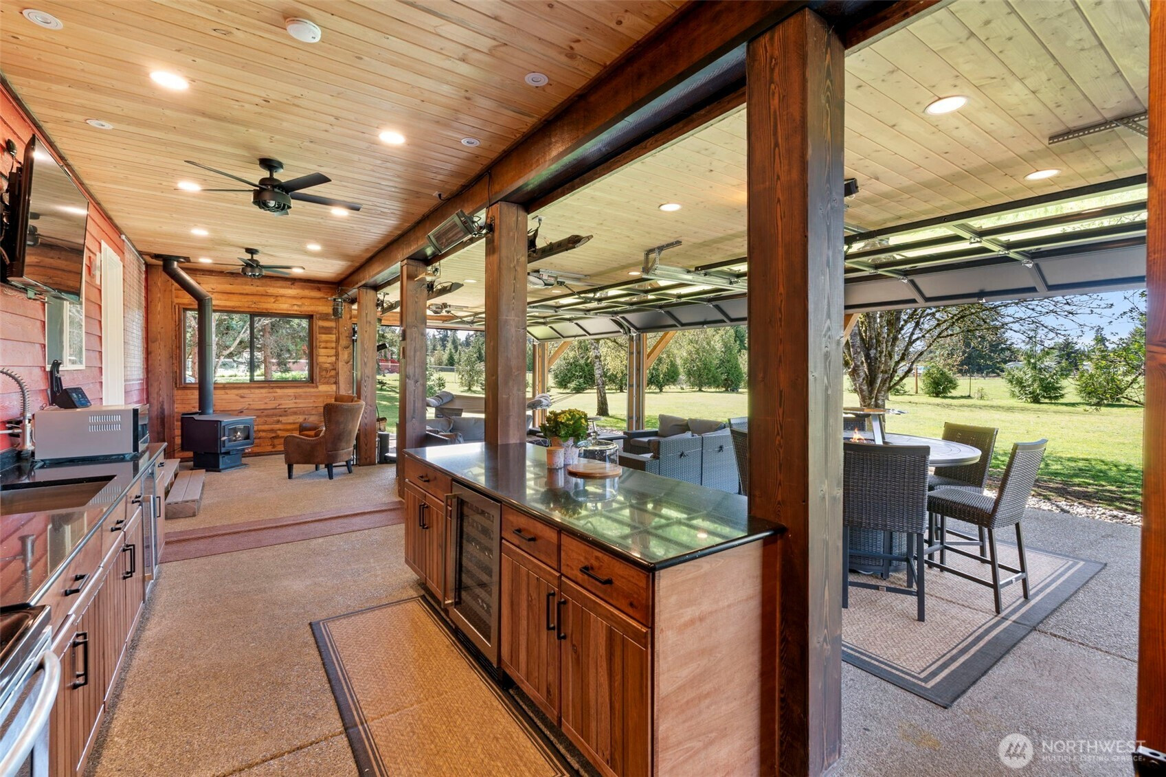 Step inside a world built for those who live without compromise. This 3,806 sqft custom retreat sits on 1.5 acres in a private gated 5-acre compound — invisible from the road,ending at Scatter Creek Nature Preserve trails — with $545K in permitted additions that redefine what a home can be. The indoor/outdoor entertaining pavilion stops guests cold: 3 LUX glass garage doors, twin 14ft ERIS bifold doors, Stoett motorized screens, 5 infrared heaters, tongue-and-groove ceiling, black quartz counters with metallic flecks, commercial kitchen exhaust, 2 beverage fridges, electric range, wood stove, and 2 propane quick-disconnects for fire tables and griddles. A heated Champion Windows sunroom with 25-jet Aquaterra Montara spa and motorized smart shades. A luxury wet bar with real brick wall, ice maker, dishwasher, Vermont Castings propane stove. An 860 sqft second-story balcony frames Black Hills sunsets. Producing orchard: Rainier, Bing, and sweet cherries, Honeycrisp apples,peaches, plums, Asian pears, blueberries & raspberries. 50-year roof (2022), 3-car garage, heat pump, tankless water heater, 200 amp, 2 robot mowers, no HOA. Through May 8: bundle with adjacent income producing property (6849 183rd, $699K) (MLS#2500025) that comes with 48x36 insulated pole barn/shop with two 14-ft bay doors and save 5% on each — ~$80K total savings. SHOWINGS BY APPOINTMENT ONLY