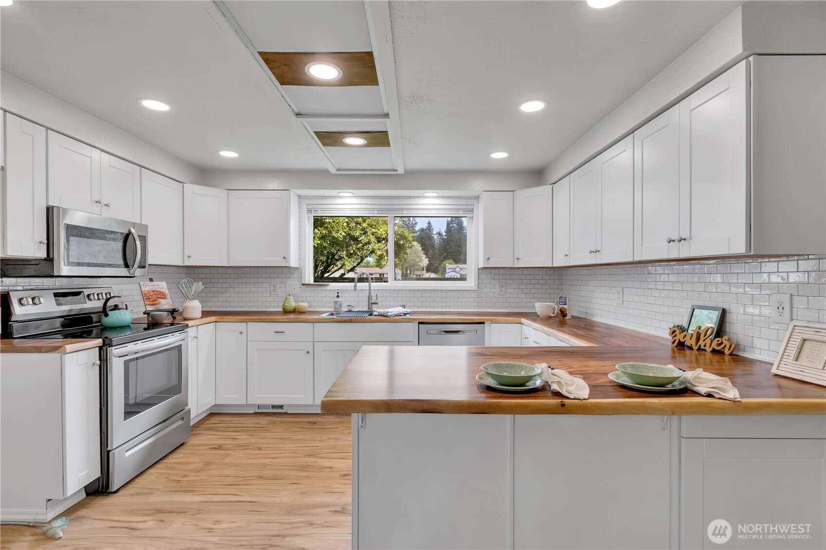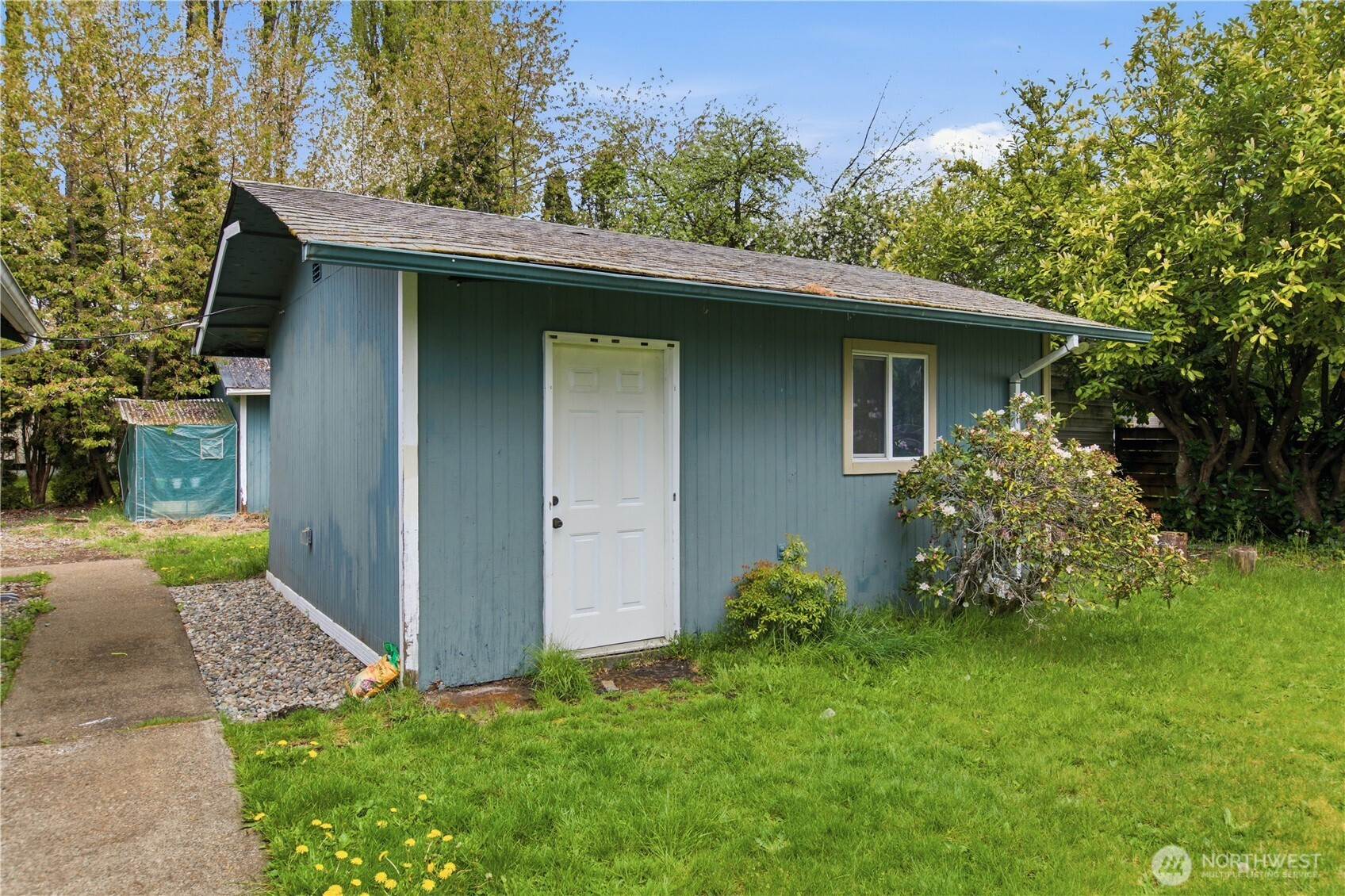 Charming and sturdy 1975 home on a quarter-acre lot with great updates and flexible space! The brand new kitchen features a stunning live-edge counter for added warmth and style. Enjoy a large fenced yard with fruit trees, additional outbuildings, and RV parking tucked behind the fence. Conveniently located near I-5 and shopping, this home offers both comfort and accessibility. A wonderful bonus is the spacious detached getaway building with power and carpeting, perfect for a cozy home office, hobby space, or guest retreat. Plenty of room to live, work, and enjoy!