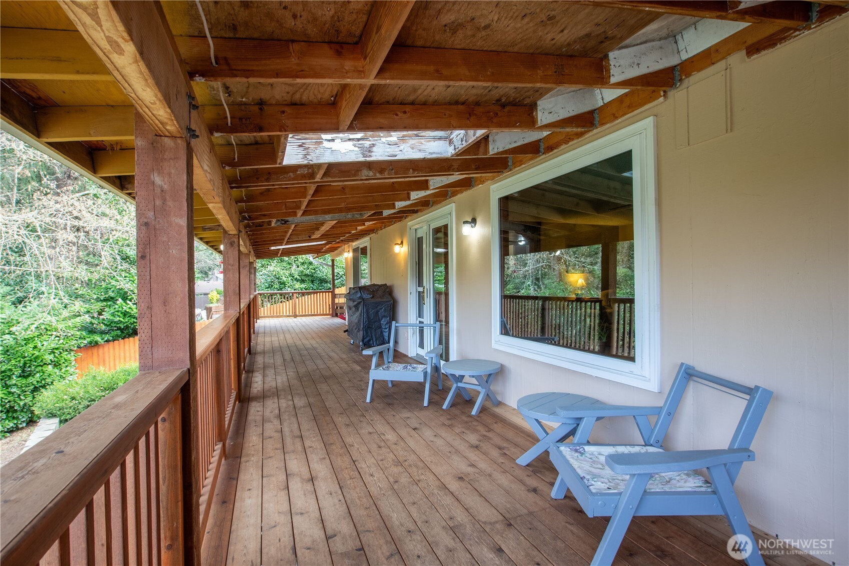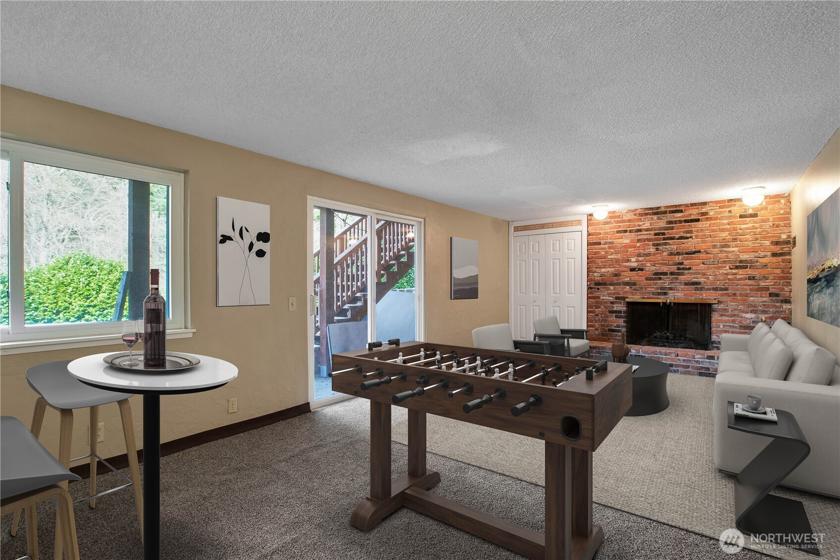 Welcome to Glen Terra where community, convenience, and nature beautifully connect. Just minutes to lakes, parks, schools, and shopping, this spacious one-story home with a daylight basement sits on more than a 1/3 acre lot backing to a serene habitat reserve. From the moment you arrive, the peaceful water feature and pond set the tone. The Storybook style entry leads to spacious interiors. Unwind on the expansive wrap-around deck with skylights, while taking in territorial views and appreciating the privacy of protected green space. The main level offers 3 bedrooms and 2.25 baths, including a primary suite with deck access, remodeled bath, and tranquil views. The updated kitchen, newer flooring throughout, triple-pane windows, A/C, brand-new roof, and newer water heater provide comfort and peace of mind. The living room features a striking brick fireplace wall and slider to a covered deck for seamless indoor-outdoor living. Downstairs, you’ll find a spacious rec room with wet bar, additional bedroom, bonus room, and bath, ideal for multi-gen living, guests, or hobbies, with direct access to the backyard and pool with new pump house. A 2-car garage connects to the laundry/mud room with utility toilet for added flexibility. This home offers room to gather, retreat, and truly enjoy both interior comfort and outdoor beauty. View the 3D simulated rendering of the layout. Virtually staged to maximize the experience of the space. Enjoy!