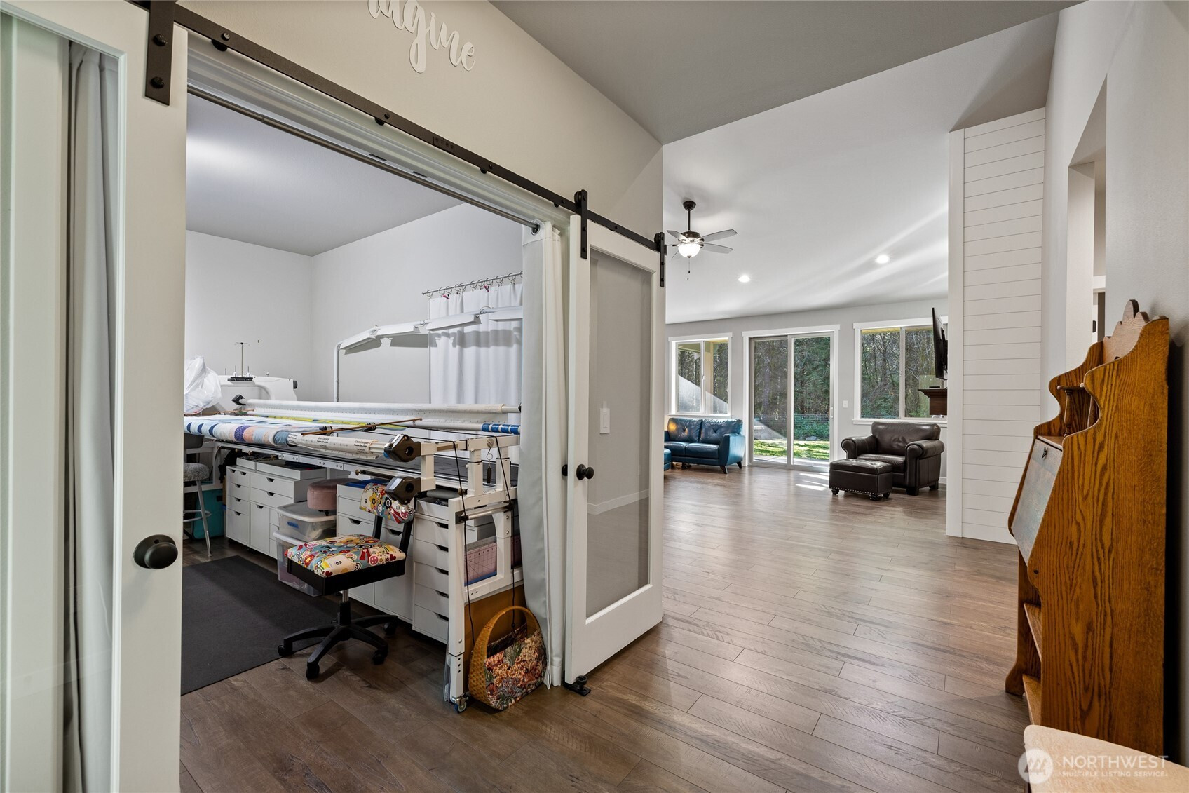 This beautifully and thoughtfully built newer custom rambler offers luxury at every turn and serene natural surroundings in every direction. Designed with intention, the main level features three spacious bedrooms, including a grand primary retreat with a spa-inspired five-piece bath, stand-alone tiled shower, private water closet, linen storage, and elegant, yet useful motion-sensor under-cabinet lighting. The chef’s kitchen impresses with granite countertops, a large island, soft-close cabinetry and drawers, pull-out shelving, and a generous walk-in pantry—perfect for both everyday living and elevated entertaining. A versatile upper-level loft provides endless possibilities for a home office, media lounge, or guest suite. The spacious laundry room includes a utility sink and abundant storage. Additional thoughtful upgrades include select smart light switches, wiring for a generator, and a 10x12 storage shed. Step outside to enjoy direct access to a private trail for peaceful walks or fun bike rides. Neighboring properties are designated forestry lands, so enjoy your peaceful surroundings in nature.
