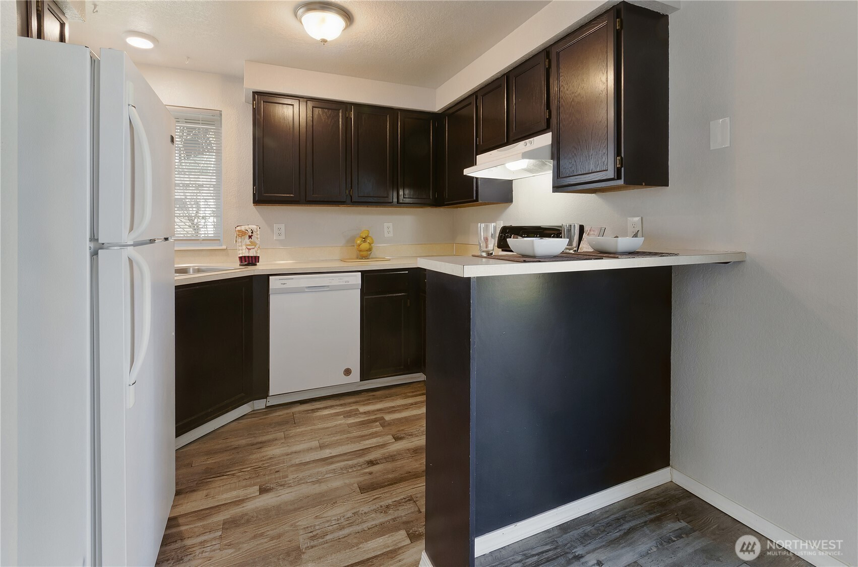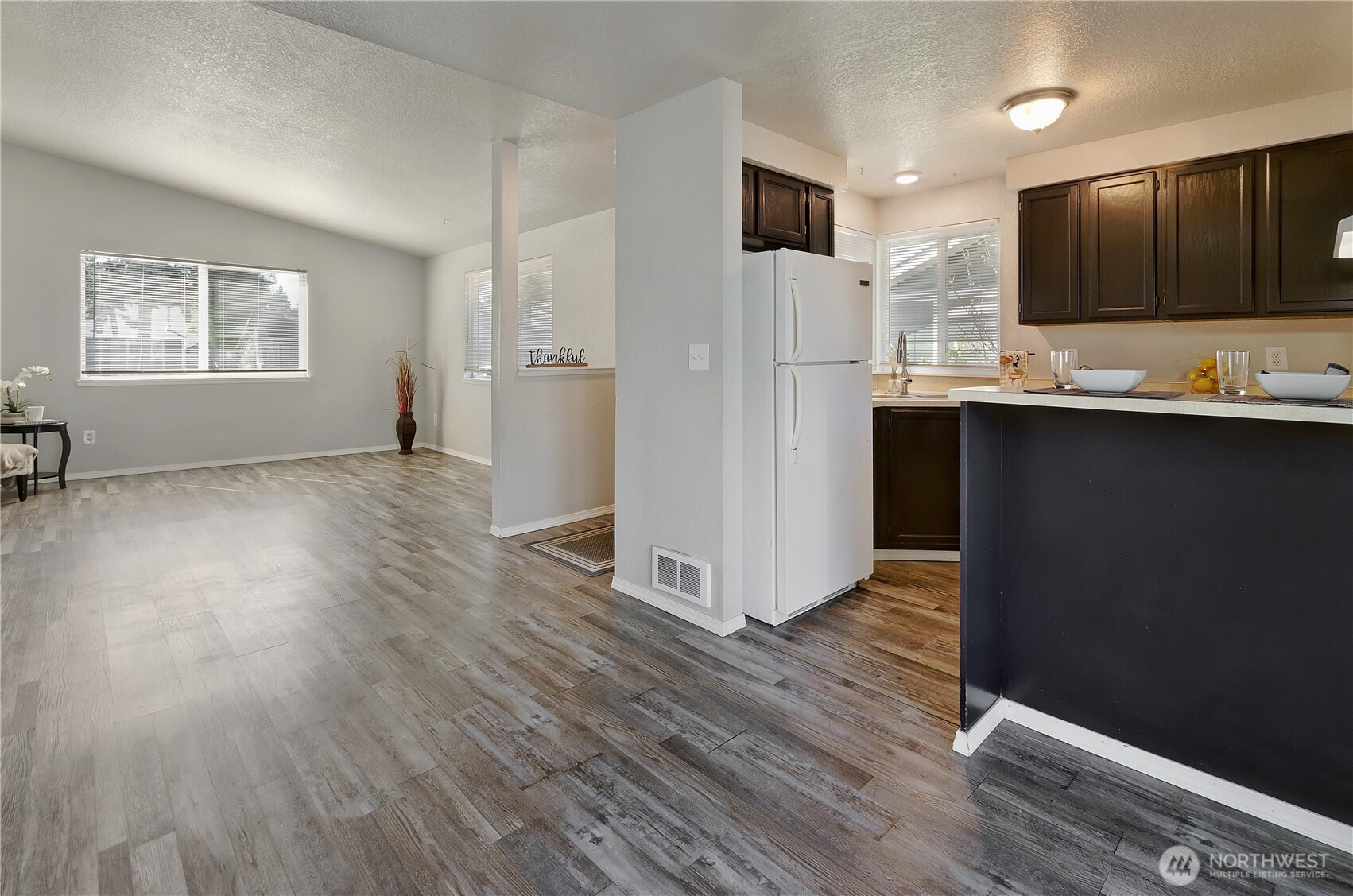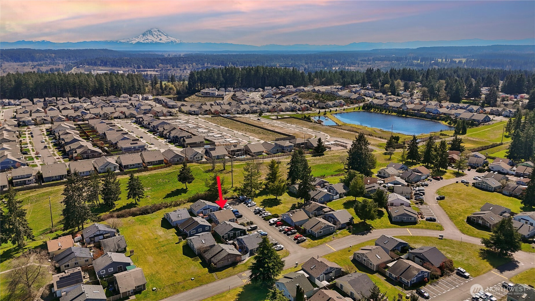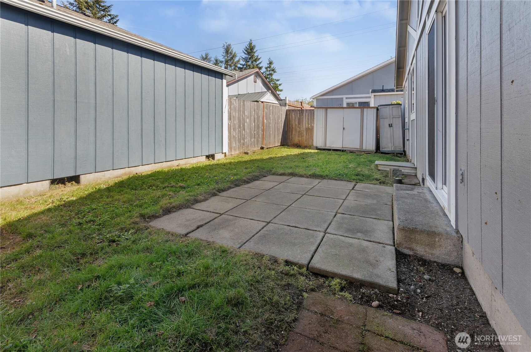 Welcome to an exceptional opportunity in the charming Alpine Meadows cottage community, where comfort, convenience, and thoughtful updates come together beautifully. This move-in ready home stands out with its rare positioning directly beside its two assigned parking spaces, offering effortless day-to-day access. Step inside to discover a bright, airy living space enhanced by vaulted ceilings, updated flooring throughout, and modern light fixtures that create a fresh, inviting ambiance. The well-appointed kitchen features a breakfast bar, ample space for a dining table, and comes fully equipped with a dishwasher, stove, and refrigerator. Perfect for both everyday living and entertaining. A sliding glass door opens to a fully fenced backyard, providing a private outdoor retreat complete with storage sheds for added functionality. Inside, the home offers three comfortable bedrooms, while the bathroom is illuminated by a skylight that fills the space with natural light. Laundry hookups are conveniently located within the home for ease and efficiency. Ideally situated with quick access to I-5, JBLM, Costco, and a wide variety of shopping, dining, and entertainment options, this home delivers both lifestyle and location. A rare find that blends practicality with charm - don’t miss it!