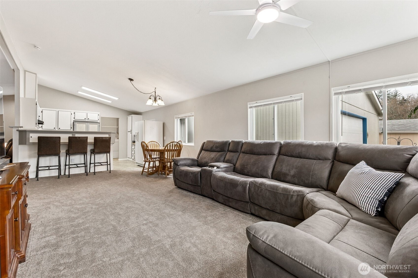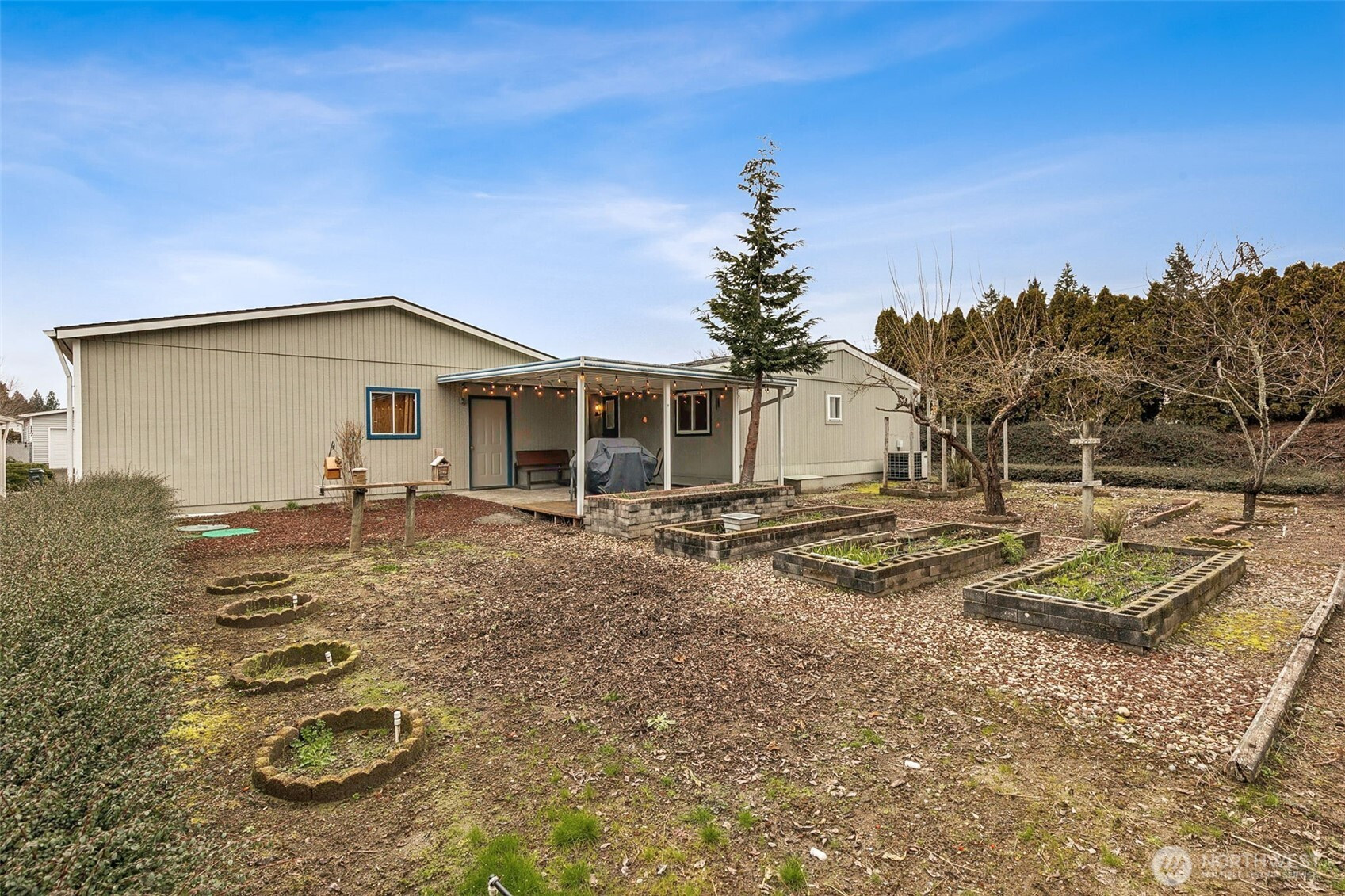 Welcome home to Thunderbird Village, a 55+ gated community where comfort and connection come naturally. This well-cared-for 3-bedroom, 2-bath home offers a bright, open layout with newer flooring and energy-efficient double-pane windows. The two spacious living areas make it easy to host or simply relax and enjoy the quiet. The oversized 2-car garage provides plenty of room for storage, hobbies, or a workbench setup. You’ll find your own private retreat with garden beds and mature fruit trees—perfect for morning coffee or afternoon gardening. Thunderbird Village residents enjoy scenic walking trails, RV parking, and an active clubhouse that brings neighbors together. Conveniently located near Costco, medical facilities, shopping, and I-5 access. Monthly space rent includes water, sewer, and basic cable.
