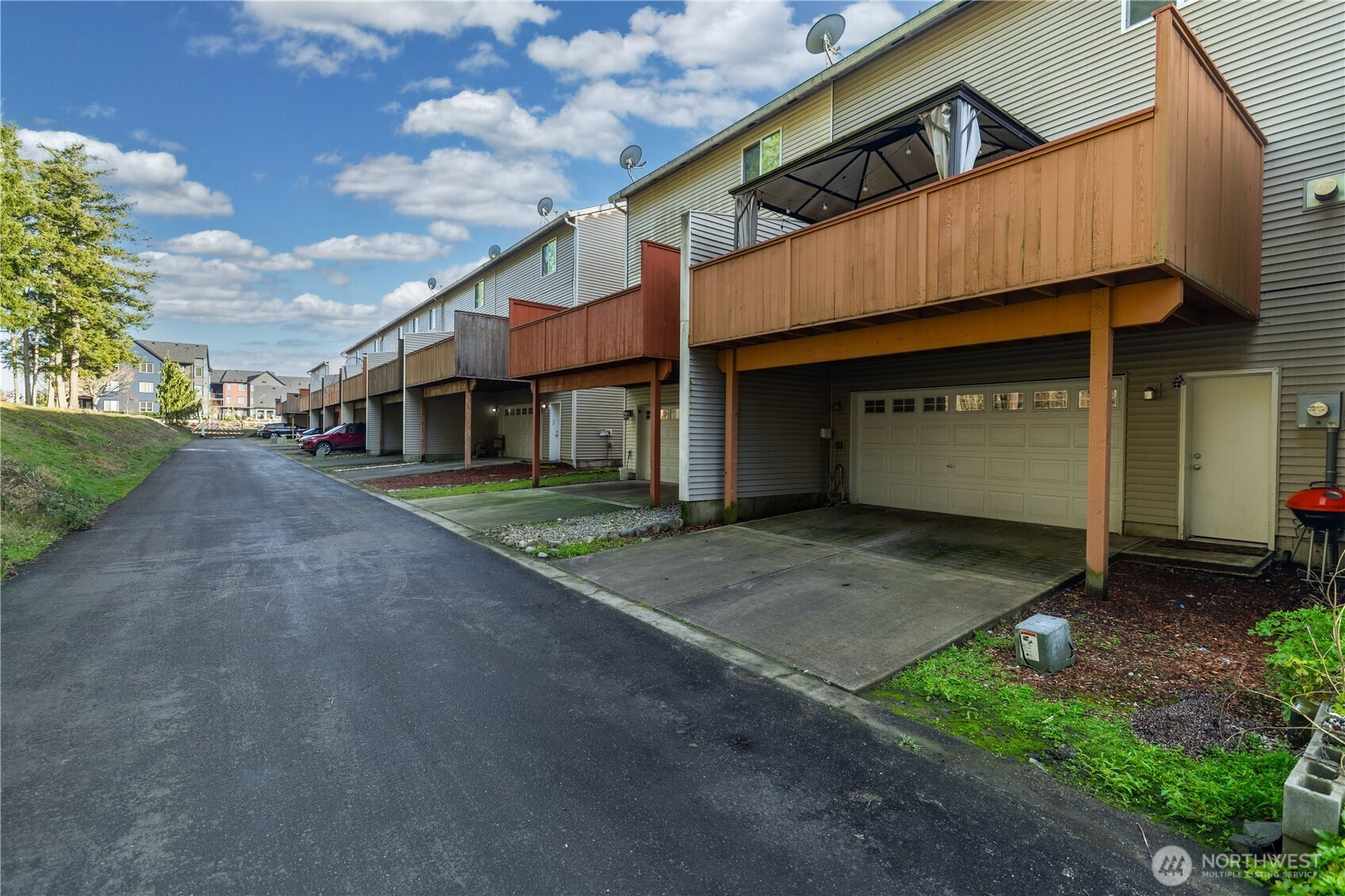 Thoughtfully designed layout separates living, entertaining, and sleeping areas across multiple levels. Come to See! This home features 3 spacious Bedroom Suites, Each with its Own Bathroom—one on the lower level and two on the upper level, including the primary suite with a walk-in closet. Bright, open-concept main living area includes a gas fireplace and opens to a large private deck with a g Gazebo for rainy-season BBQs, perfect for year-round enjoyment while overlooking the greenbelt. Ceiling fans in all the rooms. Oversized 2+ car garage offers ample space for storage, hobbies, or fitness equipment, with convenient alley access and additional parking. Ideally located near JBLM, I-5, schools, and shopping. New water heater installed in 2023. upgraded 1st floor bath and well maintained MOVE IN READY!