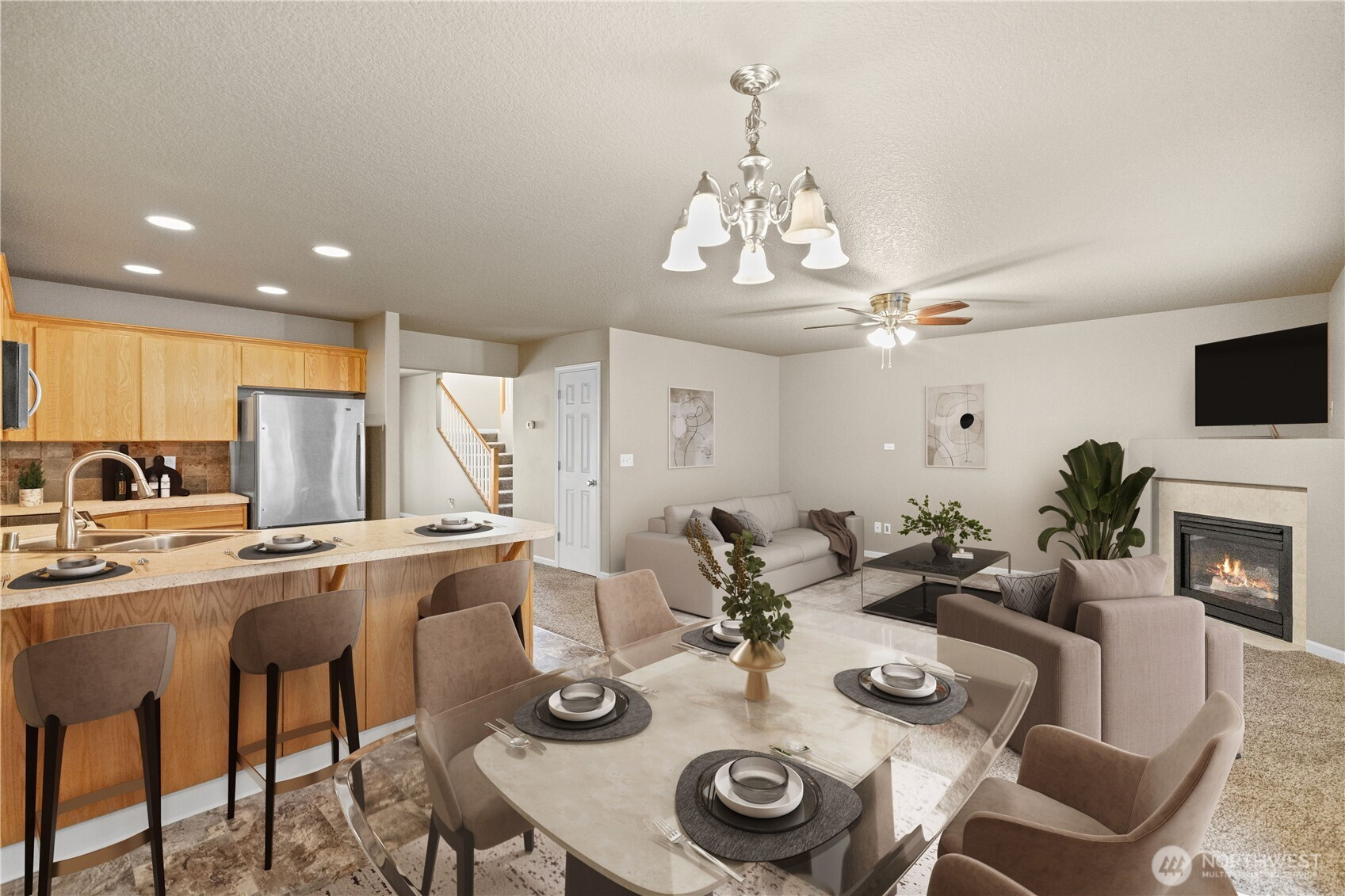 Thoughtfully designed layout separates living, entertaining, and sleeping areas across multiple levels. This home features three spacious bedroom suites, each with its own bathroom—one on the lower level and two on the upper level, including the primary suite with a walk-in closet. Bright, open-concept main living area includes a gas fireplace and opens to a large private deck with a gazebo, perfect for year-round enjoyment while overlooking the greenbelt. Oversized 2+ car garage offers ample space for storage, hobbies, or fitness equipment, with convenient alley access and additional parking. Ideally located near JBLM, I-5, schools, and shopping. New water heater installed in 2023.