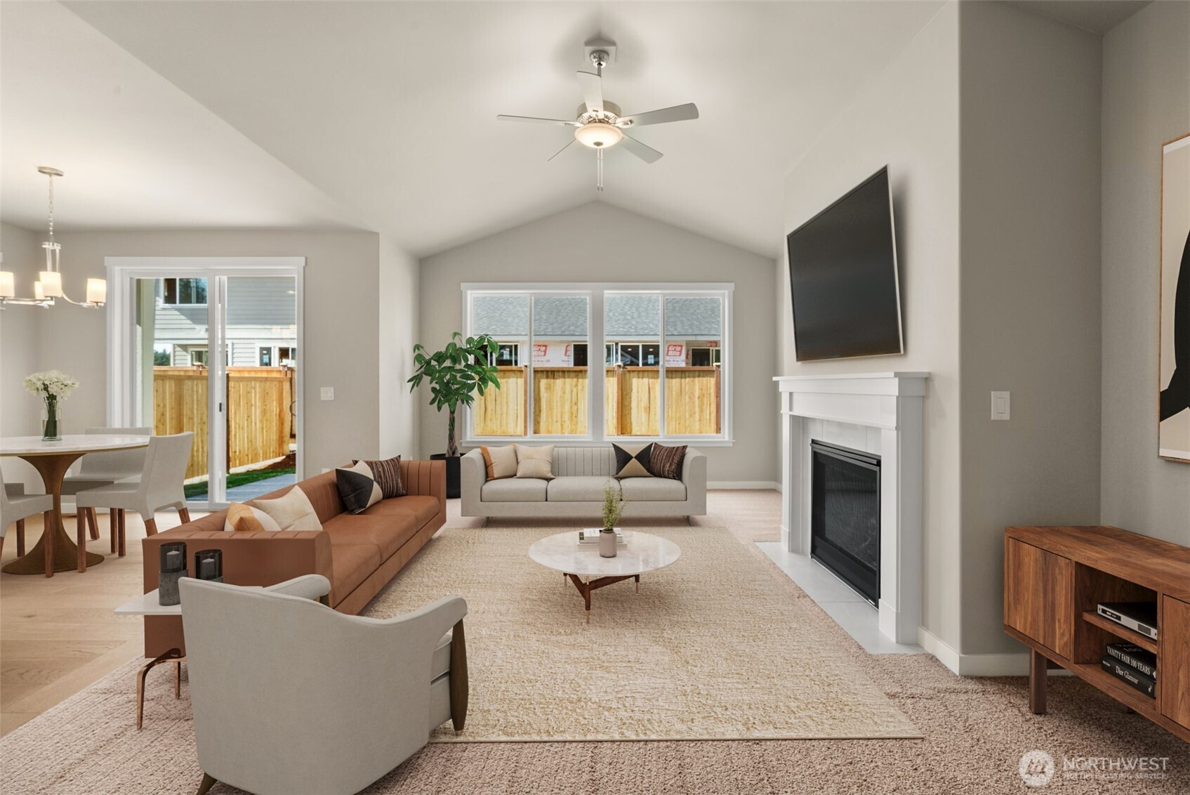 Bath Off Primary, Ceiling Fan(s), Double Pane/Storm Window, Dining Room, Fireplace, Vaulted Ceiling(