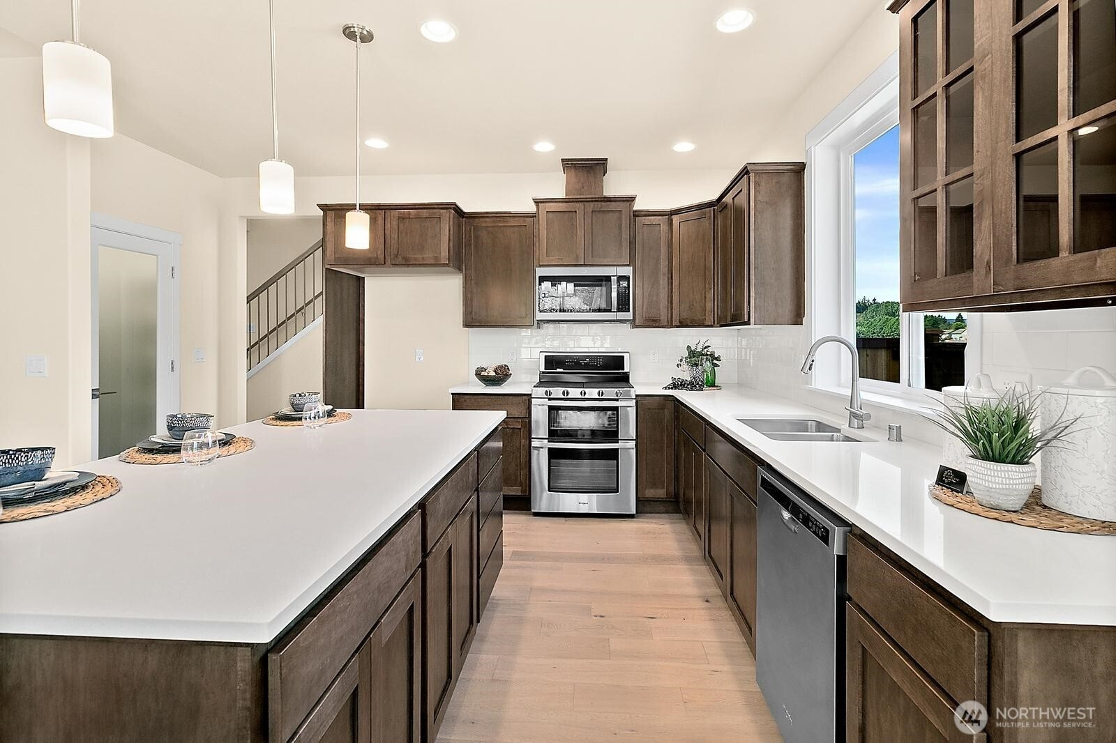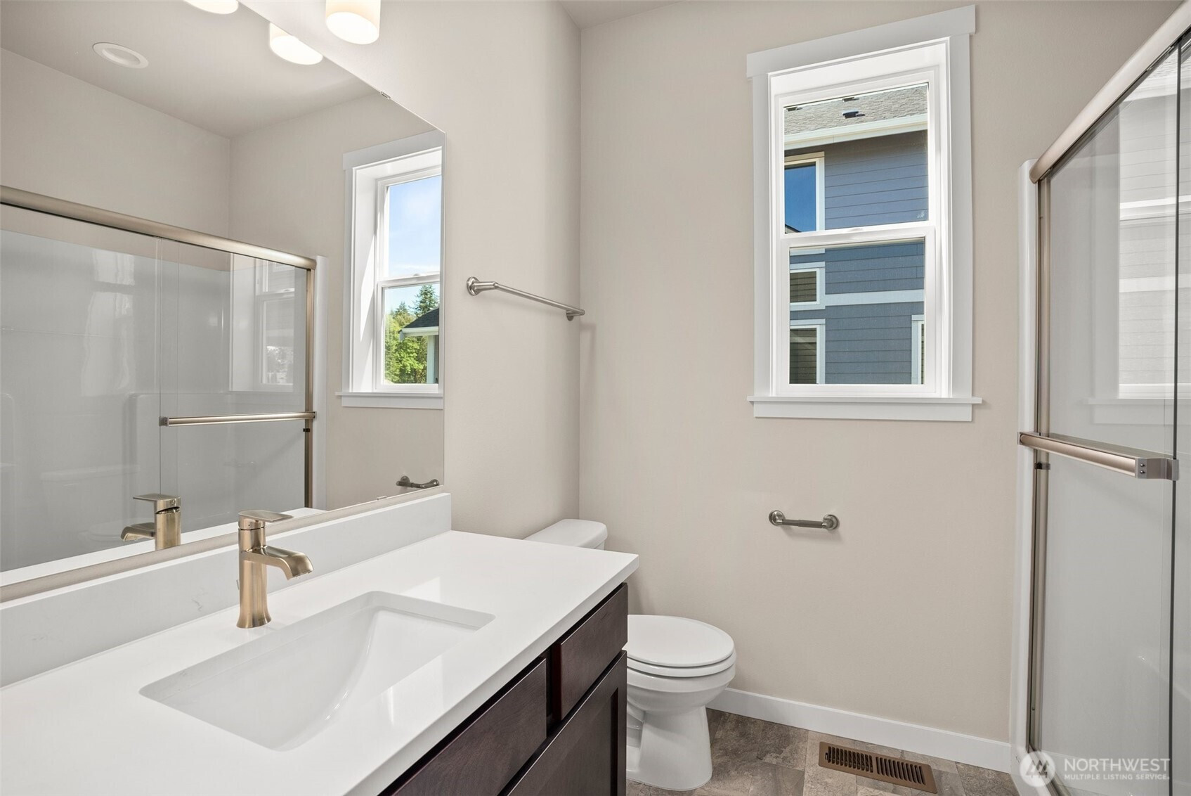 Skyview Estates by local builder Rob Rice Homes, now under construction. This thoughtfully designed Linden Plan offers 2,752 sq. ft. with a highly desirable main floor primary suite, 3 bedrooms, loft, den and 2.75 baths. The spacious kitchen anchors the home with “Charcoal” Maple cabinetry, quartz countertops, full tile backsplash, gas range with double oven, and a generous one-level eating bar that opens seamlessly to the dining and living areas, ideal for everyday living or gathering with friends. Hardwood flooring flows through the entry, kitchen and dining spaces, while quartz surfaces throughout add a refined finish. A second main floor bedroom with nearby ¾ bath offers flexibility for guests or multi-generational living. Upstairs, a large loft, additional bedroom, full bath and office/flex room provide space for hobbies, media or work-from-home needs. Step outside to a covered patio and fully fenced, landscaped yard designed for easy outdoor enjoyment. Energy-efficient features include solar panels, heat pump and hybrid hot water tank. Conveniently located with quick access to I-5, shopping, parks and everyday amenities. Staged or virtually staged photos from a previously built home.