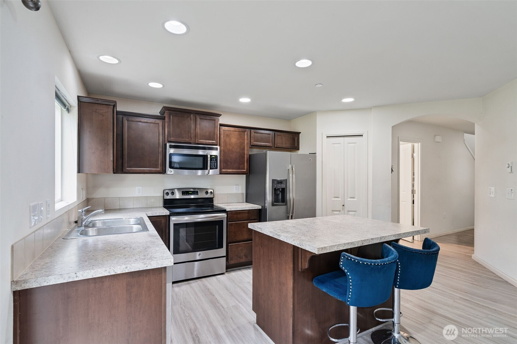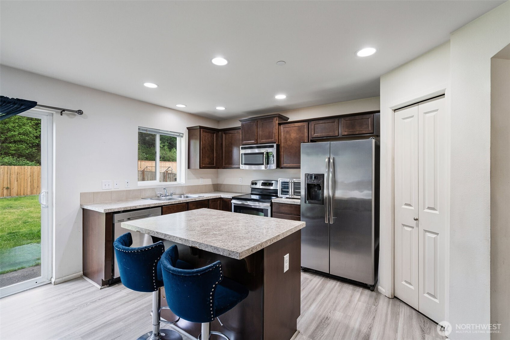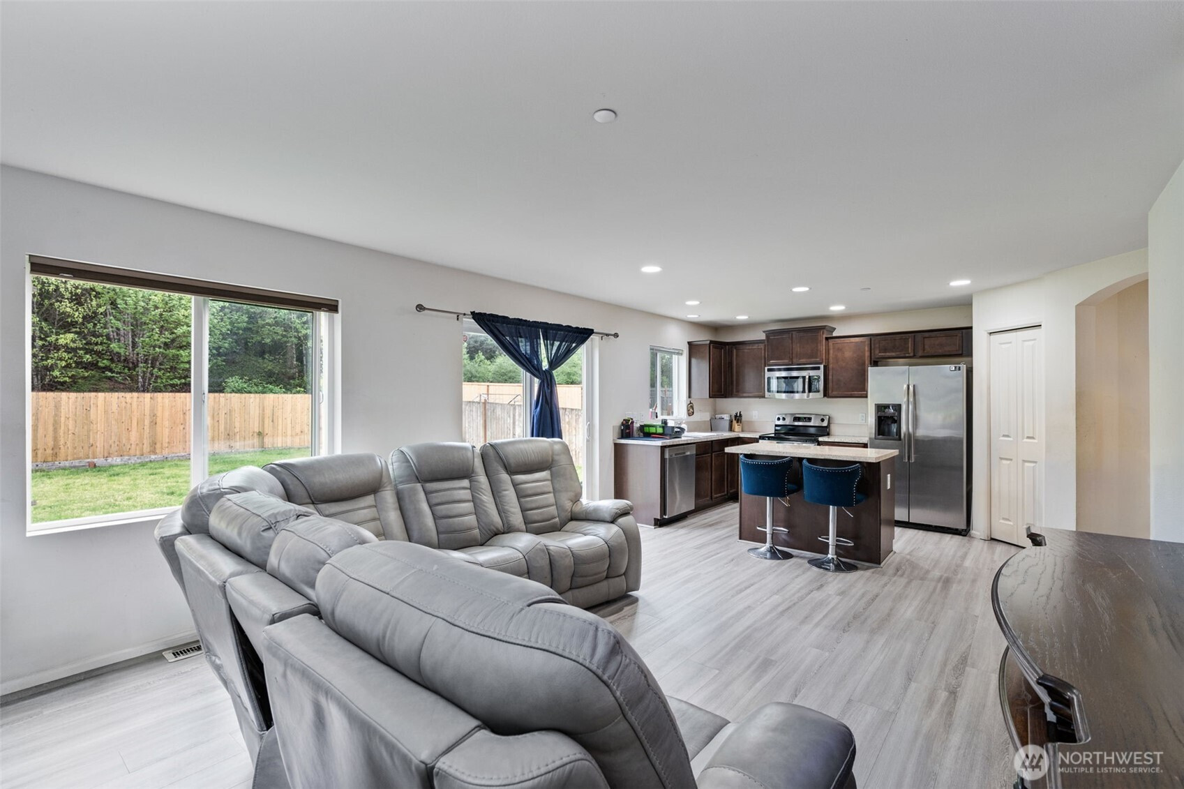 This charming and well-maintained home features 3 spacious bedrooms and 2.25 bathrooms, offering a generous 1,477 square feet of thoughtfully designed living space. The open concept kitchen and living room create a warm and welcoming atmosphere, perfect for both entertaining guests and enjoying everyday life. The kitchen is equipped with modern appliances and ample counter space, making meal preparation a delight. Step outside to a large, fully fenced backyard that provides privacy and security, ideal for outdoor activities, gardening, or hosting gatherings. Situated in a friendly and well-established neighborhood with a community playground, this residence offers a wonderful blend of convenience, comfort, and community spirit. Close to local schools, shopping centers, parks, and major transportation routes, this is an excellent place to call Home.