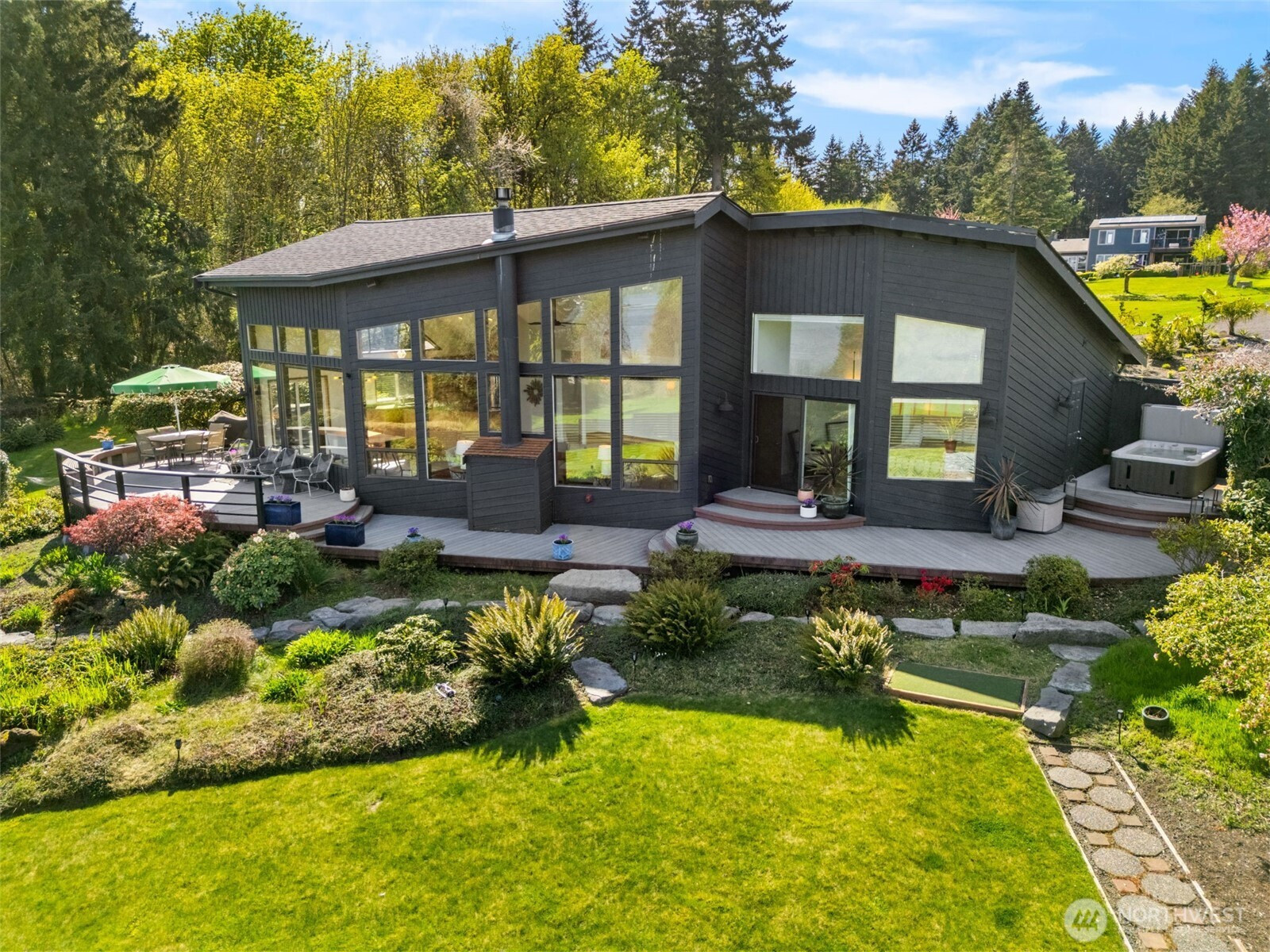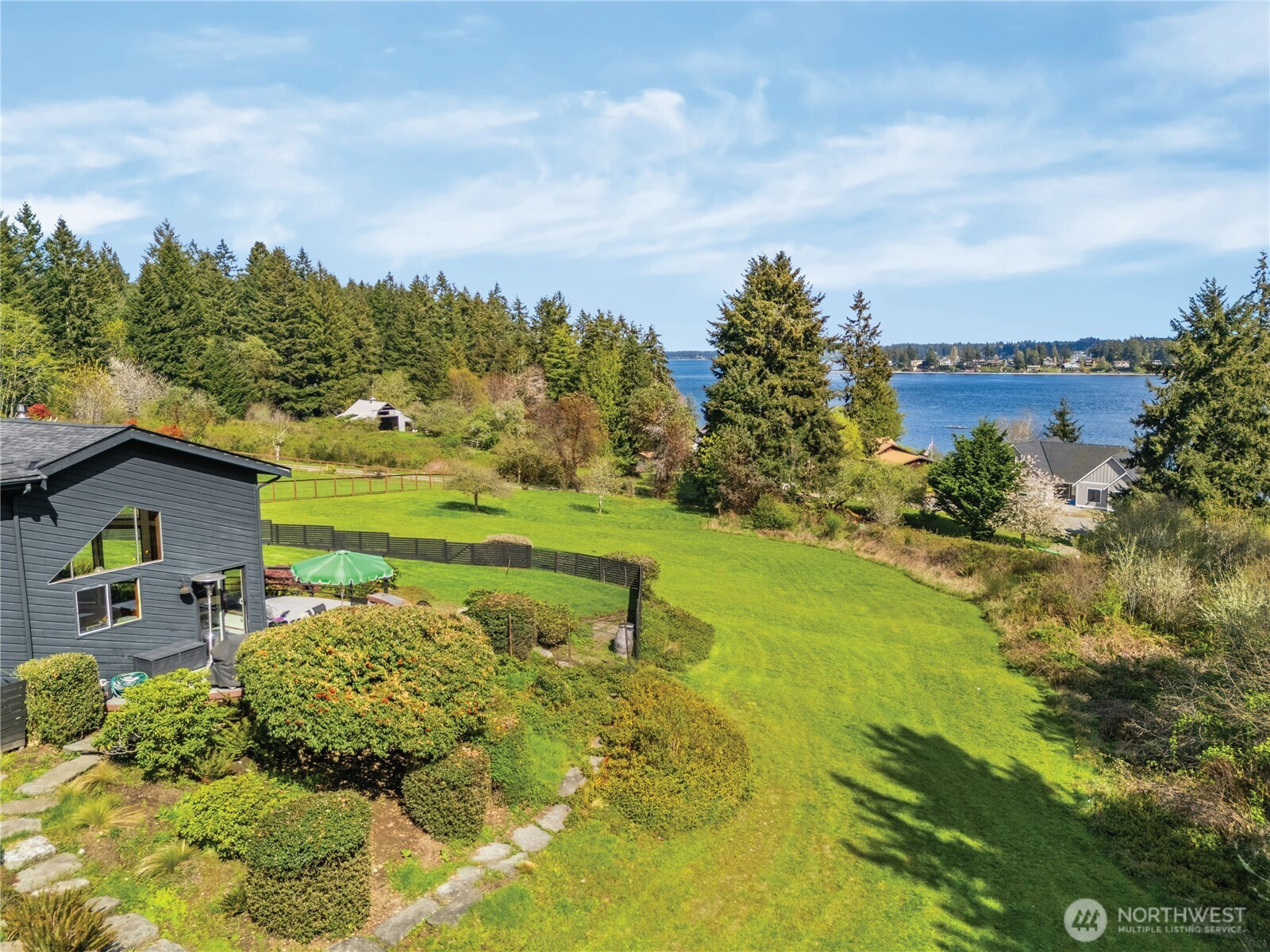 A PNW postcard in Griffin School District! Vacation every day at this Northwest oasis on 3 park-like acres showcasing views of Eld Inlet and Mount Rainier. This light and bright updated home with soaring ceilings features 3 bedrooms, 3 baths, plus an office, bonus room, Butlers Pantry, and utility room with built-in lockers. Wake up in the primary bedroom to perfect sunrises. The primary suite includes walk in closet, double sink vanity, stepless shower and access to outdoor hot tub with mountain view! Recent updates include new appliances, new roof (2025), and new remodeled driveway and front yard done by Outdoors by Design. The professionally landscaped backyard is ready for summer BBQs, at-home happy hours, and peaceful morning coffee. 20 minutes to Olympia’s Westside.