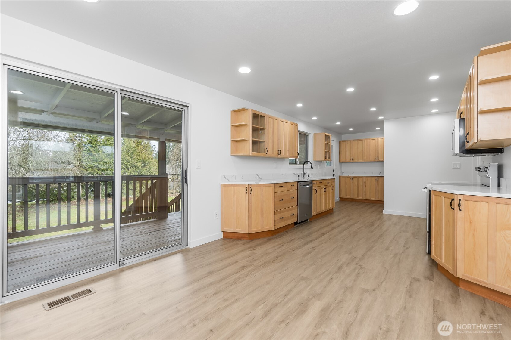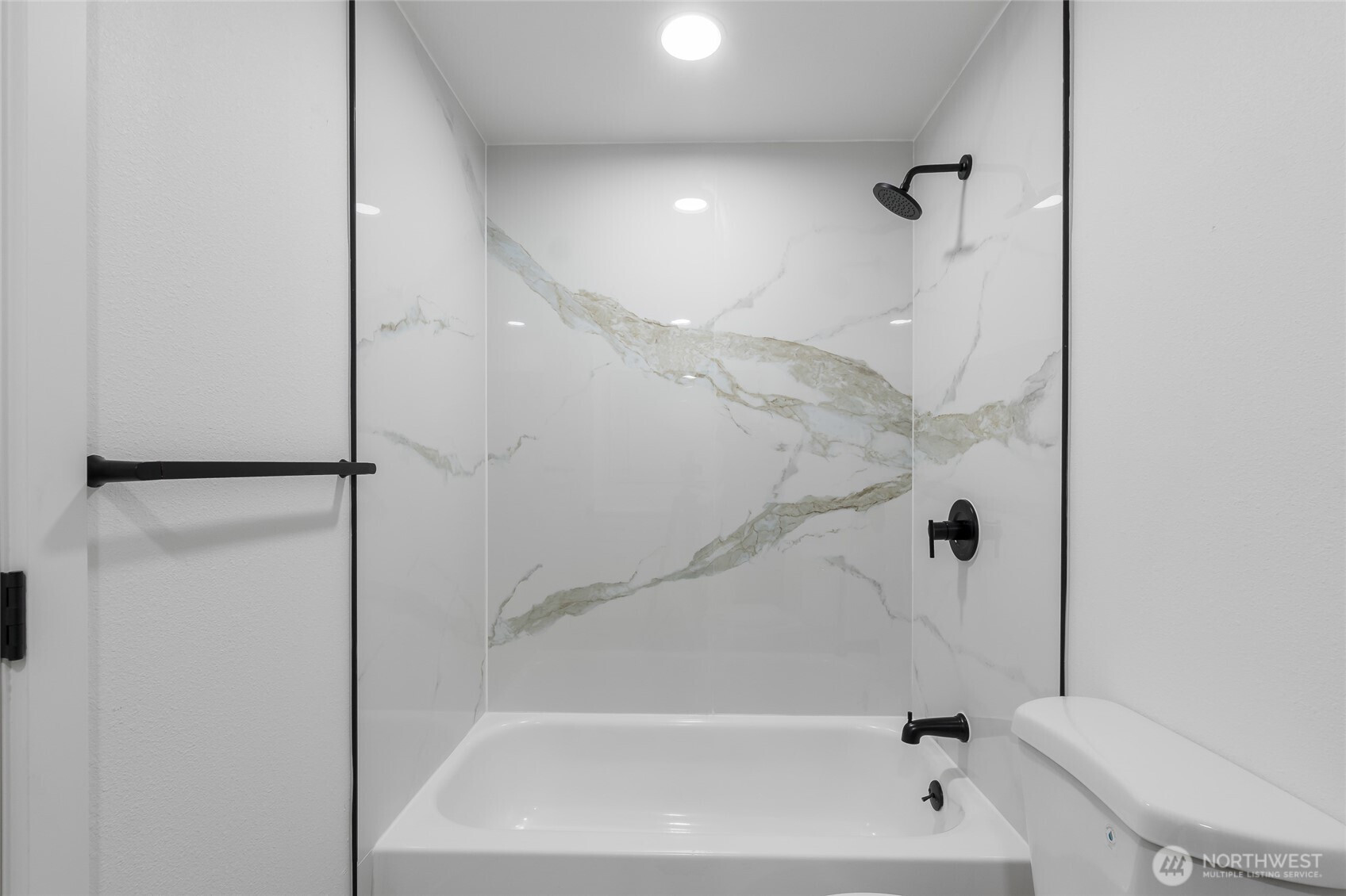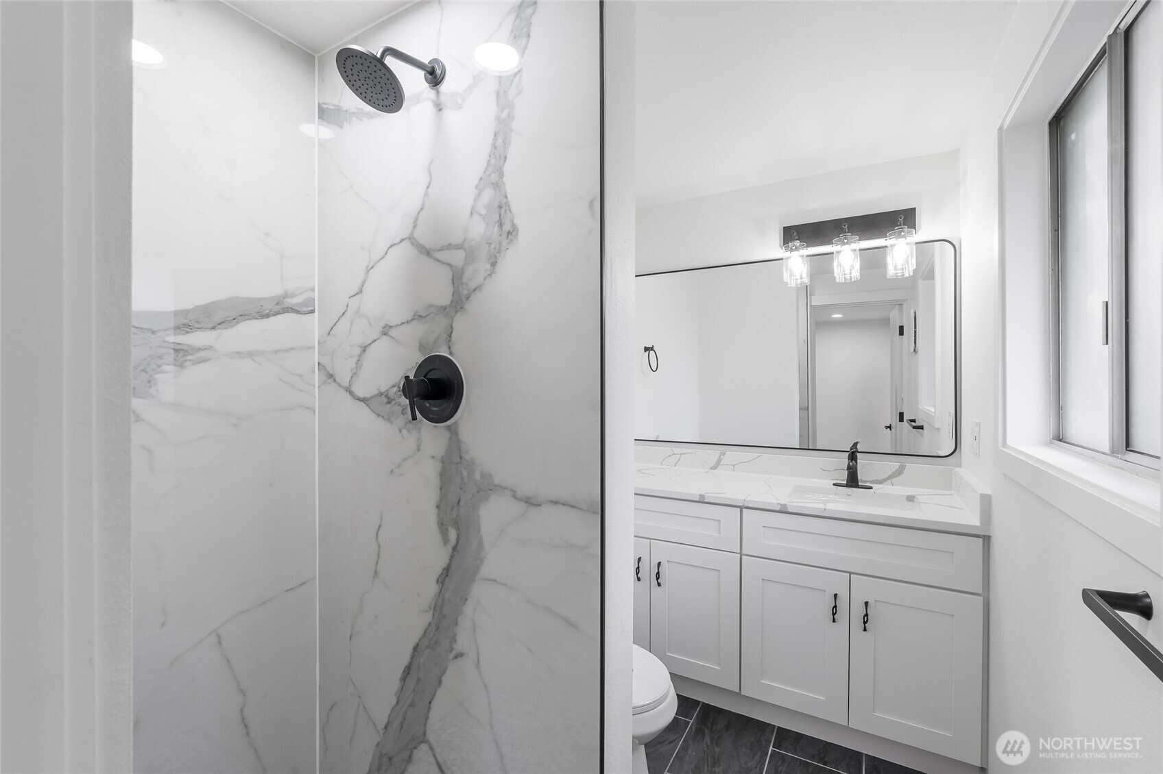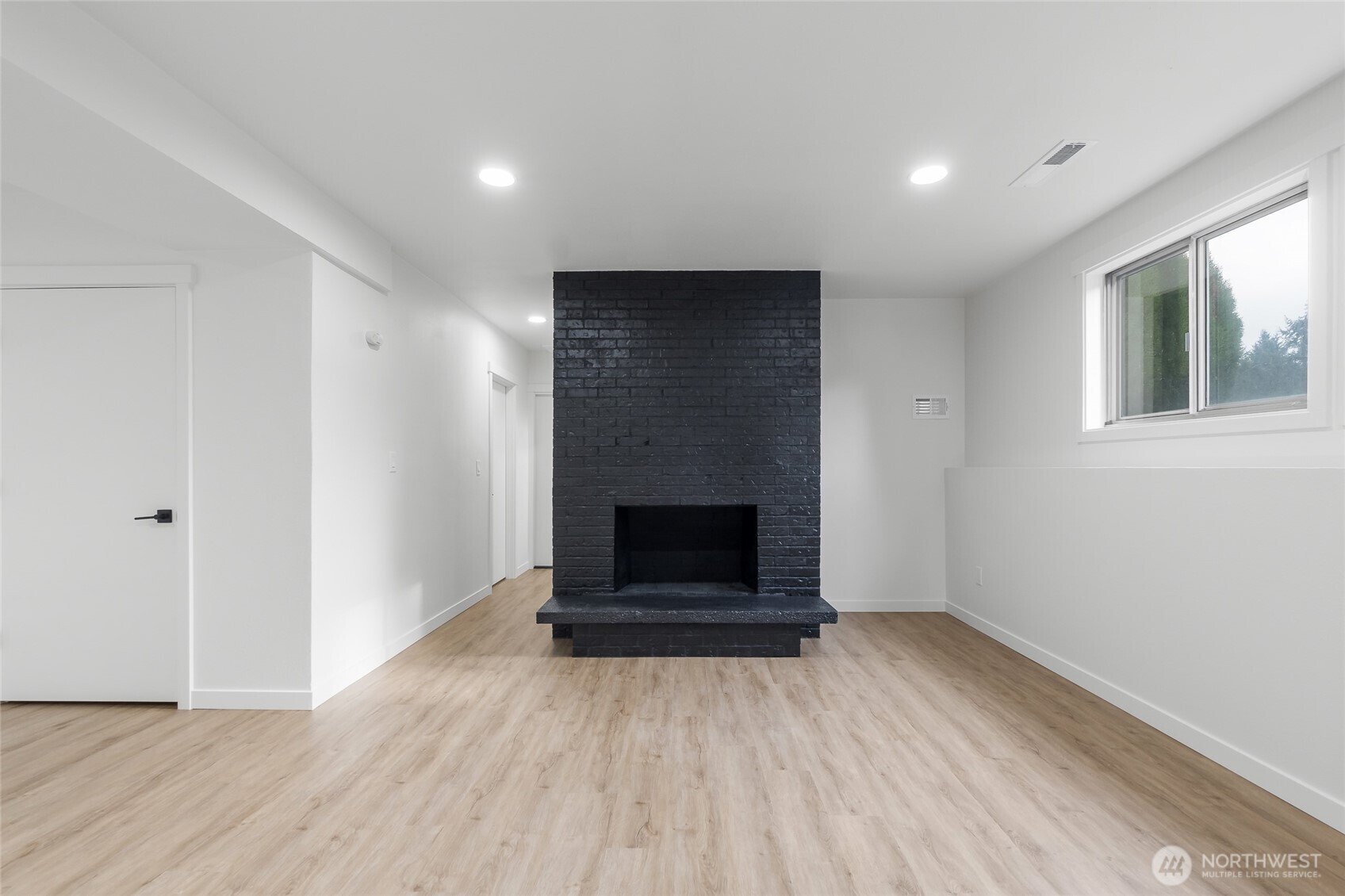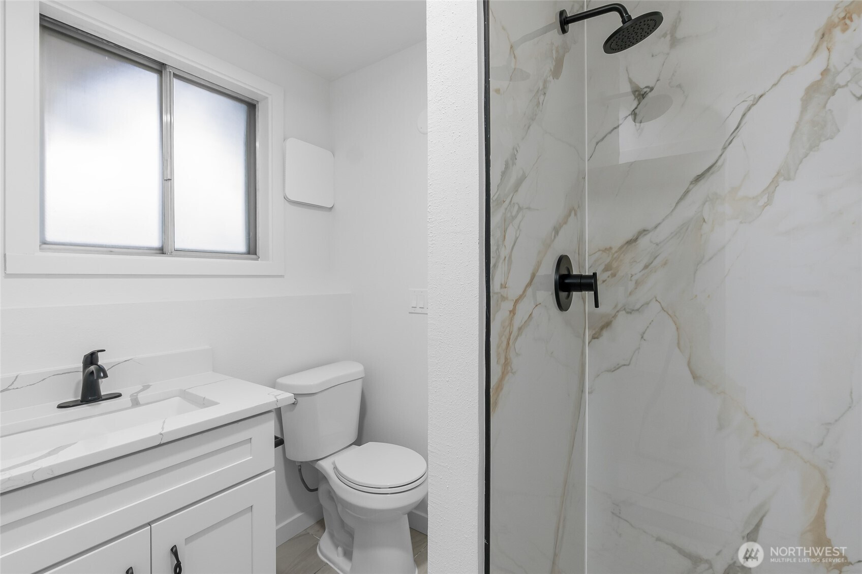 Beautifully updated 4-bedroom, 2.5-bath home with a versatile and open floor plan designed for modern living. Step inside to designer finishes throughout and an inviting main living space featuring a cozy wood-burning fireplace. The updated kitchen offers an abundance of cabinetry, NEW quartz countertops, and stainless-steel appliances—perfect for everyday living and entertaining. Upstairs features three spacious bedrooms and two full bathrooms, including a private primary suite with an updated bath showcasing a custom tiled walk-in shower, tiled floors, and quartz vanity. The lower level provides an additional gathering or entertainment space with a second wood-burning fireplace, plus a fourth bedroom and bathroom—ideal for guests, a home office, or multi-generational living. Recent interior updates include new flooring throughout, fresh interior paint, updated millwork, doors, fixtures, lighting, and fully remodeled bathrooms. Step outside to a large back deck overlooking a fully fenced backyard, perfect for hosting and relaxing. Conveniently located near shopping, dining, entertainment, and with easy freeway access.