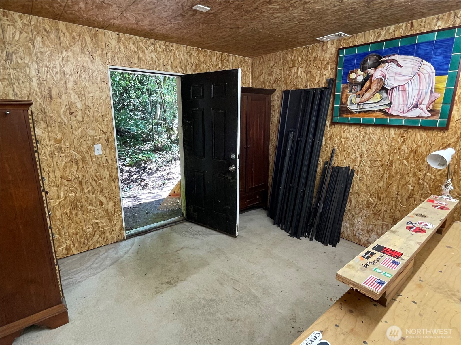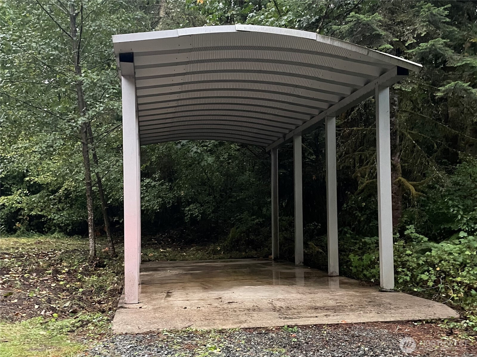 Priced to sell! Welcome to this private, unique home on 5.62 wooded acres with a 2-car attached garage. Open layout with 3 bedrooms, including 2 generous master suites, and a sunken living room with a cozy wood-burning stove. First-floor hardwoods are refinished, and fresh neutral paint throughout. The serene exterior boasts a spacious brick patio, large deck with a former hot tub spot, and an oversized carport for an RV. The special outbuilding offers two storage rooms below and a beautiful vaulted-ceiling second-story room—perfect for a home office. Seller offering 1.5% concessions to prospective buyers.