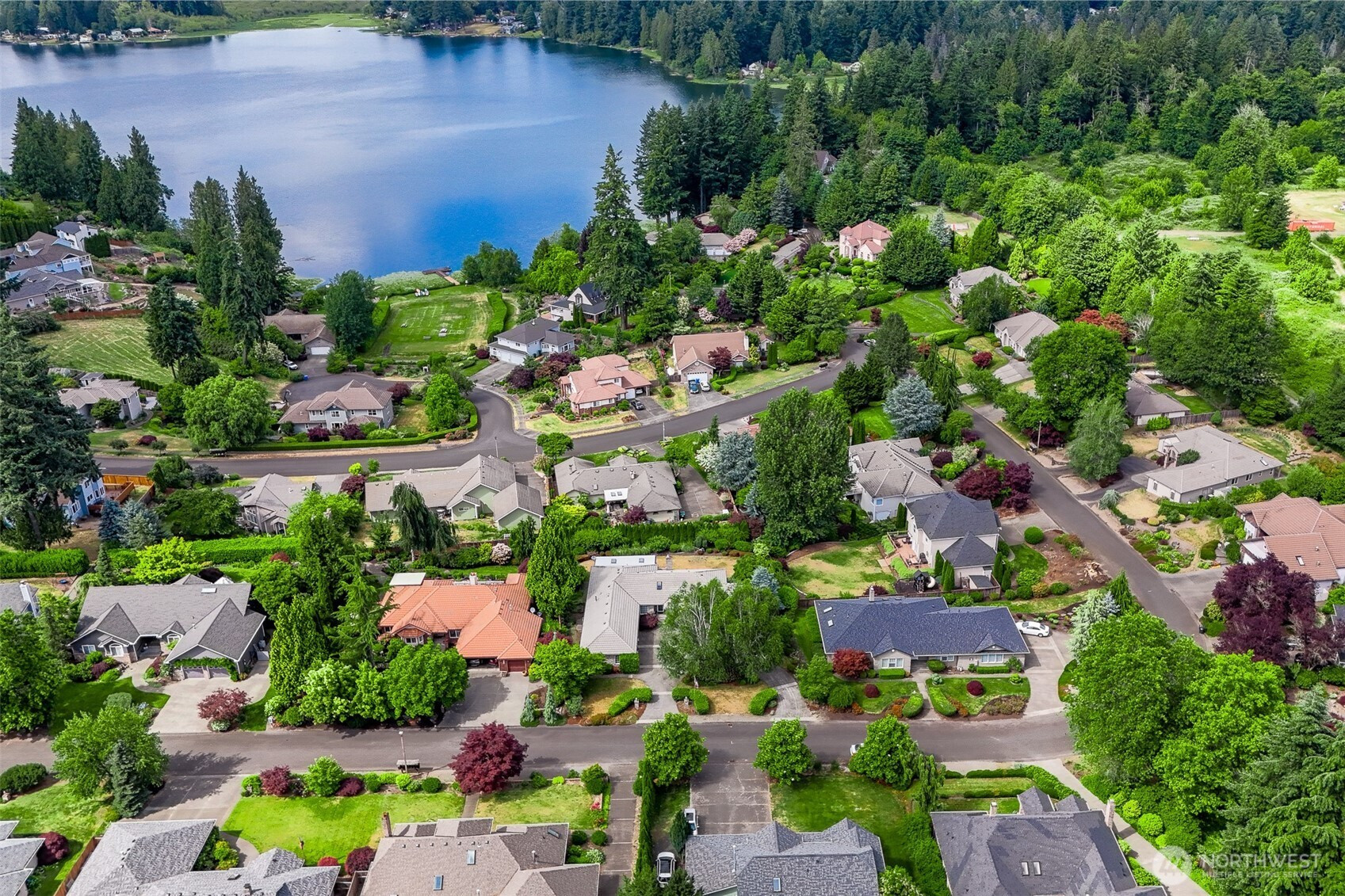 Welcome to South Cove, where peaceful lake living meets exceptional space for multi-generational lifestyles. This 3,290+/- sq ft custom home offers serene Pattison Lake views & flexible living w/room for everyone. The main floor features a light-filled layout, gourmet kitchen w/island and walk-in pantry, & an open family room w/sliders to a large covered deck, perfect for summer fun. Formal living & dining room, great for holiday gatherings. The spacious primary suite offers water views & privacy. Downstairs, (2) additional bedrooms, a full bath, & a generous game room w/wet bar & built-ins create the ideal guest or in-law space. Mature landscaping, water feature, & 3-car garage complete this versatile & inviting retreat.