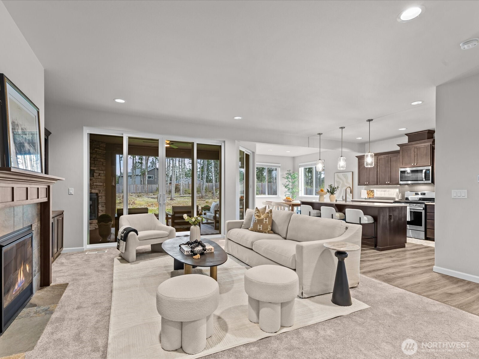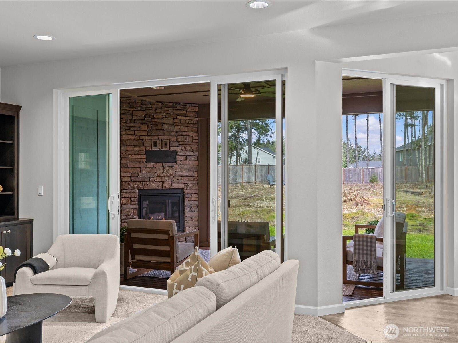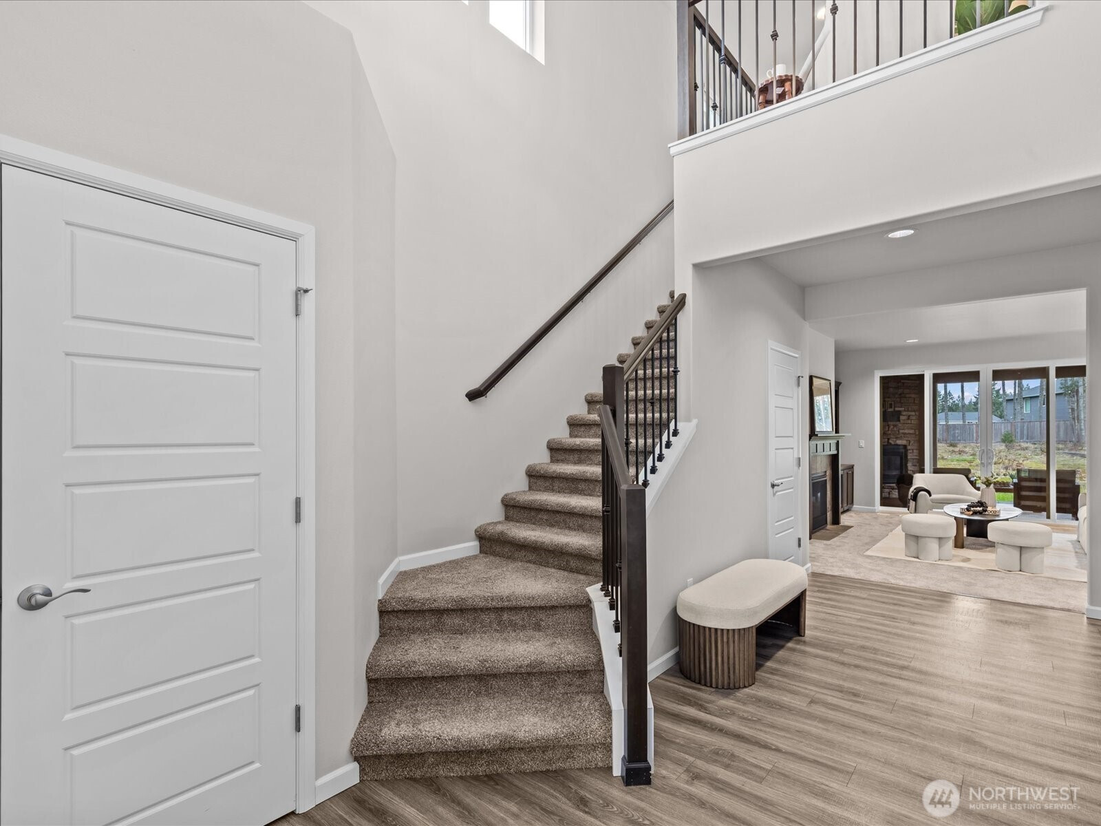 Well maintained and cared for Silver Hawk home bathed in natural light on prime 0.7 acre South facing parcel! Enter into the bright and airy foyer with dramatic 18' vaulted ceiling and lofted space above. A thoughtful floor-plan creates easy living and flow, with an office on the main floor and custom built-ins throughout the home. 3 sliding glass doors open to the covered deck and provide a comfortable and private indoor/outdoor entertainment and relaxation space, with an opportunity to take in the expansive and fully fenced backyard and lush level lawn. Upstairs features 4 bedrooms, laundry room, and cute reading nook/flex area. The spacious primary suite has an oversized and spa-inspired 5-piece bath and walk-in closet, and is perched above the backyard, well screened and distant from the neighboring homes. Home is equipped with an Aquasana whole-house water filtration system and 220V plug in the insulated garage. An abundant and natural wooded yard remains for you to utilize and tailor to your needs, and the home comes ready with a newer riding lawnmower to roll out of the backyard garage door!