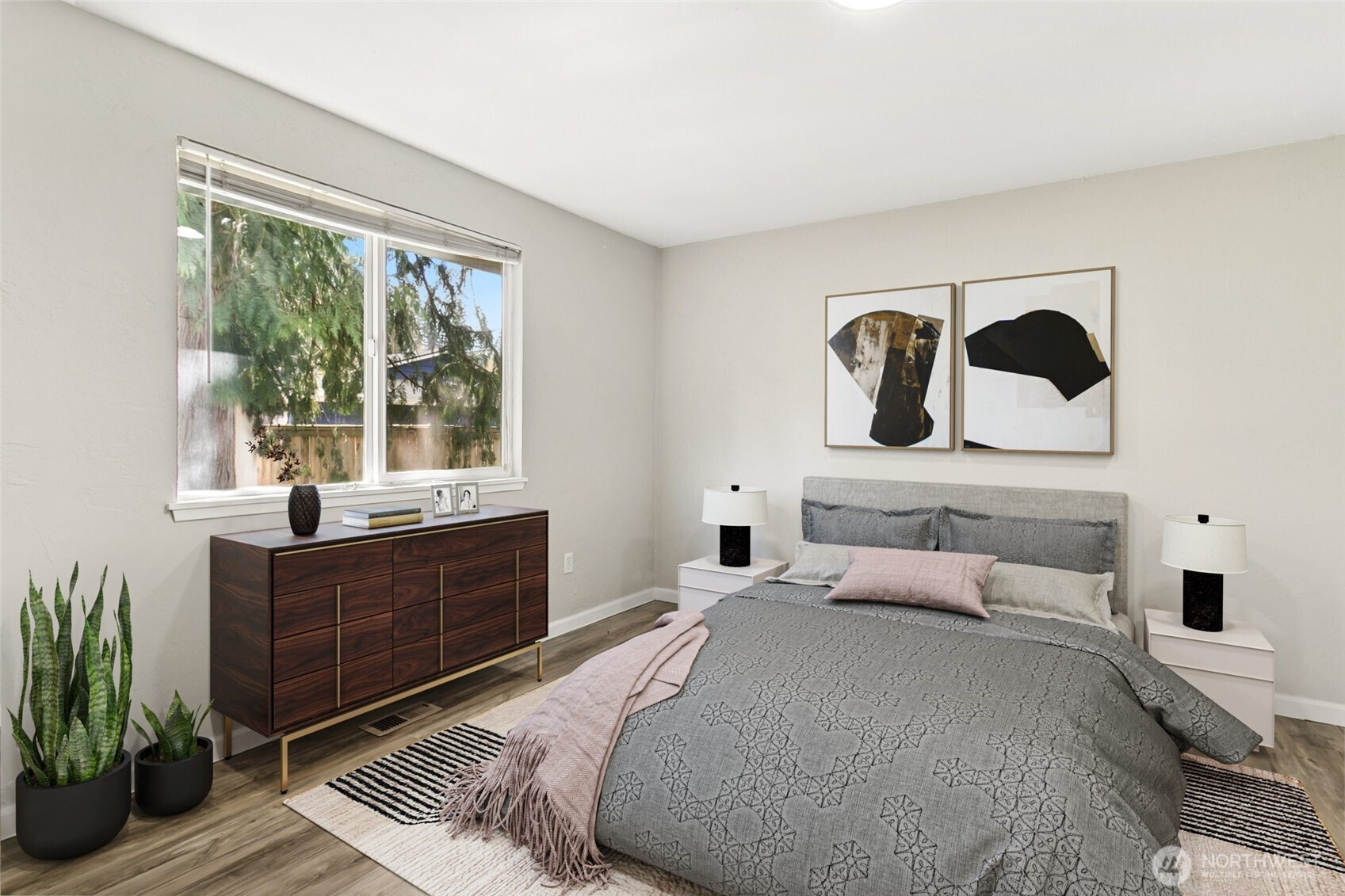 Don’t miss this beautifully maintained 3-bedroom, 1-bath home in Olympia! This charming one-story residence welcomes you with warm LVP flooring and a spacious living room centered around a cozy wood-burning stove—perfect for relaxing evenings at home. The thoughtfully designed layout features a bright kitchen with new quartz countertops, an inviting dining area, three comfortable bedrooms, and a full bath also updated with quartz counters. Pride of ownership shines throughout with fresh exterior paint, a gas furnace, heat pump, ceiling fans, and all appliances included for a truly move-in-ready experience. The attached one-car garage offers a convenient laundry area and additional storage space. Step outside to a fully fenced backyard retreat complete with a deck ideal for entertaining, mature trees providing shade and privacy, and a storage shed for all your outdoor needs. With no HOA and a prime location near schools, shopping, entertainment, I-5, and JBLM, this home offers the perfect blend of comfort, charm, and everyday convenience.