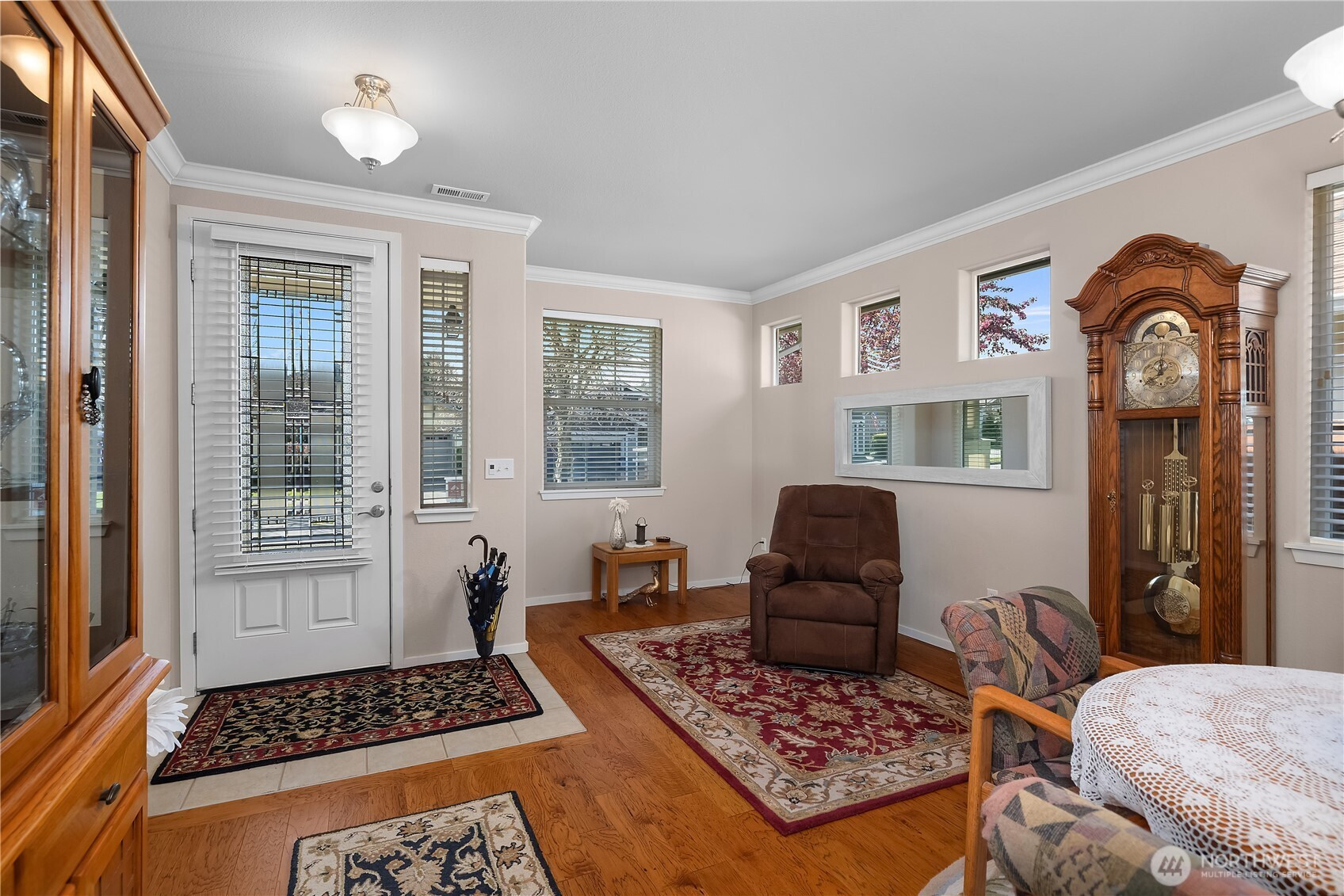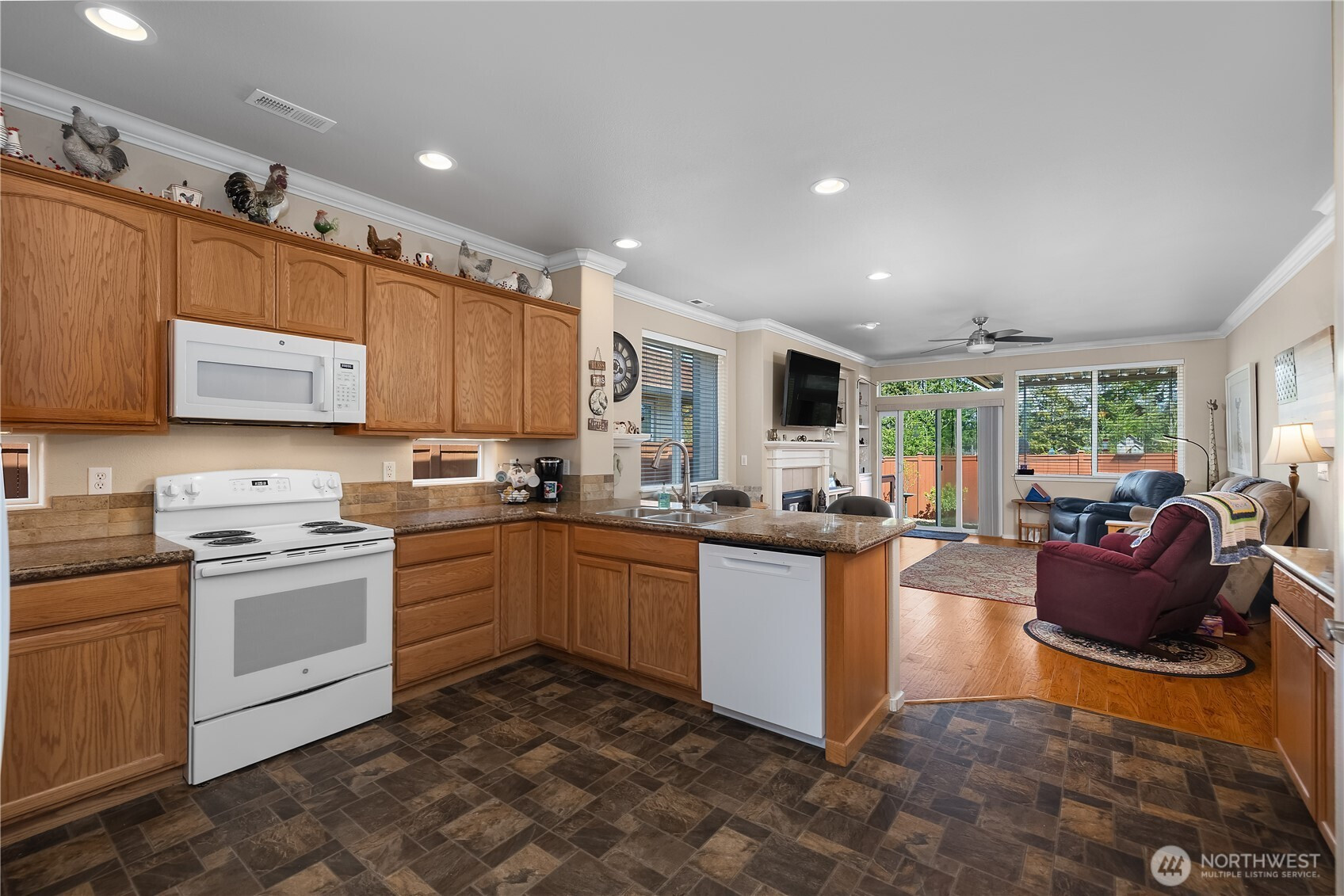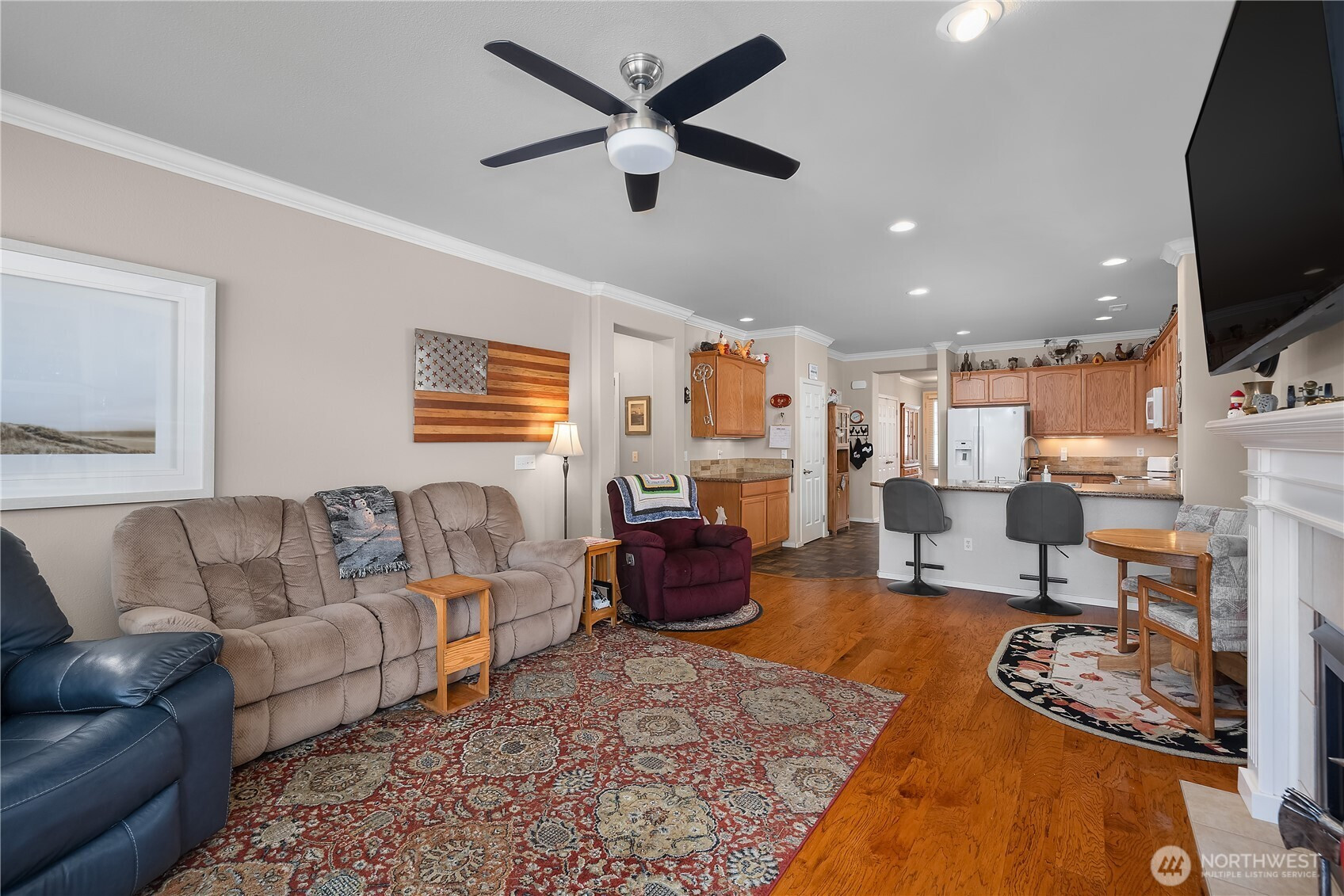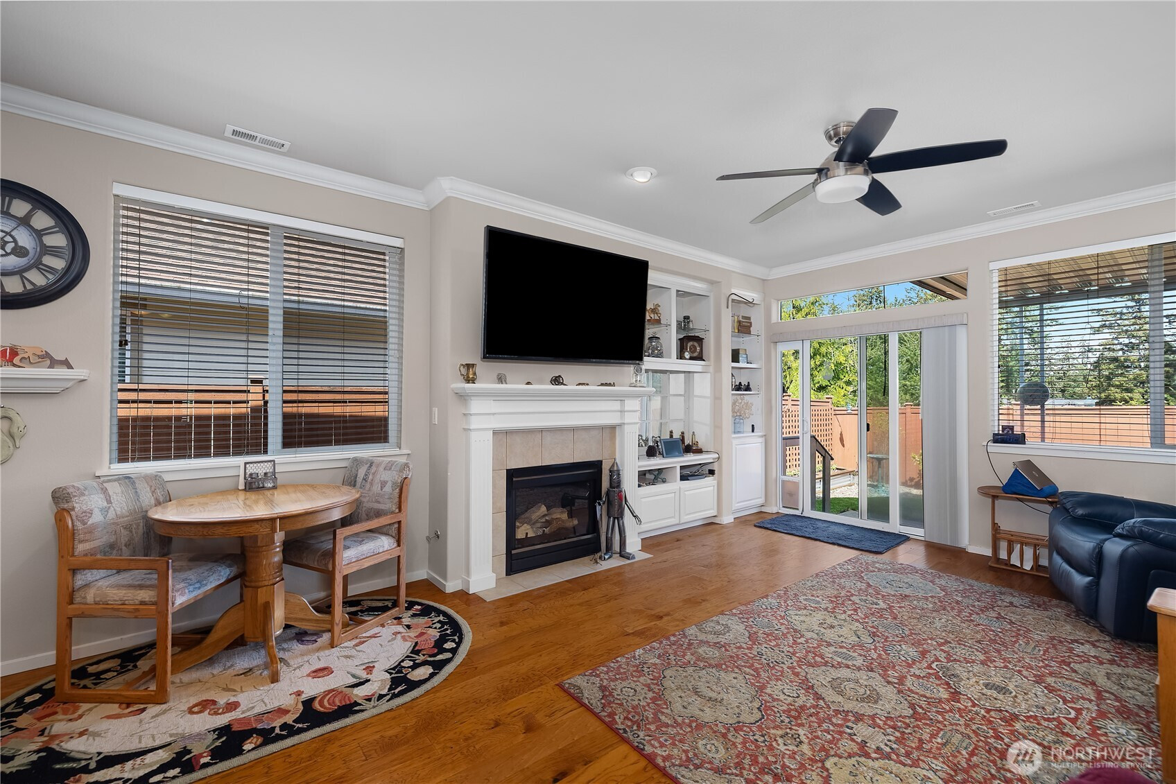 This beautifully maintained 2-bedroom, 2 full bathroom home offers 1,580 square feet of comfortable, thoughtfully designed living space in a desirable 55+ community. The spacious layout features a bright and inviting living area centered around a cozy gas fireplace—perfect for relaxing or entertaining. A large bonus room adds valuable flexibility, ideal for a home office, hobby space, media room, or guest retreat. The well-appointed kitchen flows seamlessly into the dining and living spaces, creating an ideal setting for everyday living. The generous primary suite includes a private full bath, while the second bedroom provides additional comfort for guests. Enjoy low-maintenance living in a peaceful, community-oriented neighborhood with amenities designed for an active lifestyle.