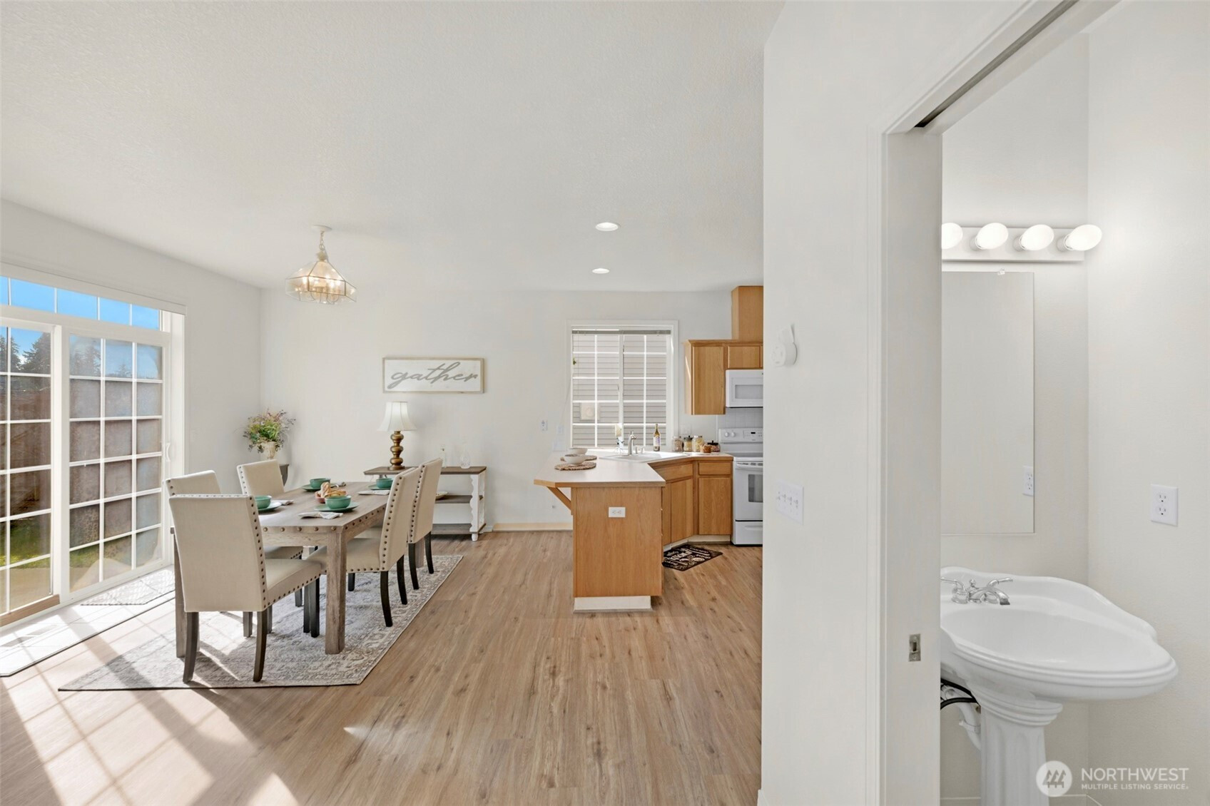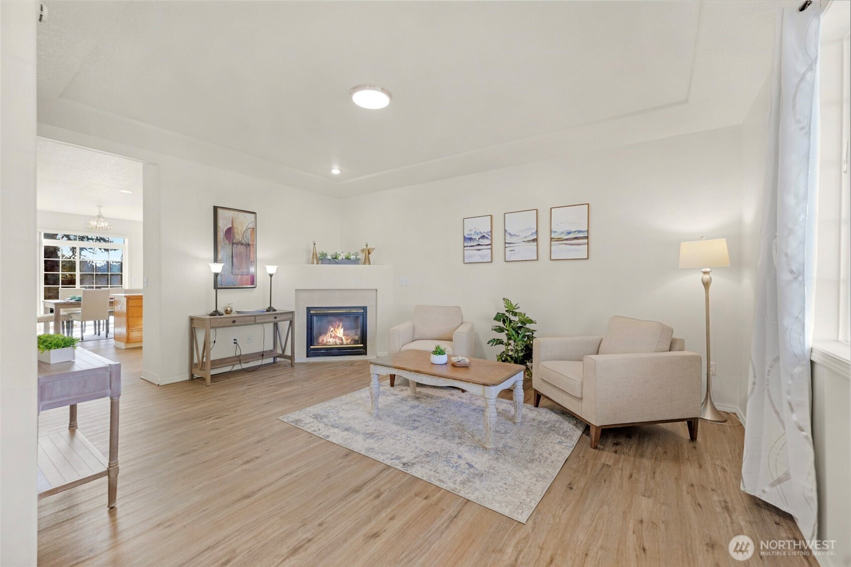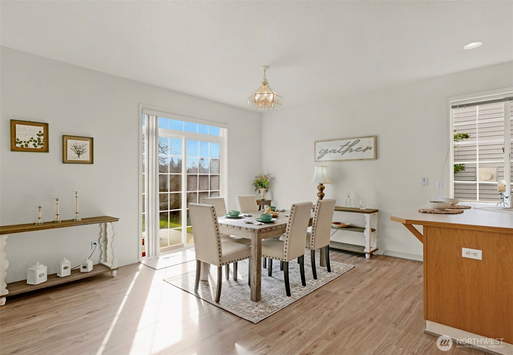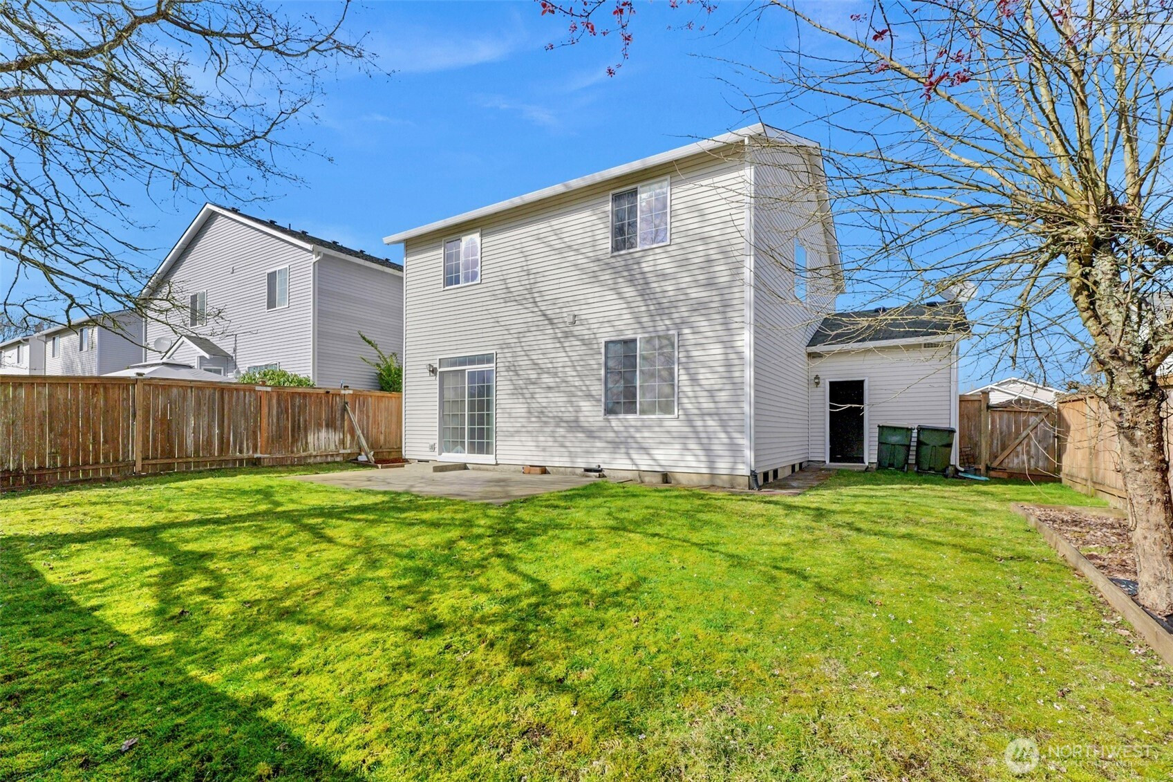 This move in ready 3 bedroom, 2.5 bath, 1,992 sf home in the desirable Union Mills area sits on a quiet street & backs directly to McALLISTER PARK offering rare privacy & picture perfect natural setting. On a tree lined street, this home offers an open layout with a bright, sunny kitchen & dining area with plenty of cabinetry, pantry & a breakfast bar. Enjoy flexible living with a living room & family room. The living room has a gas fireplace & coved ceilings for a more refined look, while the family room off the kitchen is perfect for relaxing or entertaining. Upstairs, the spacious primary suite has vaulted ceilings, an X-large WIC and 5-piece bath with soaking tub and 2 more ‘Queen’ sized bedrooms.NEW luxury vinyl plank flooring throughout (NO carpet!), FRESH paint & NEW south facing windows & sliding glass door* Outdoors has a fully fenced backyard with patio, lawn & garden space—ideal for pets, play, or outdoor gatherings, while the HOA MAINTAINED FRONT LAWN allows for easy, low maintenance living. Step out to your back yard & experience Mcallister Park-- this dog-friendly park offers defined walking trails, maintained open fields & a historic FORMER RAILROAD to explore. The surrounding Tri-Lakes area near Hicks, Long & Pattison Lakes—is loved for its mature trees, neighborhood charm & nearby waterfront recreation. All this with nearby Costco, Home Depot, Walmart, local schools, parks, JBLM, and quick access to I-5. Don’t miss this outstanding home in a prime location!