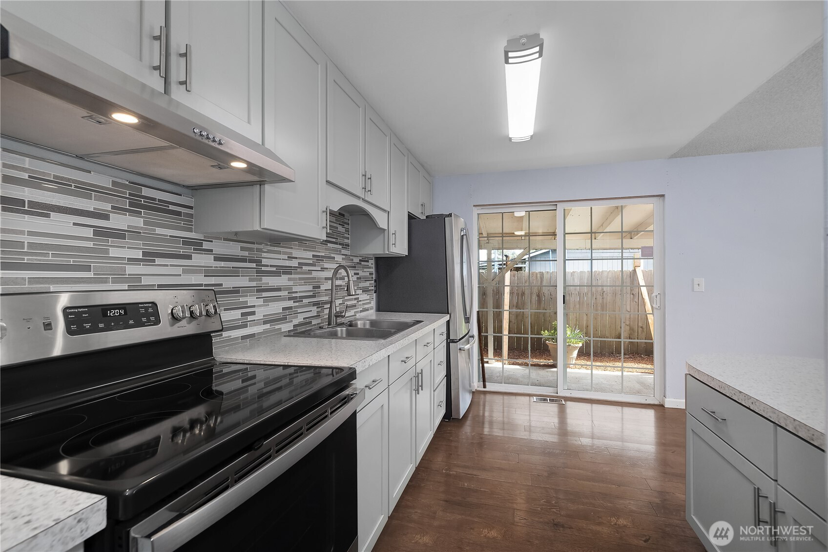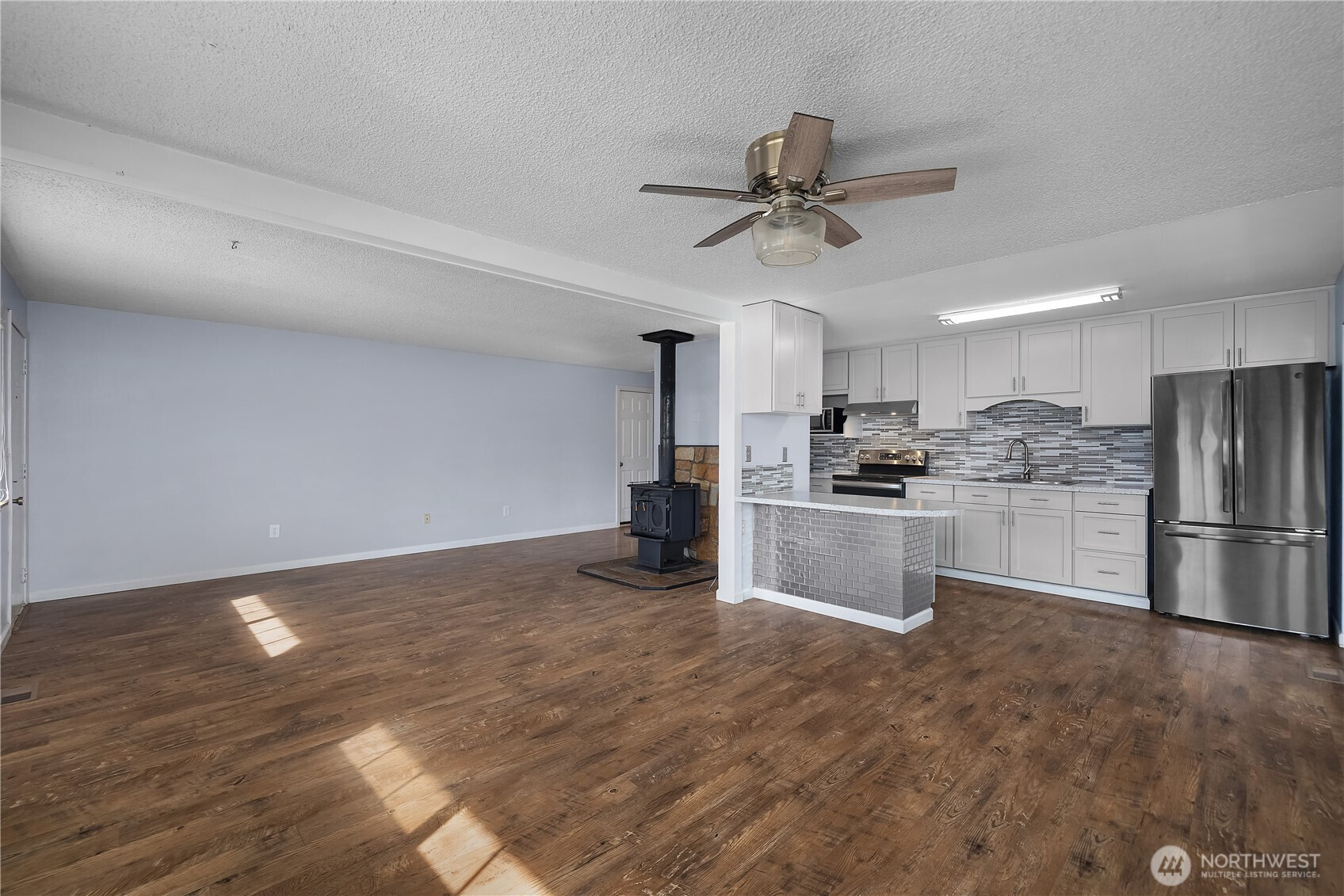 Open concept rambler with 3 beds and 1 bath with a cozy freestanding wood-burning fireplace. The kitchen offers a clean, modern feel while flowing seamlessly into the living room. Sliding glass door off the kitchen leads to a spacious, private covered patio perfect for year-round enjoyment. The generous yard provides wonderful garden space, along with a handy shed for tools and outdoor equipment. Mature landscaping and established fruit trees including pear, apple and cherry. A single car garage and additional parking with space for your vehicles, RV or boat. No HOA. Close to schools, parks (regional athletic complex), shopping, dining, I-5 and JBLM.