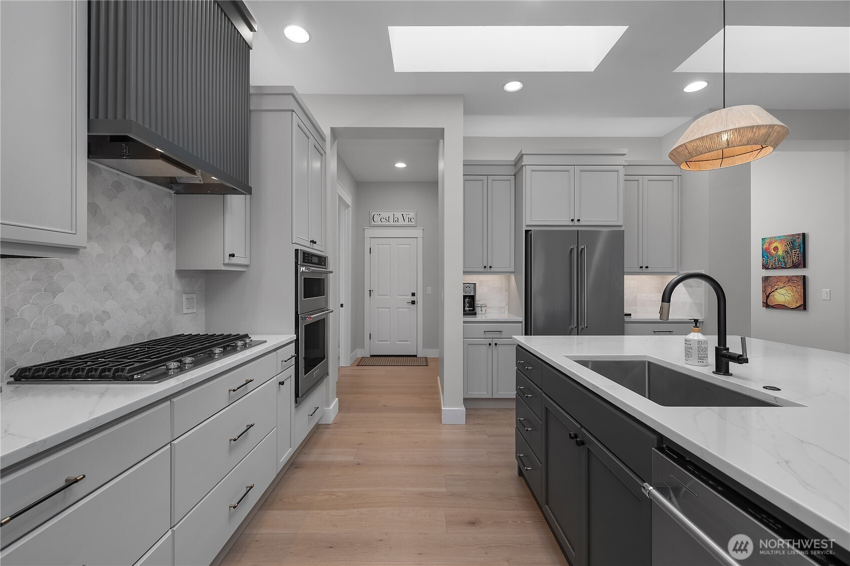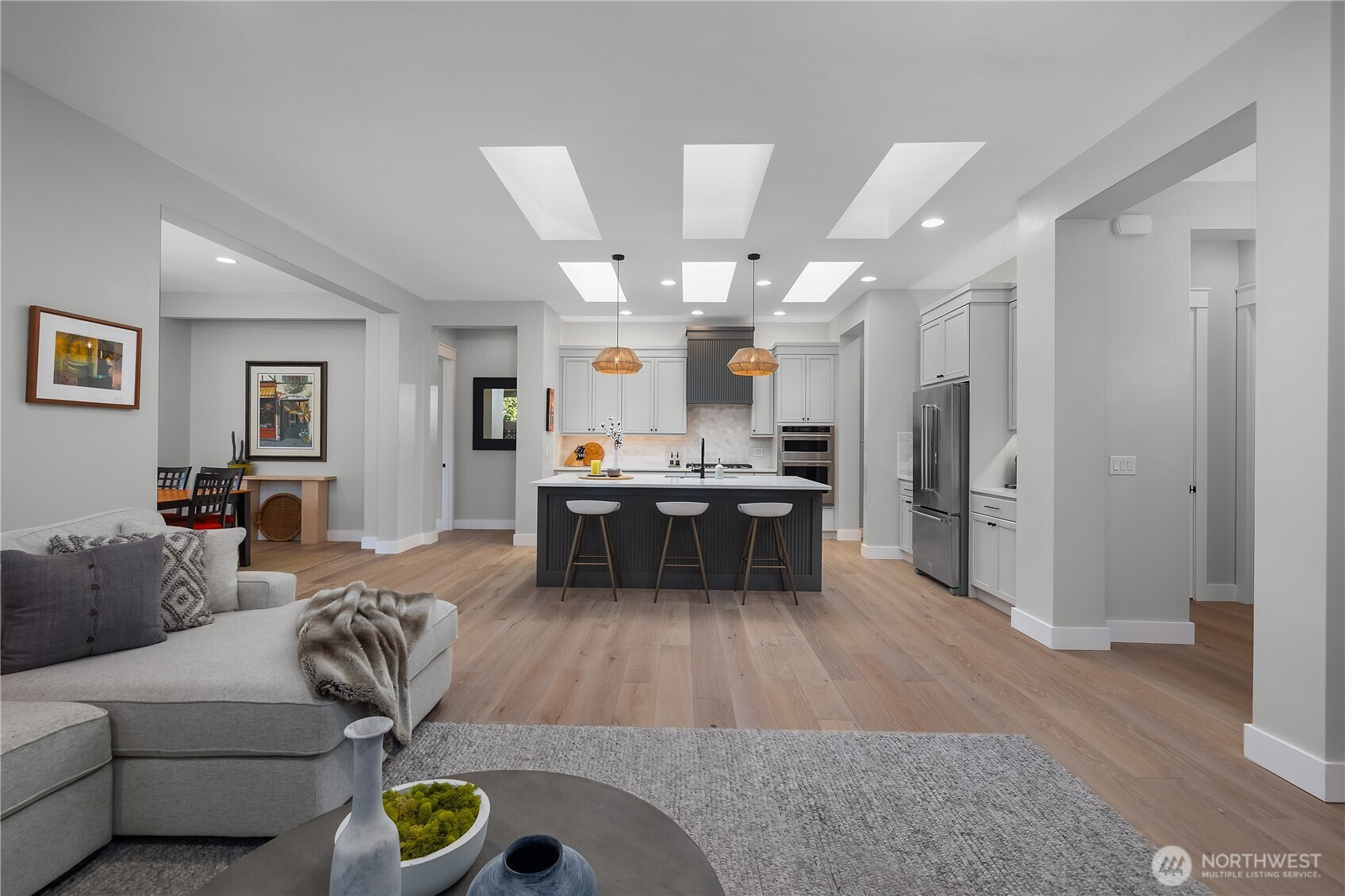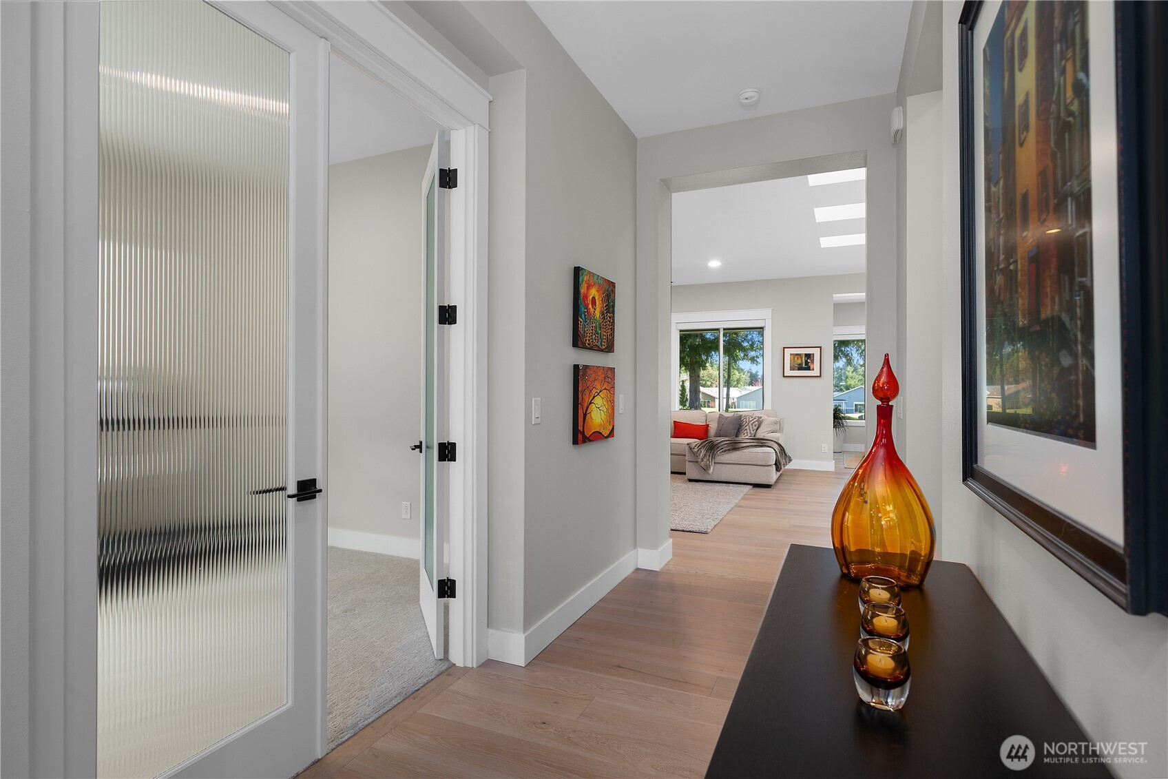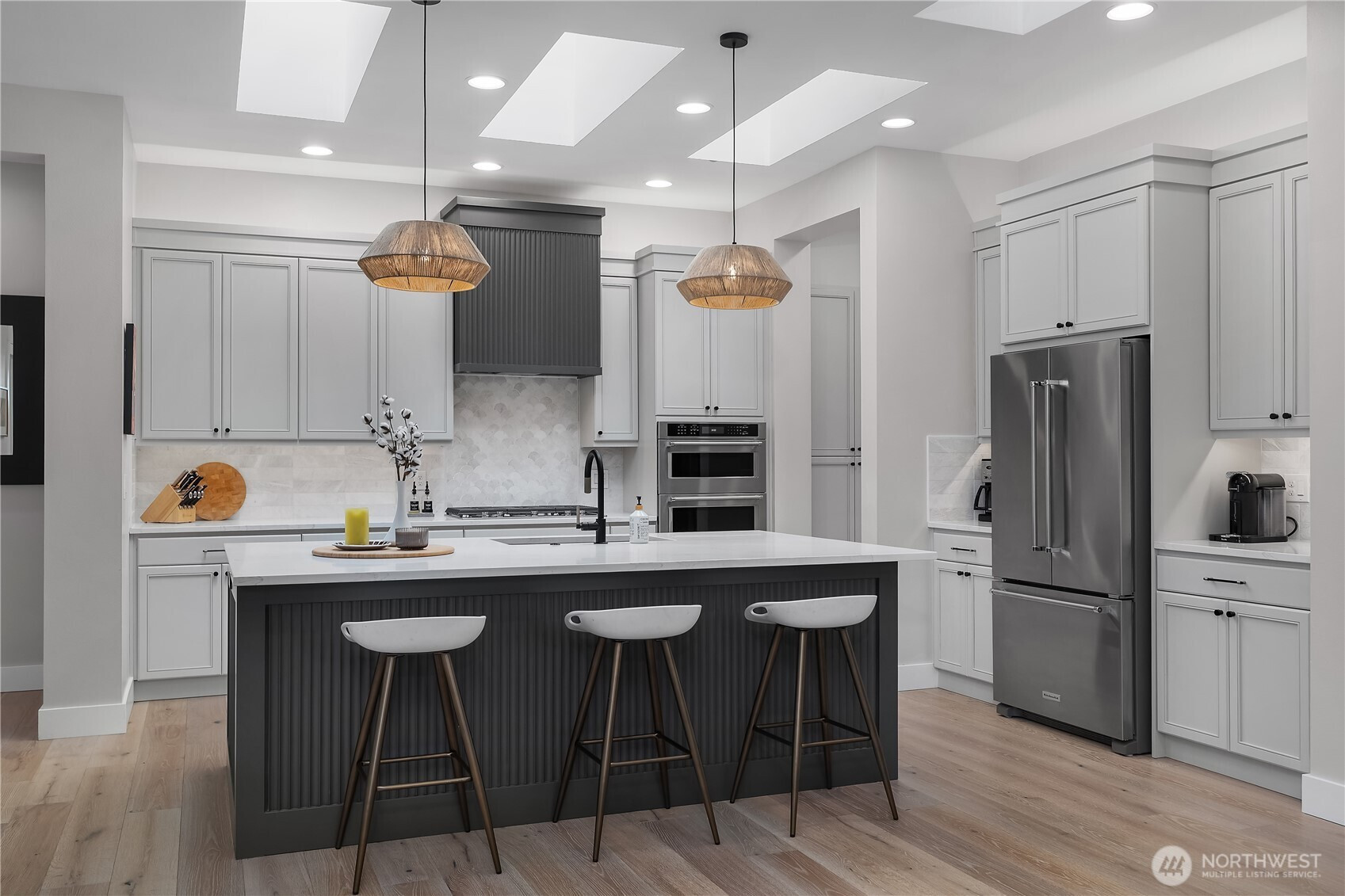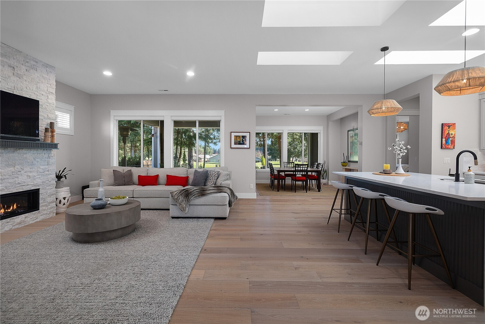Beautifully reimagined, turnkey custom home in the highly sought-after 55+ Jubilee community, ideally situated on a private lane along the golf course. This fully updated residence showcases new hardwood flooring, LED lighting, custom millwork, & a striking stone accent wall with a 52" linear gas fireplace. Six new skylights & expansive windows fill the home with natural light, complemented by custom motorized window coverings. The modernized gourmet kitchen features new quartz countertops, pull-out drawers, a custom island, & all-new stainless steel appliances, impeccably enhanced by under/over cabinet lighting. The spacious primary suite offers stunning views of the 17th fairway, new carpet, & custom remote-controlled window coverings with a blackout option. The spa-inspired en-suite bath is newly updated with a soaking tub & a fully tiled walk-in, all-glass shower, along with custom cabinetry, quartz countertops, oversized porcelain sinks, designer lighting, & mirrors. A second en-suite bedroom features a full-tile shower & quartz countertops. The den offers new carpet & is enhanced by striking fluted 8-foot glass French doors. The renovated laundry/smart space offers built-ins, Electrolux W/D, sink, & an additional office space. Enjoy a redesigned backyard with covered patio, low-maintenance landscaping, & stunning golf course views. This home offers effortless, elevated living in one of the area’s most desirable active adult communities.(some images are virtually staged)