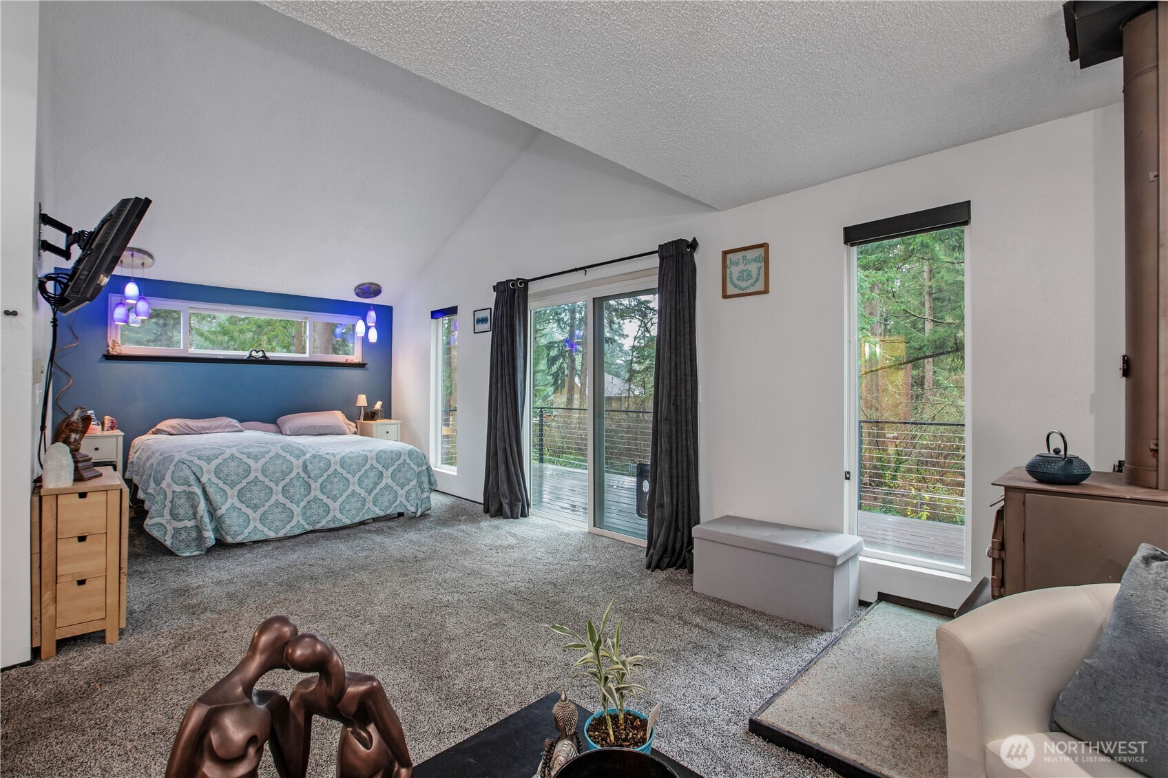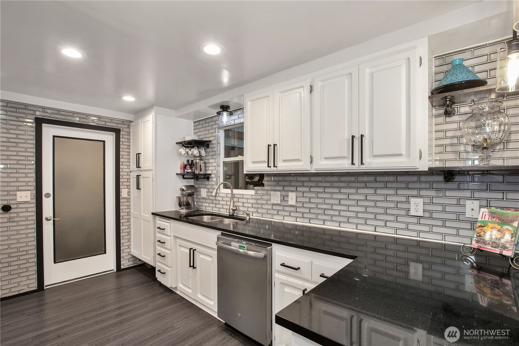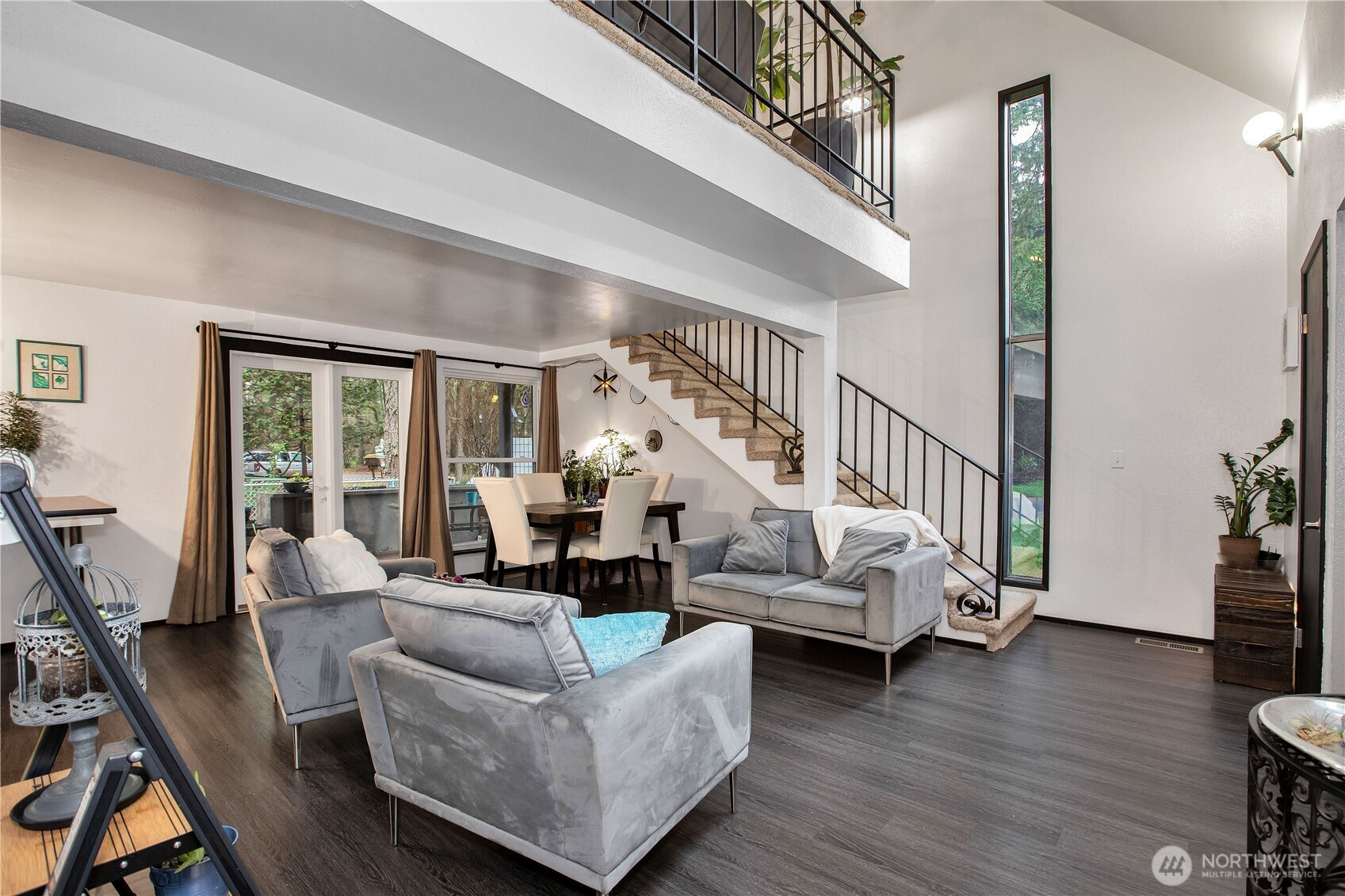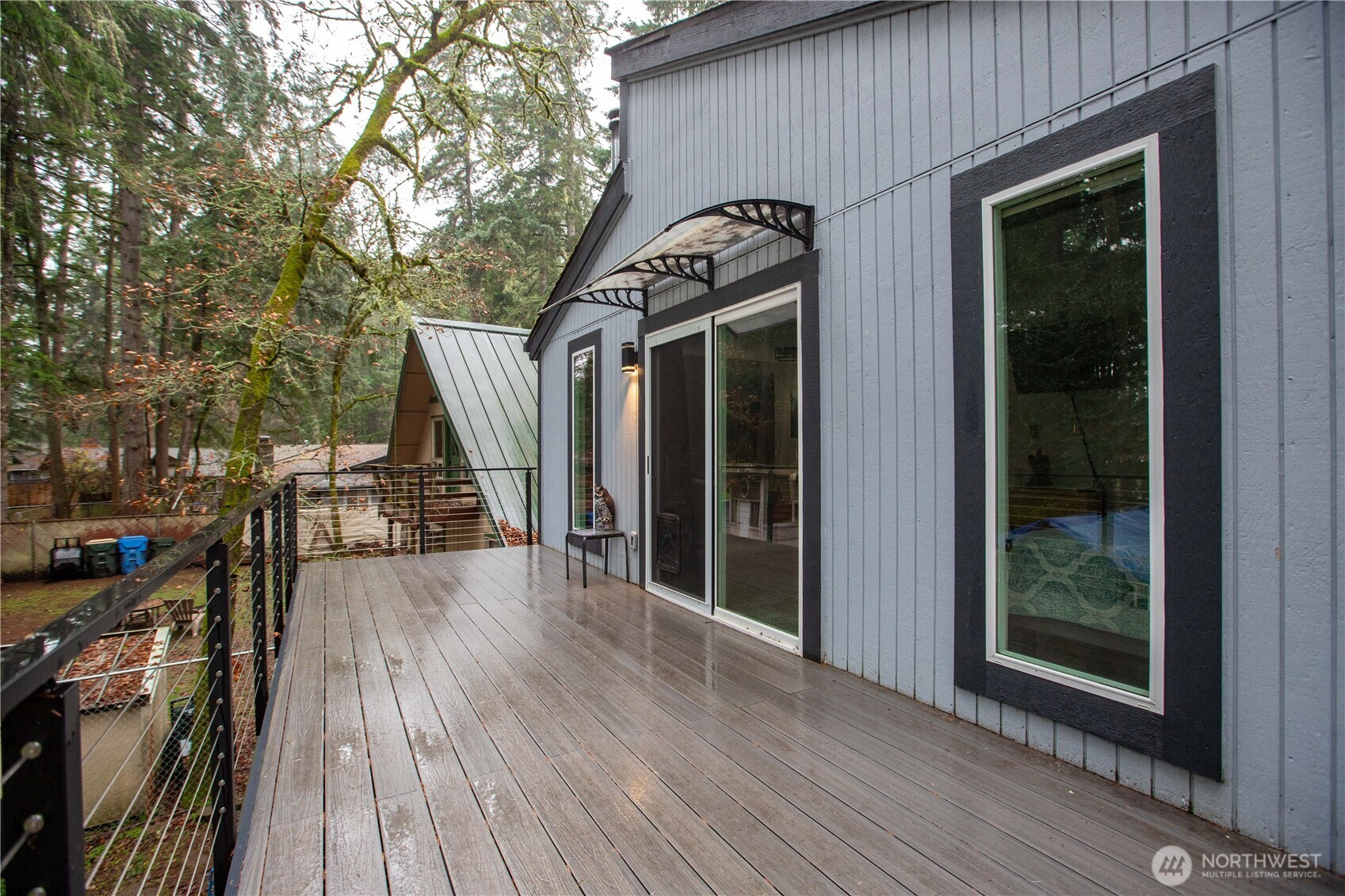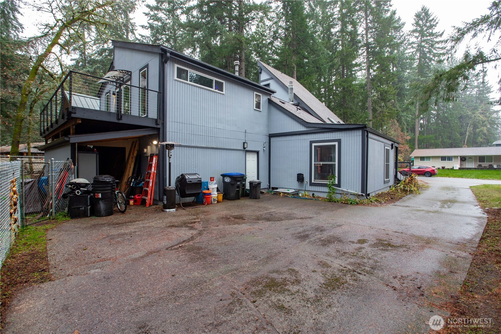Discover a one-of- a-kind Mid Century Modern style home featuring multiple large bonus spaces for ultimate flexibility. The main level offers 2 BR's, remodeled full bath, living room w/gas FP, a beautiful remodeled kitchen w/quartz counters, glass tile backsplash & new laminate floors throughout. Also main level is a large bonus room for office, game or family room & laundry/mud room w/plenty of storage. Upstairs is the loft & bonus area - one currently used as main BR (can be converted back to an apartment, complete w/kitchen & full bath), wood FP & new decking, finished attic w/stairs. 3 decks total, fenced side & back yard. New landscaping in front & storage shed in back. Community has lake access w/dock & park. Home has a 2 BR septic.