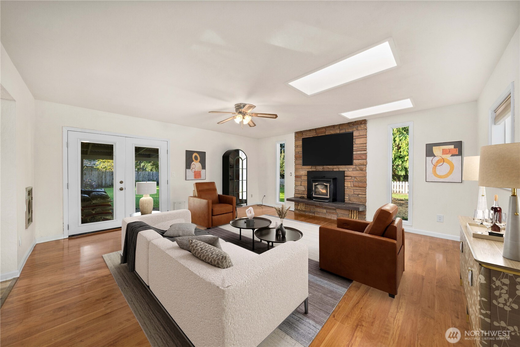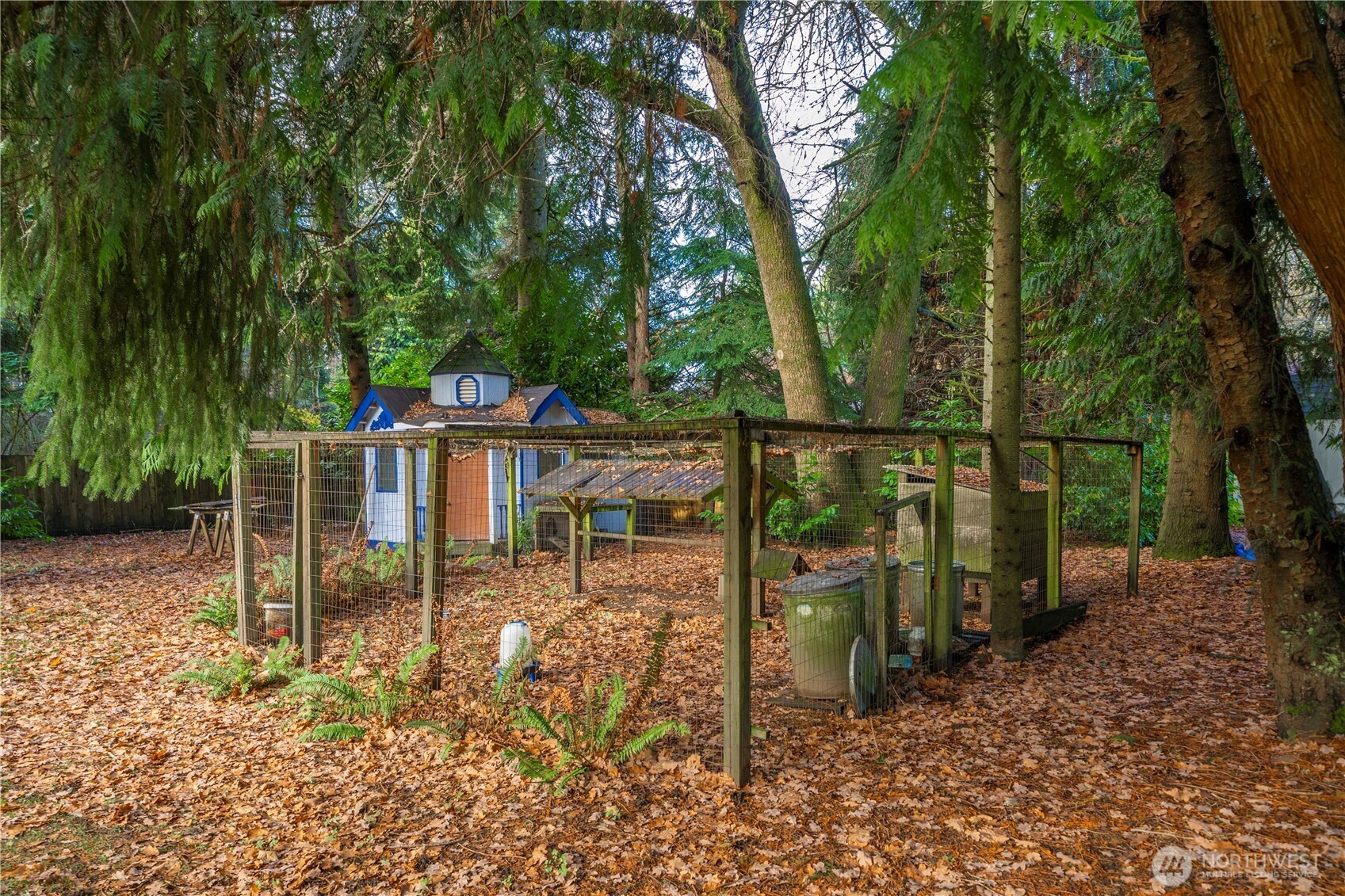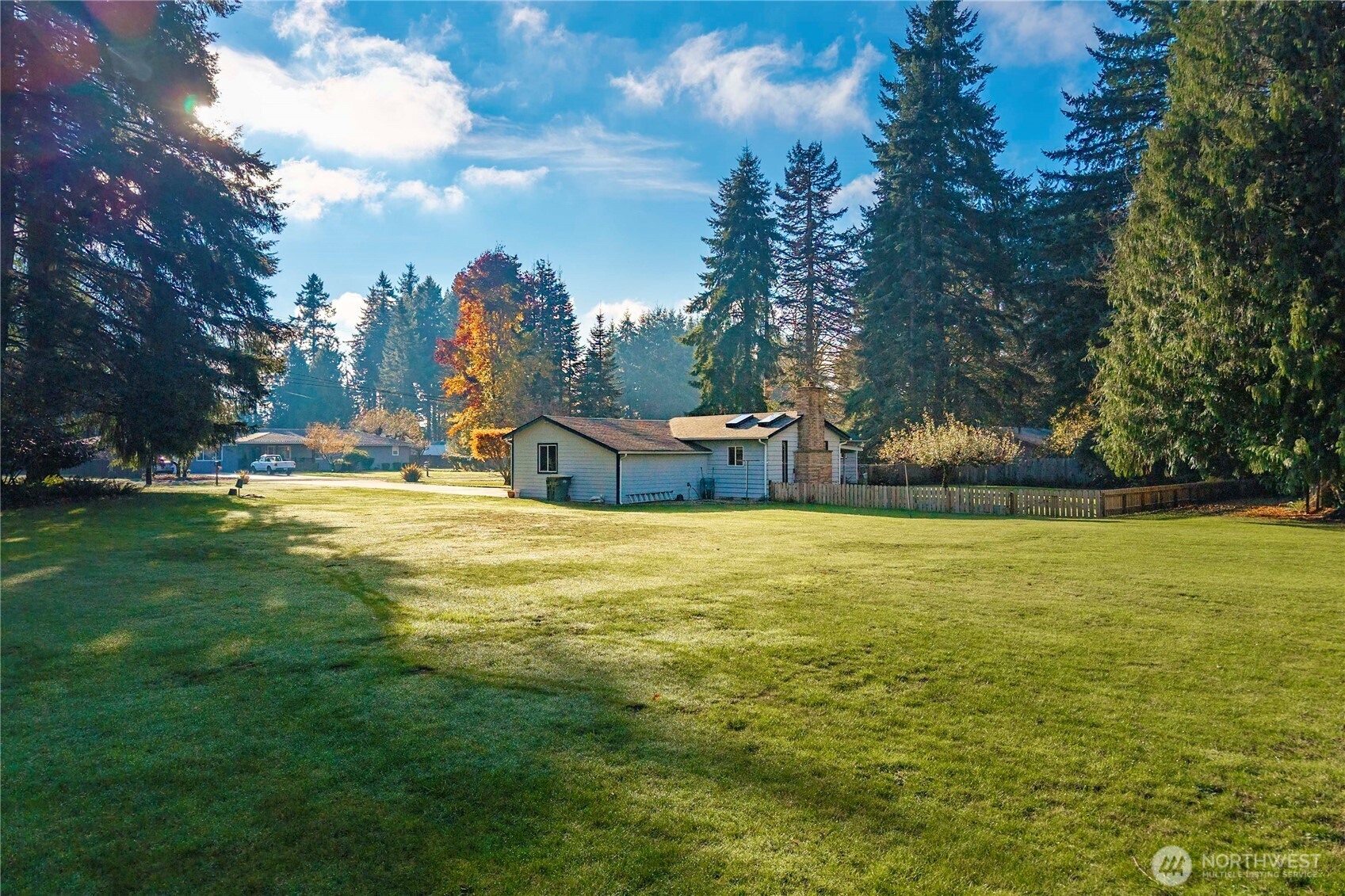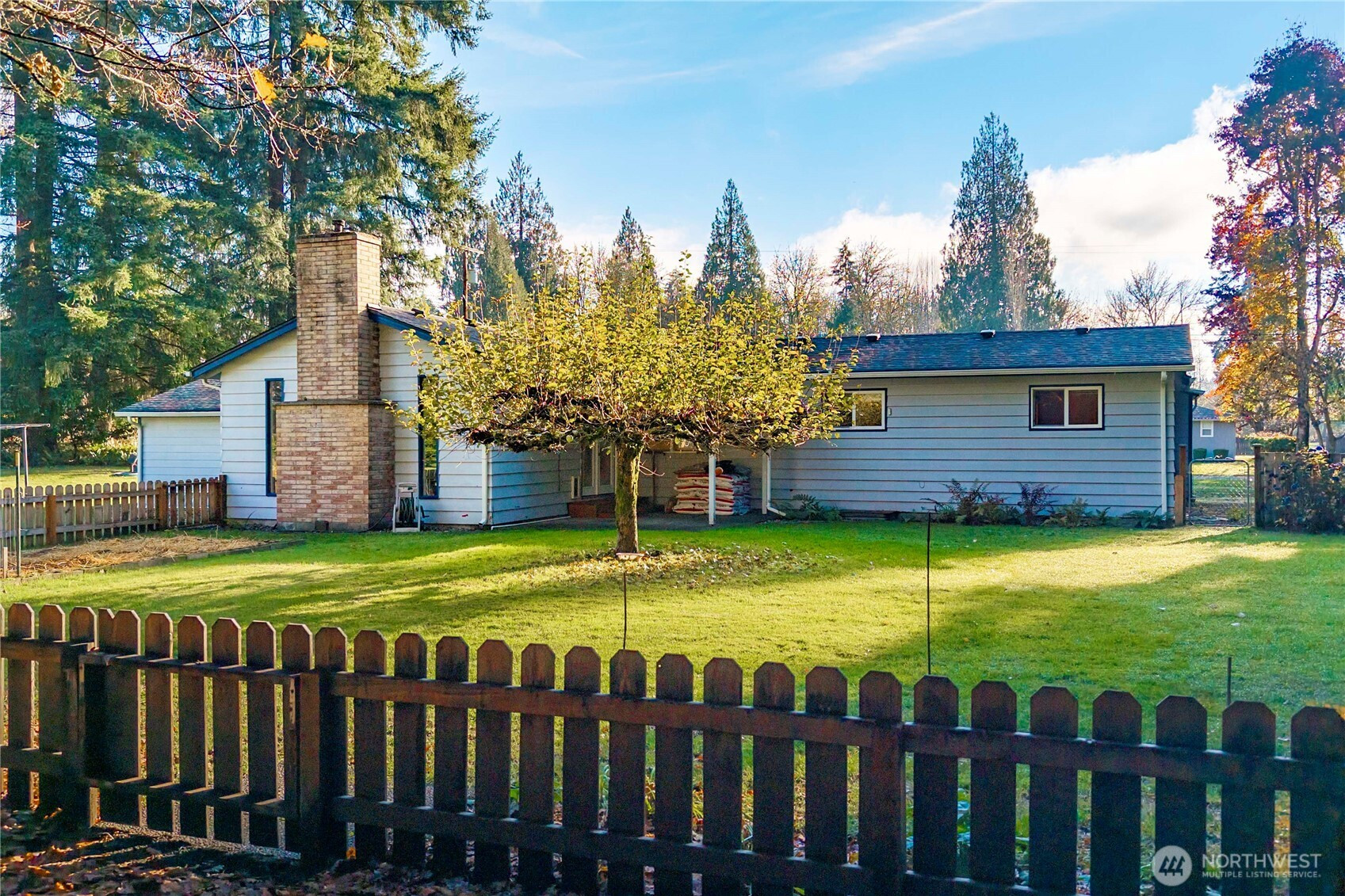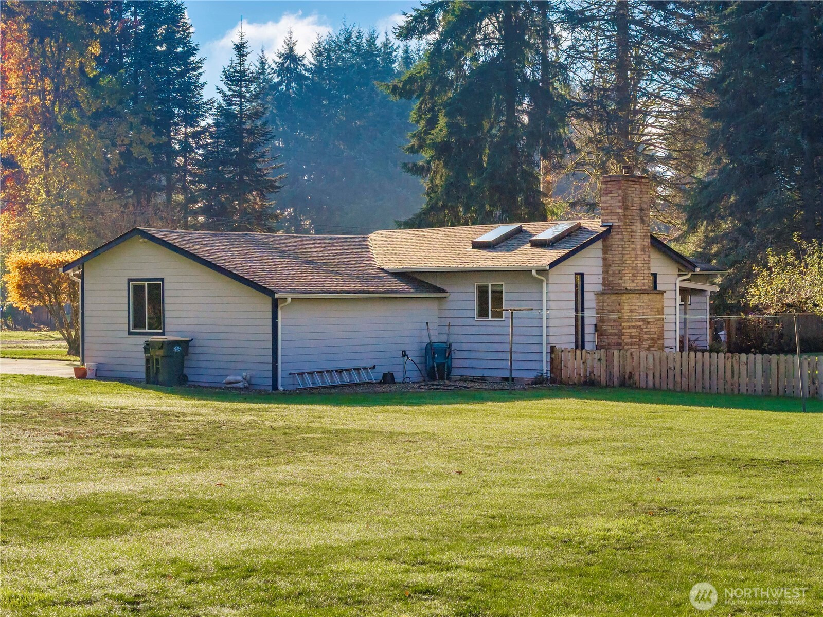 Rare single-story home on a private 1.25-acre lot offering modern rural living. Updated kitchen w/quartz counters, oak hardwoods in living areas and bedrooms, and a primary suite w/3/4 bath and walk-in closet. Brick fireplace with high-efficiency wood insert and skylights plus a cozy family room. Roof installed in 2013 and recently cleaned; newer water heater and appliances. Gardener’s dream with flower bed, large garden, berries, fruit trees, and seasonal blooms. Includes a spacious shed, chicken coop, RV parking, and a generous covered patio ideal for gatherings. Close to I-5, shopping, Costco, and conveniences, while providing a peaceful rural setting within the desirable Tumwater School District.