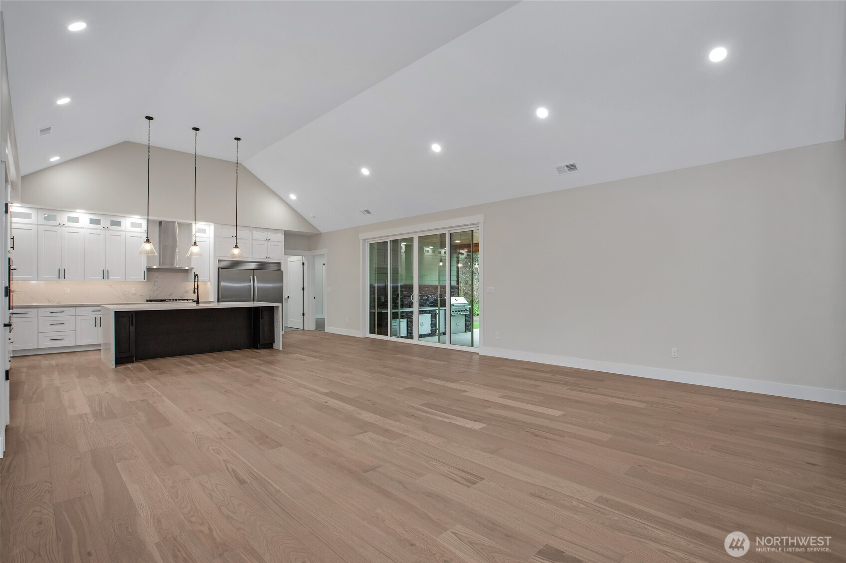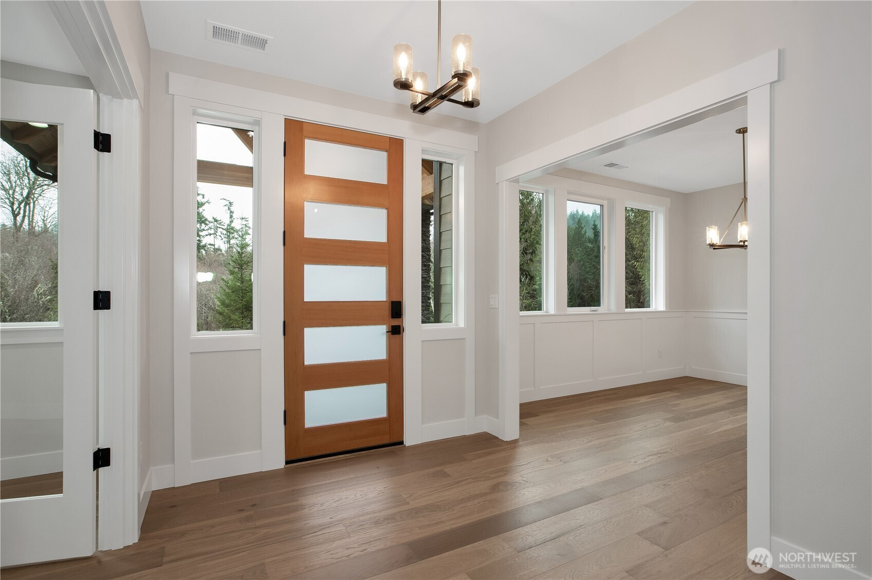 This new construction is a large rambler. The 5-acre lot is nicely treed and located in the desirable Evergreen Valley. The driveway is paved and the yard is fully landscaped. The house features a large kitchen with a walk-in pantry and refer/freezer combo. There is a large laundry and walk-in closet. The double sliding glass sliding door in the familyroom opens into a large covered porch with an outdoor kitchen. All of the bathrooms are tiled, and there is lots of hardwood flooring. This home has many custom features and is ready for you to move into now!