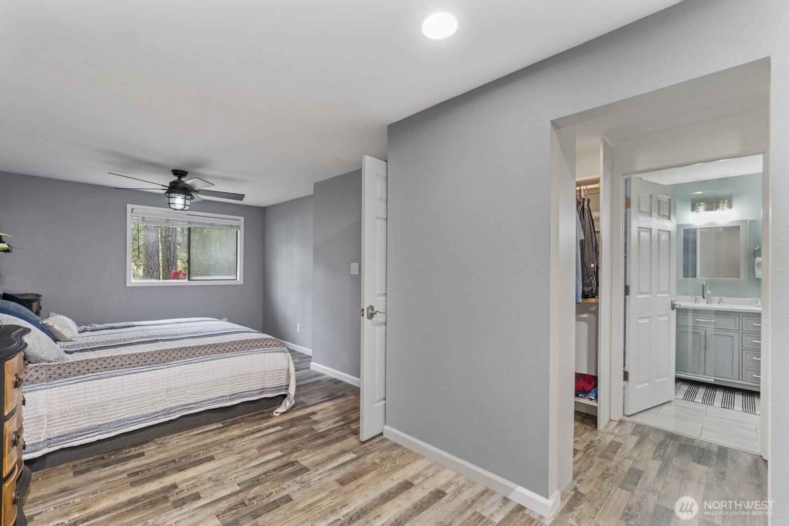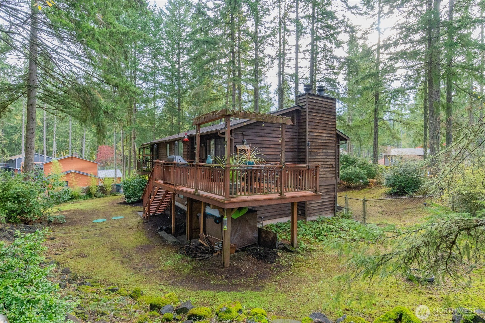Beautifully updated Nisqually Crest home on a fully fenced 0.652-acre lot, minutes to shopping, park and trails, and about 15 minutes to JBLM. Features include engineered wood floors, an open-concept renovated kitchen, a spacious living room with fireplace, and a dining area that opens to a large deck overlooking the backyard. The expanded primary suite now includes dual walk-in closets and a spa-style bath with double vanity and a custom tiled shower with a bench and Bluetooth fan/speaker. Downstairs offers a large bedroom/bonus room with a second fireplace and half bath. Outside, enjoy a newly cleared open area with a walk-in fire pit, and an above-ground perimeter irrigation/sprinklers.