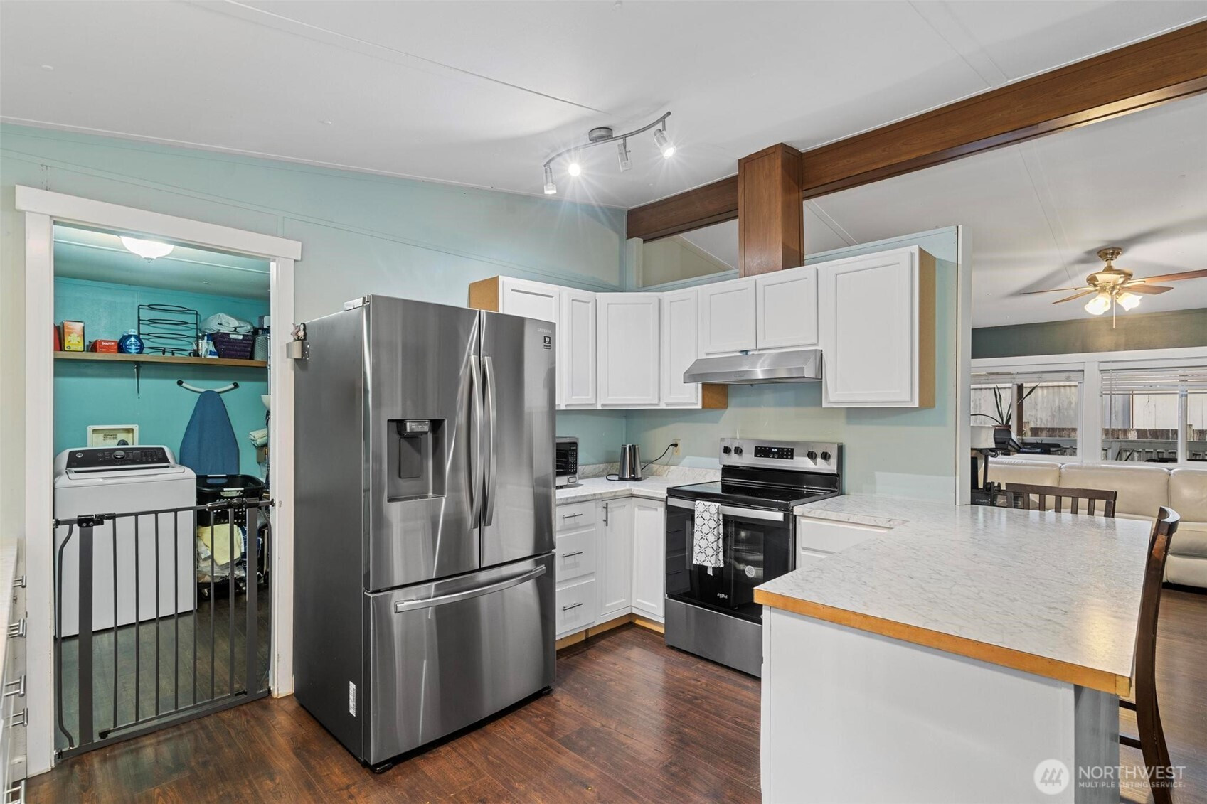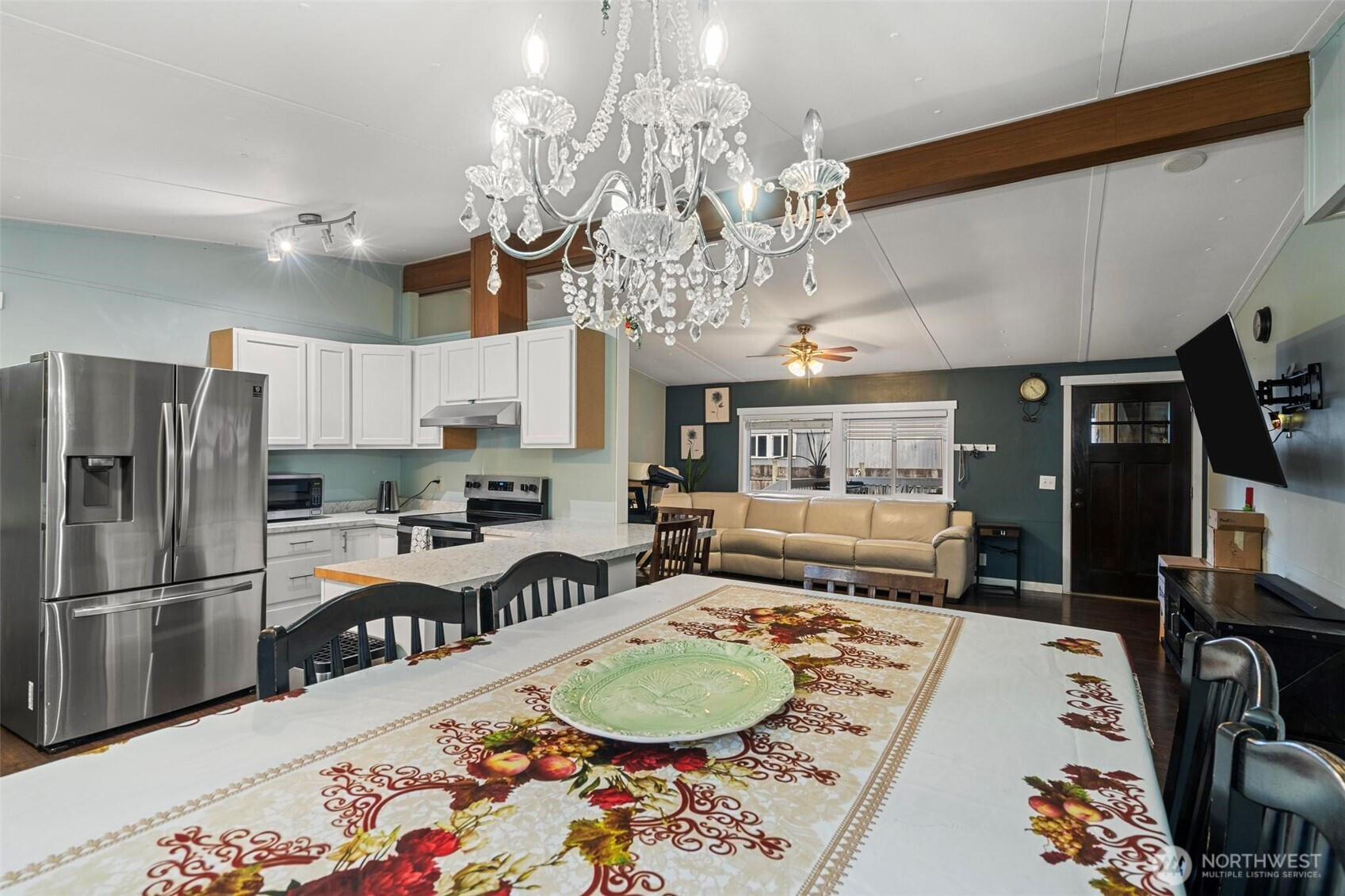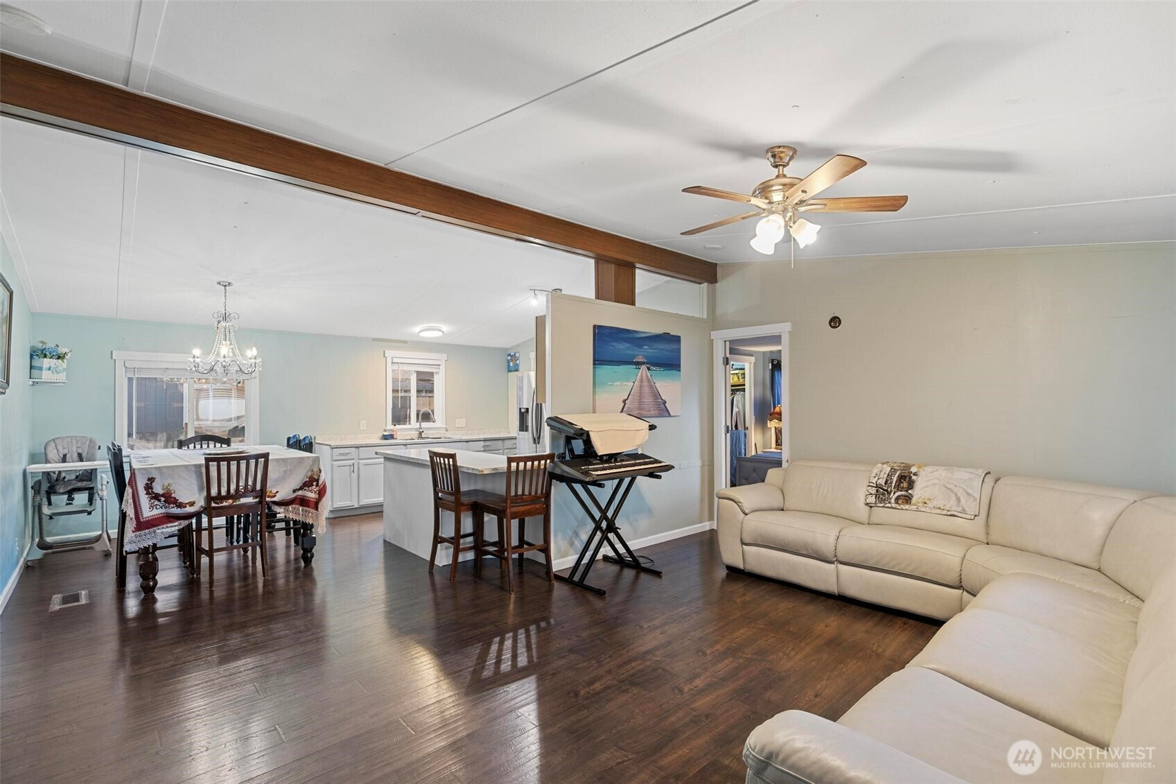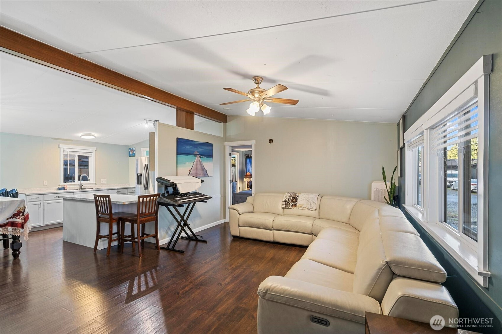 A beautifully updated 1,232 sq ft home in the desirable all-ages Melody Pines Estates community. This move-in-ready property offering modern comfort, style in an excellent Olympia location. An open layout featuring a vaulted ceiling that spans the kitchen, dining, & living room, creating a bright & spacious atmosphere. Nearly every surface has been improved, including new waterproof vinyl plank flooring, fresh interior paint, & new double-pane vinyl windows throughout. The kitchen boasts brand-new cabinets, countertops perfect for meal prep and entertaining. Both bathrooms have been beautifully remodeled with new tile, updated flooring, and stylish vanities. Generously sized bedrooms with large closet