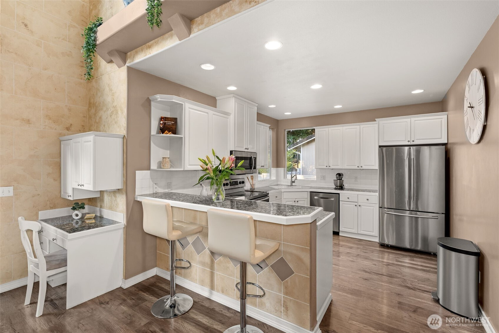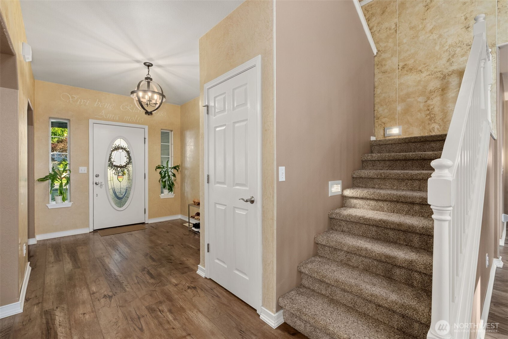 Beautiful & move-in ready, this spacious 4-bed, 2.5-bath home in desirable Meridian Campus offers comfort & curb appeal. Featuring 2,510 SF on an oversized lot, the home boasts custom touches throughout, incl. venetian plaster in main foyer. Main level offers sophisticated accent walls, office/den, 1/2 bath, utility room & bright great room w/vaulted ceiling, fireplace, elegant DR, light-filled kitchen. Upstairs, primary suite w/dual closets, spa-like bath, add’l 3 beds, full bath & bonus space. Outdoors, find oversized, fully-fenced backyard w/garden & deck. 2 car garage w/EV charging. Newer A/C, water heater, in-ground sprinkler. Close to trails, schools, parks & golf w/ quick access to I-5, JBLM, Olympia – this Lacey gem shines.