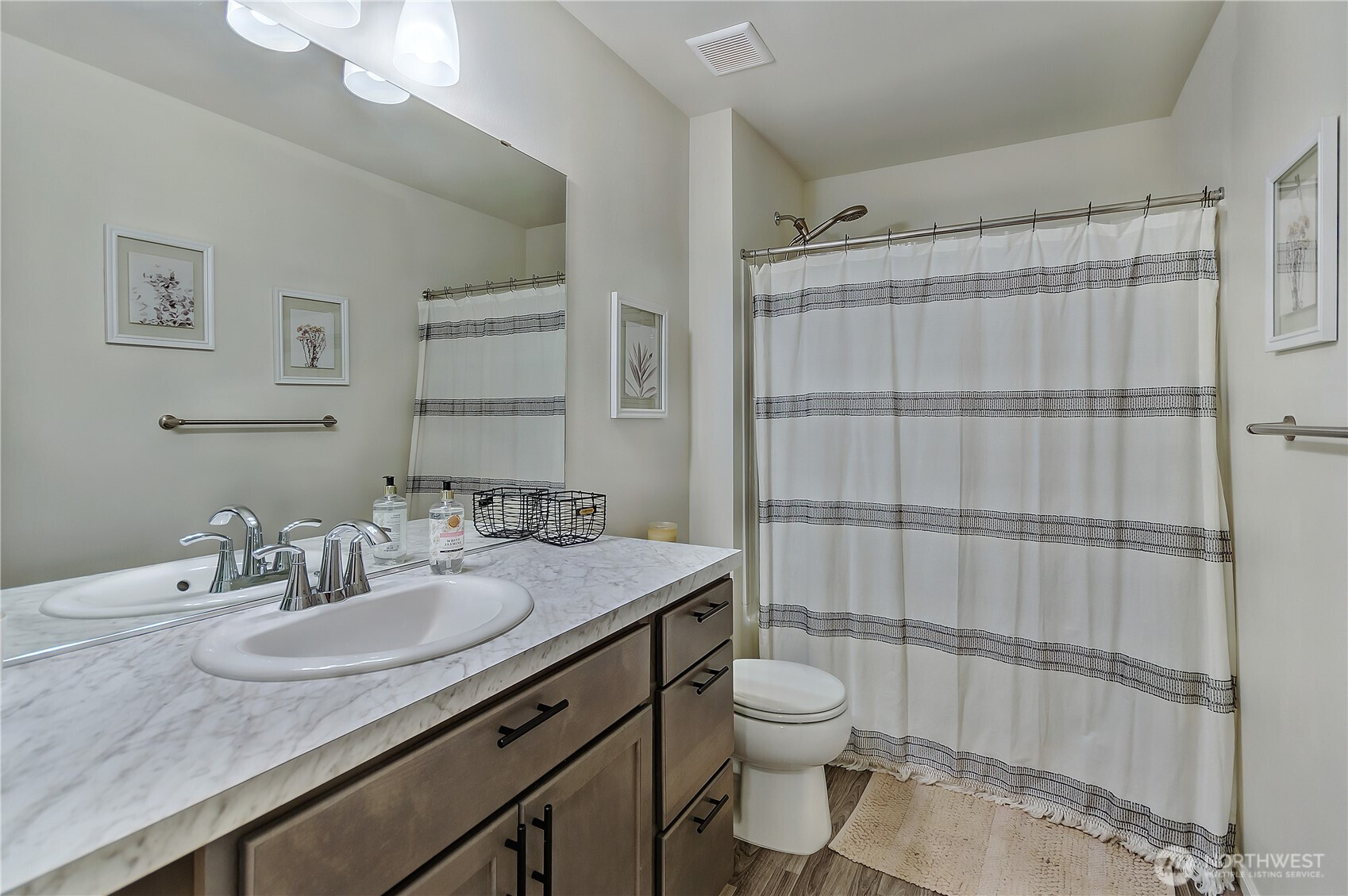 (503) 893-8874Corner lot in The Preserve! This unique opportunity 3 bed, 2.5 bath home backs to trees & trails, providing rare privacy & space. Open-concept main floor offers classic charm & clean, modern appeal w/ bright solid counters, stainless appliances, subway tile backsplash, gas fireplace & elegant wall detailing in entry. Upstairs: all bedrooms, laundry, a bonus room (potential 4th bed), & a spacious primary suite w/ walk-in closet & double sinks in ensuite bath. Larger-feeling yard, fully fenced w/ tastefully landscaped fire pit, covered patio & shed. Tankless water heater, Central A/C, & 2-car garage w/ storage complete the package. Minutes from Costco, dining, entertainment, dwntwn Olympia. Standout home in a charming community!