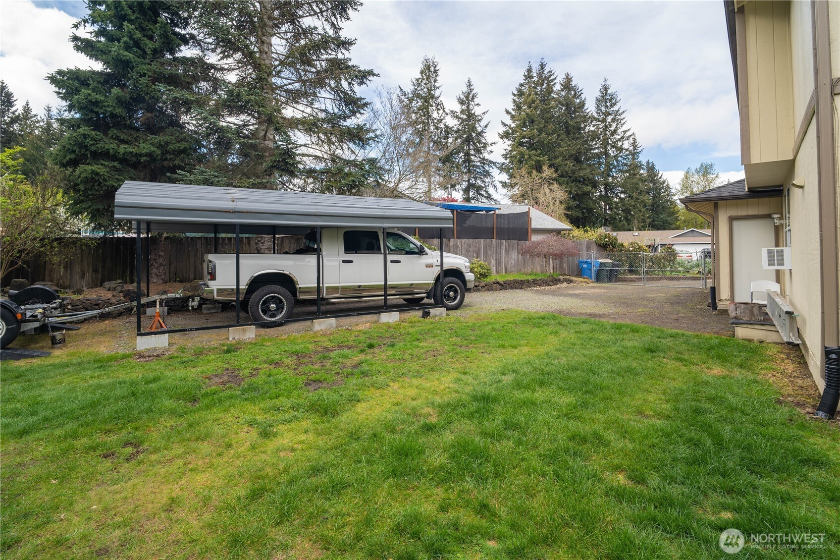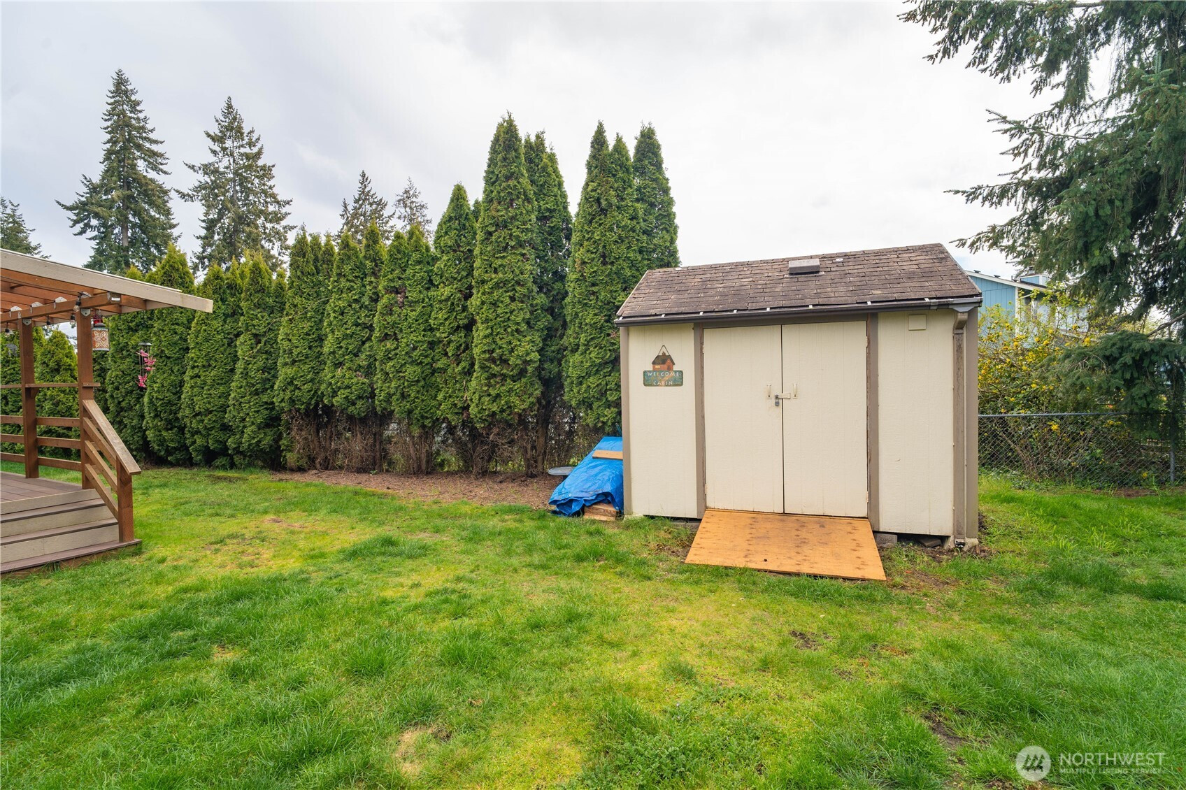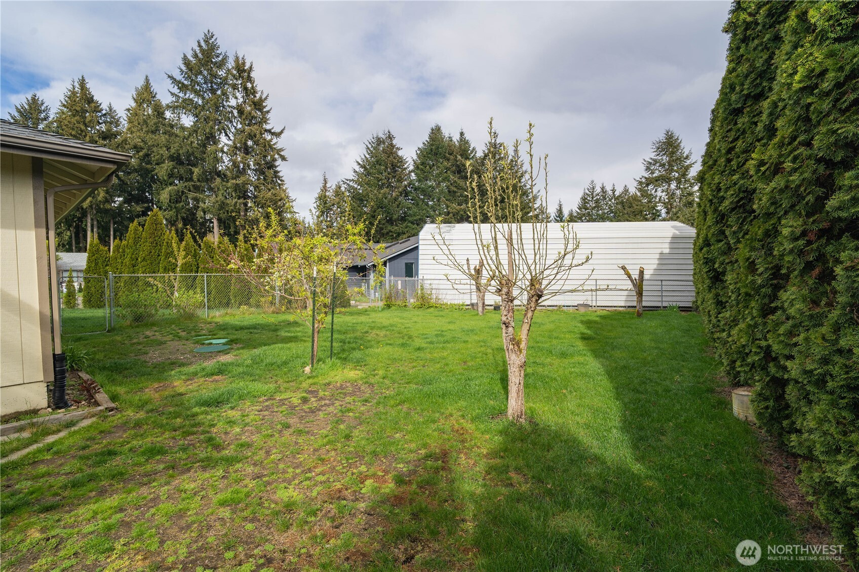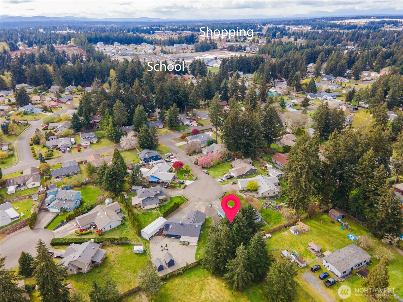 Tucked away on a quiet cul-de-sac in desirable Meridian Acres, this well-maintained 2-story home offers comfort, space, and convenience. Step inside to vaulted ceilings and a warm, inviting living room with a wood-burning fireplace. The open-concept kitchen features granite countertops, stainless steel appliances, and great flow for everyday living and entertaining. Updates include rich laminate flooring throughout the main level, marble tile in the kitchen, and new carpet upstairs in the bedrooms and stairs. Major systems have been improved with a newer furnace, roof, and hot water tank. This 3-bedroom, 2.5-bath home sits on a spacious .25-acre lot with a fully fenced yard, fruit and berry trees, and a detached storage building. Enjoy outdoor living on the newer covered 20x14 deck. Additional features include covered RV parking behind a gated entry, ample parking, and generator wiring. Prime location just minutes to I-5, JBLM, and the Regional Athletic Complex with year-round sports fields. Don’t miss this opportunity!
