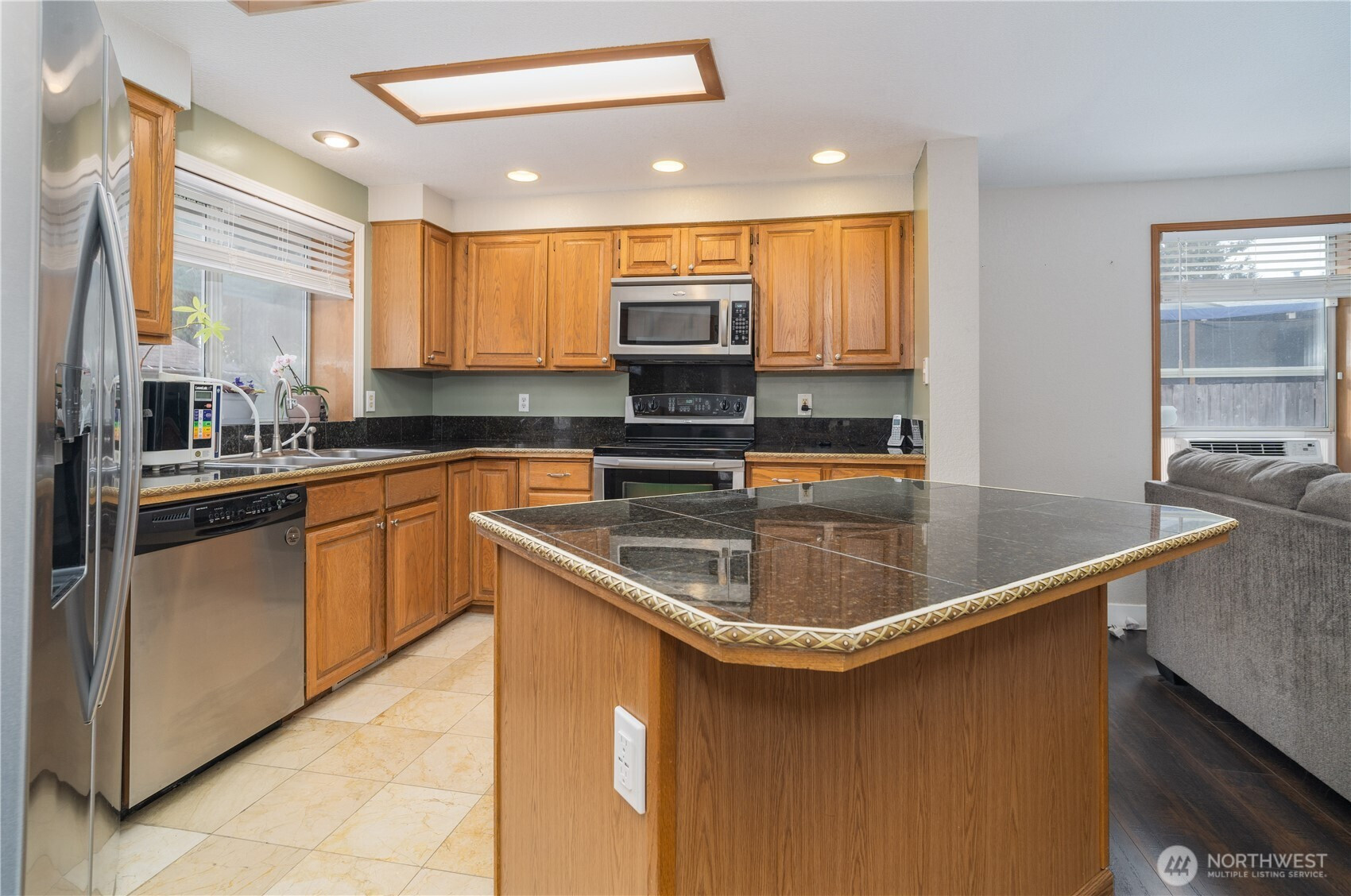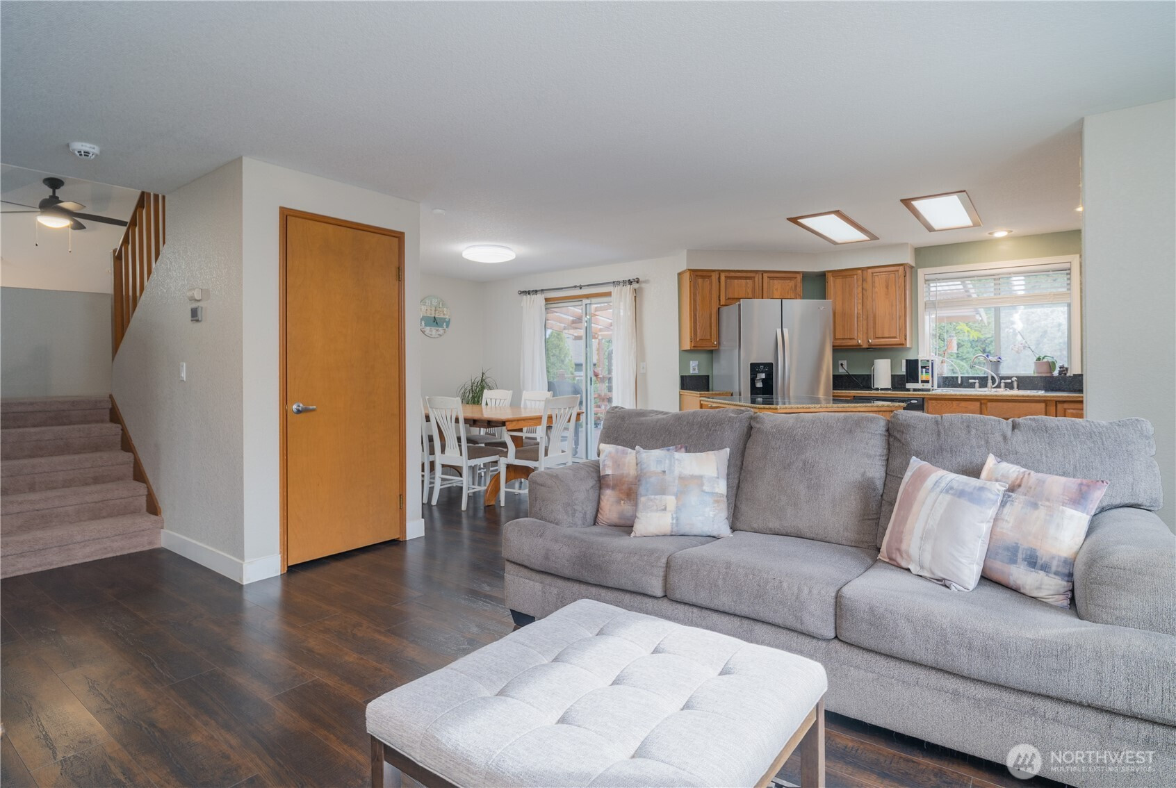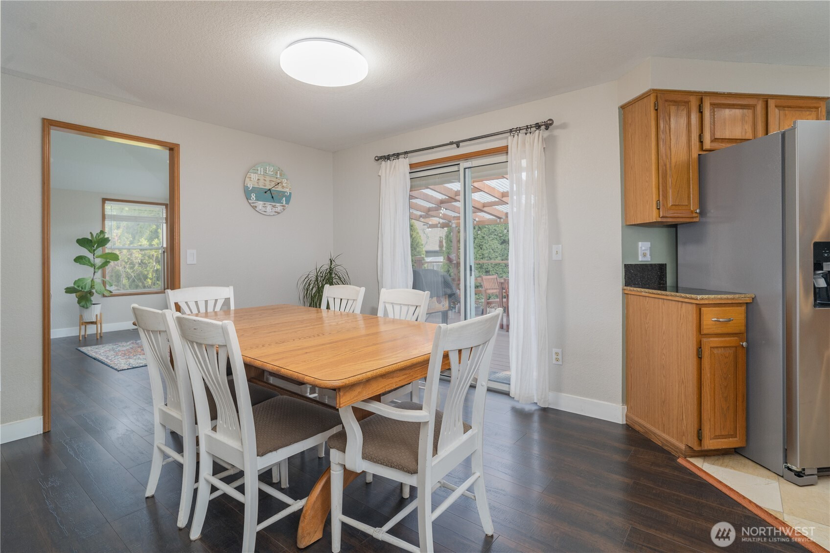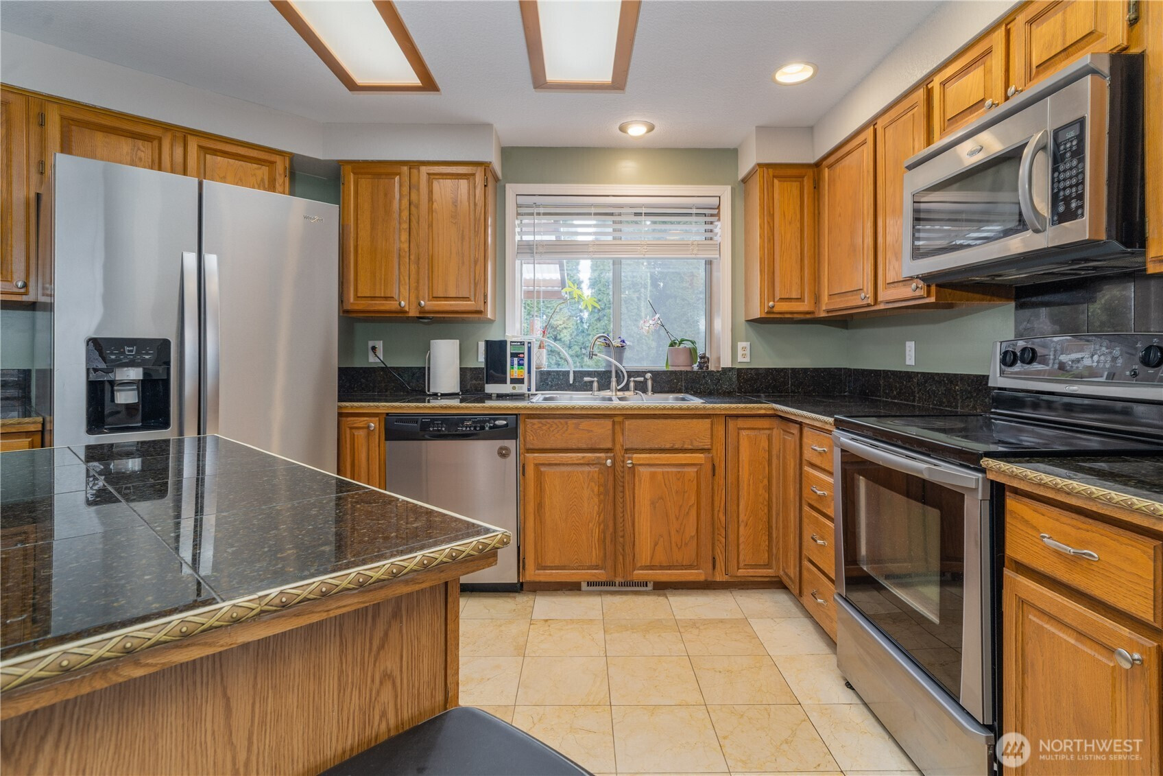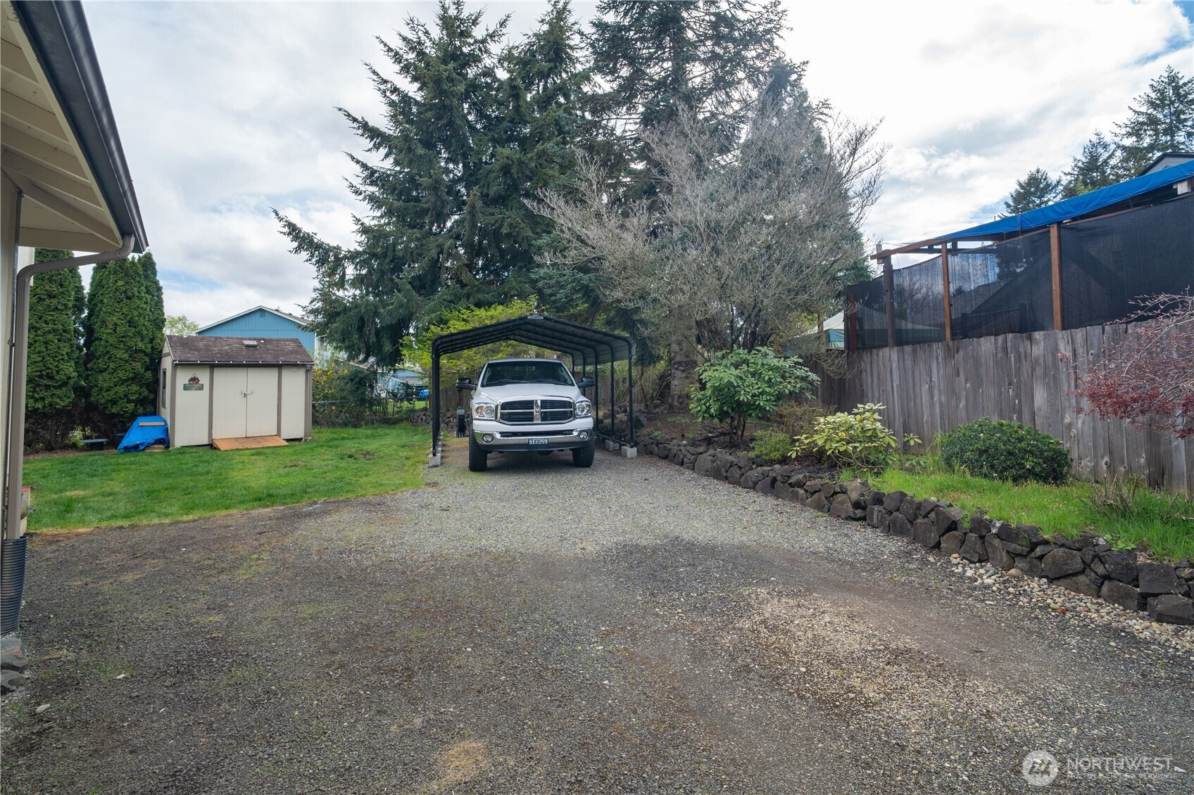 Tucked away on a quiet cul-de-sac in desirable Meridian Acres, this well-maintained 2-story home offers comfort, space, and convenience. Step inside to vaulted ceilings and a warm, inviting living room with a wood-burning fireplace. The open-concept kitchen features granite countertops, stainless steel appliances, and great flow for everyday living and entertaining. Updates include rich laminate flooring throughout the main level, marble tile in the kitchen, and new carpet upstairs in the bedrooms and stairs. Major systems have been improved with a newer furnace, roof, and hot water tank. This 3-bedroom, 2.5-bath home sits on a spacious .25-acre lot with a fully fenced yard, fruit and berry trees, and a detached storage building. Enjoy outdoor living on the newer covered 20x14 deck. Additional features include covered RV parking behind a gated entry, ample parking, and generator wiring. Prime location just minutes to I-5, JBLM, and the Regional Athletic Complex with year-round sports fields. Don’t miss this opportunity!