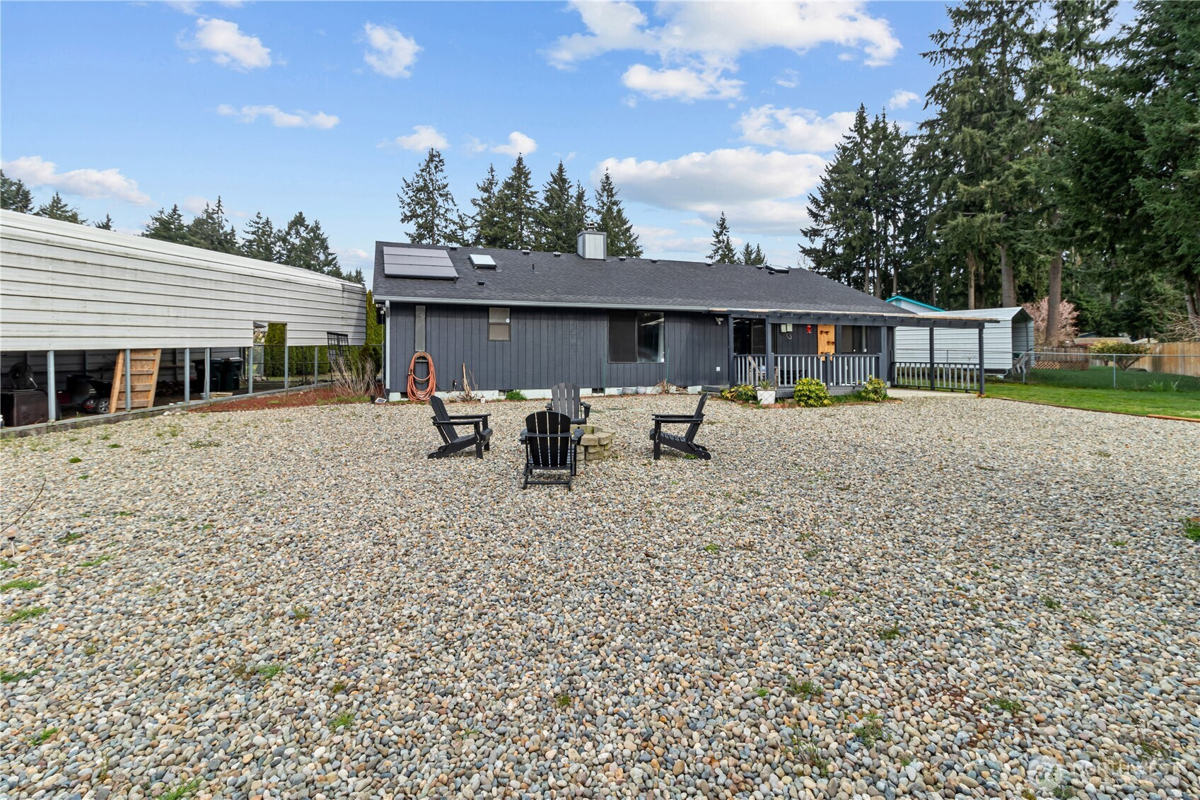 Located on a quiet cul-de-sac in a well established neighborhood of Meridian Acres, this desireable 1660 sq ft, 3 bed/ 2 bath home has a new primary bathroom remodel, new water heater, upgraded electric panel and light fixtures, cozy wood burning stove, vaulted ceilings, bathroom skylights with newly painted interior and exterior, 4 year new 30 year composition roof and paid-in-full solar power system providing 100% utility power offset. RV parking carport with lights and power, fully fenced backyard, mature fruit trees and 2 ramped outbuildings, one with metal trolly door.1 mile to I-5, medical, recreational, and 5 minutes to shopping centers.