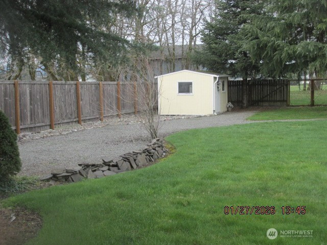 Great home that has 2156 sq ft, 3 bedrooms, and 2 baths on .62 acres. Back yard is fenced with installed sprinkler system. Green belt is visible through wire fence. RV parking behind the back yard fence. Storage building in the back yard has 240 volt wiring. Home was painted inside, and out in 2021. Home has some new flooring, and new appliances such as dishwasher, and toilets. A new furnace was installed in 2023, and the AC was rebuilt in 2022. Home has a covered back patio with a view of the greenbelt. Home has a propane fireplace, propane range, and a propane water heater. Backup energy for the heat pump is propane.