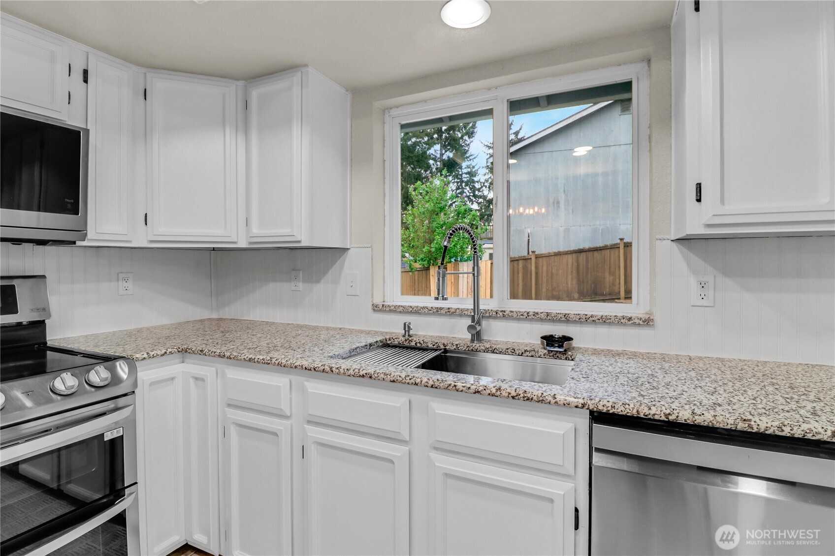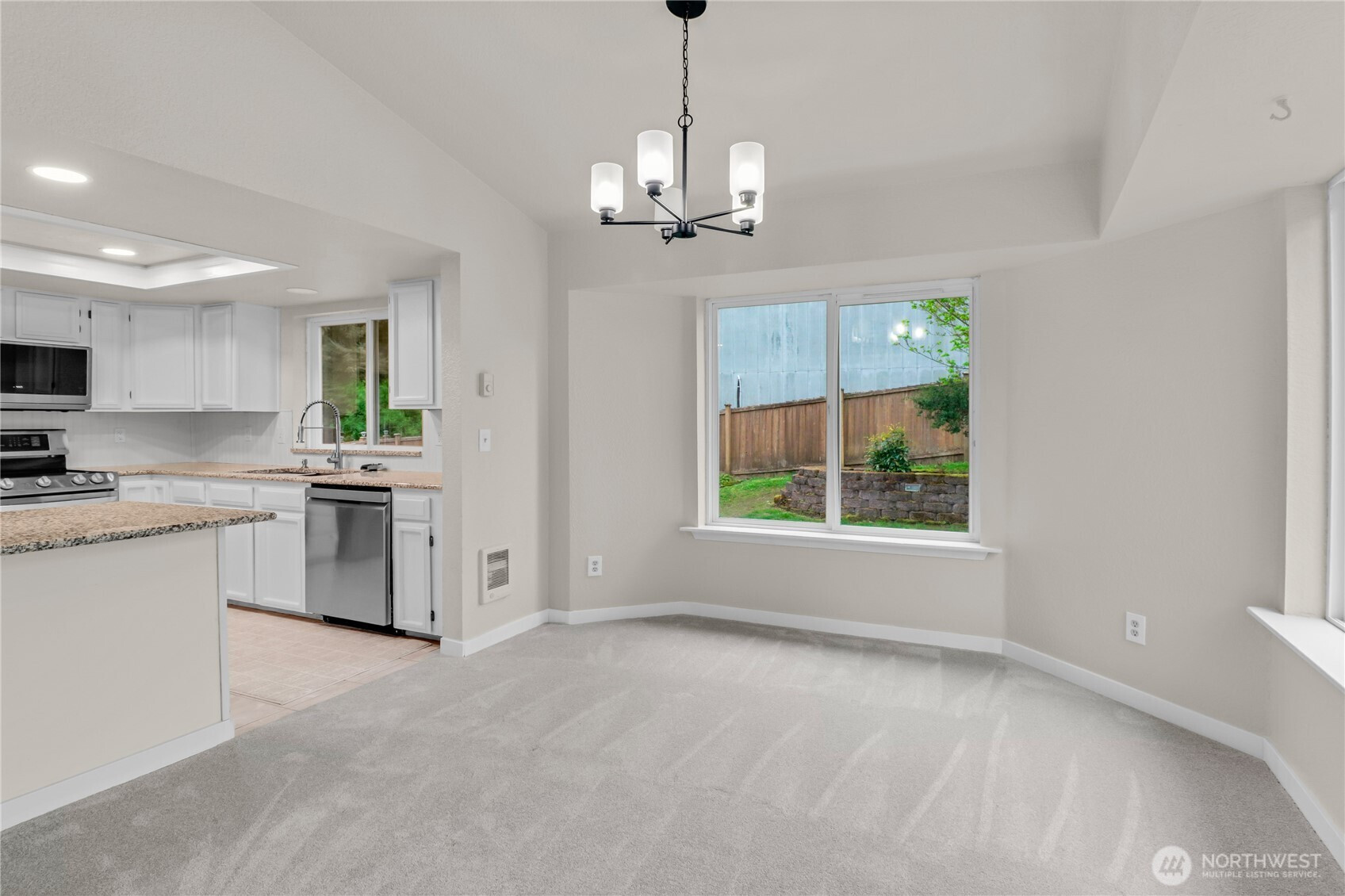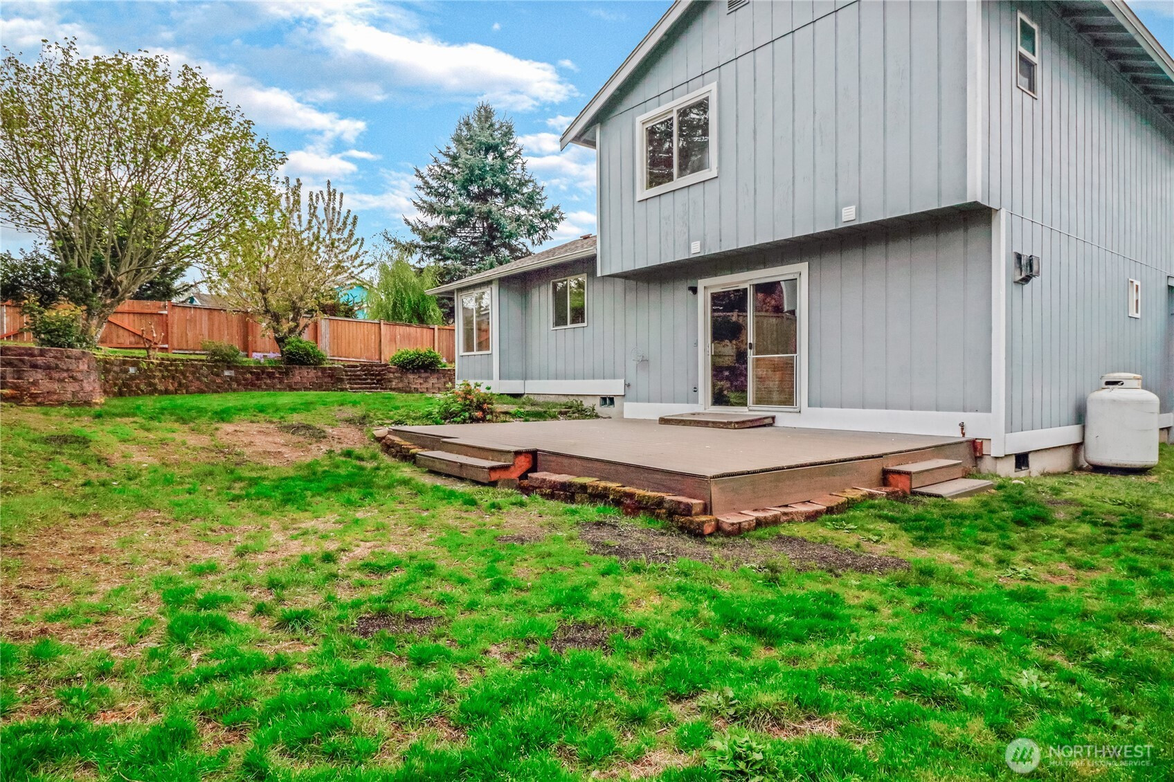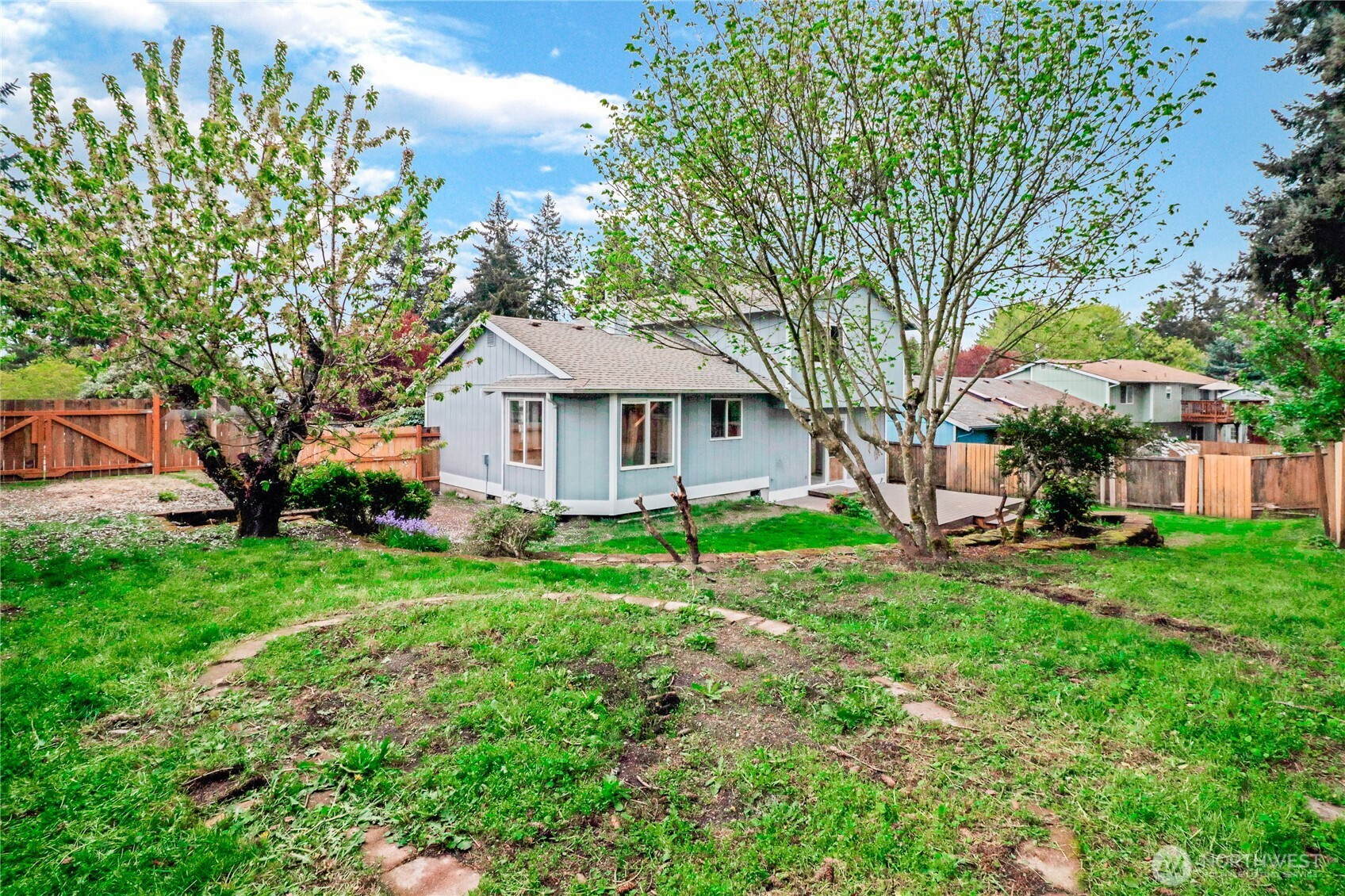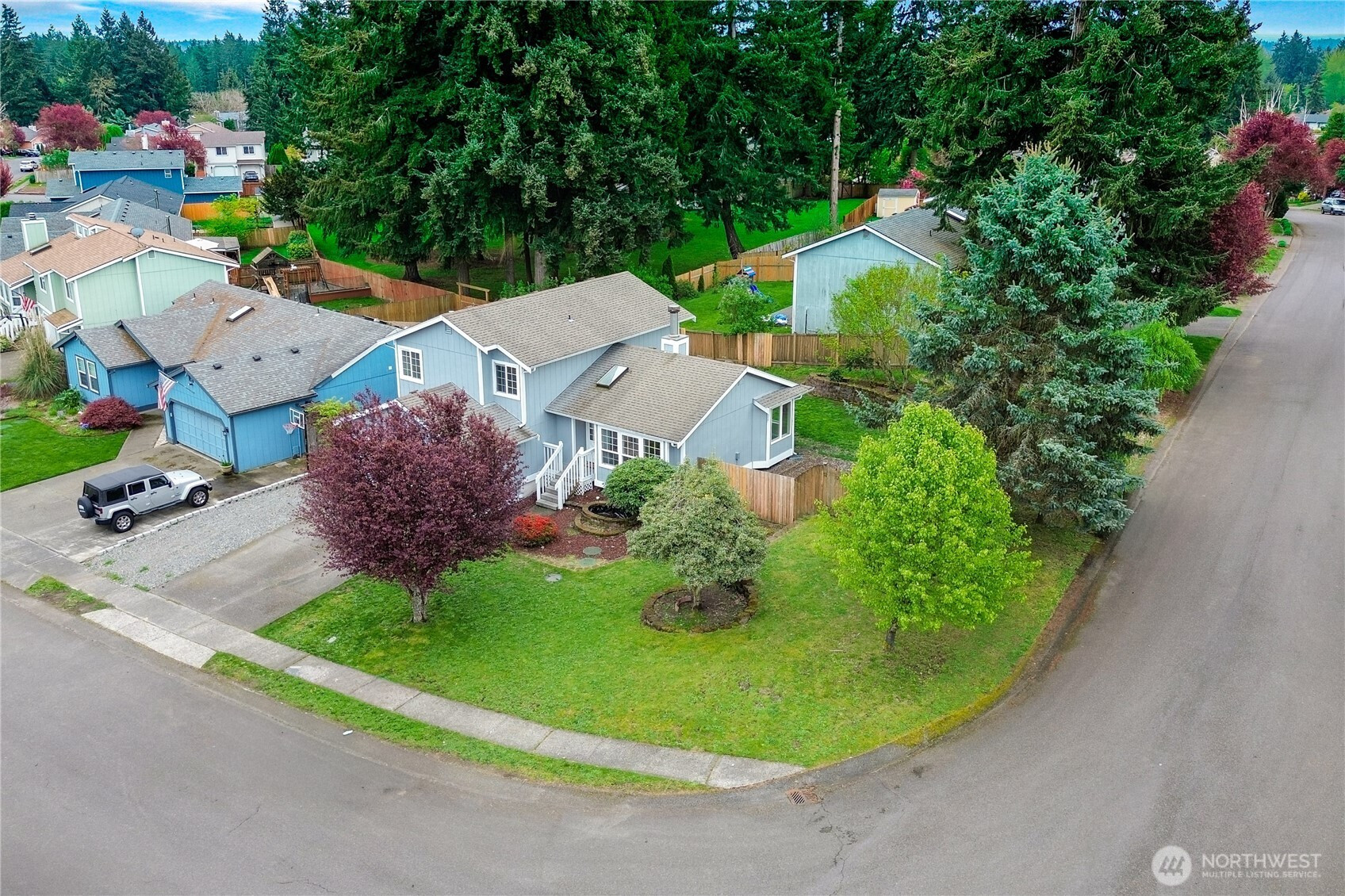 Assumable 4.5% VA loan! Welcome to this beautifully updated tri-level 3 bedroom, 2 1/2 bath home situated on a spacious corner lot in the highly desirable The Ridge Neighborhood. This move in ready property features fresh interior and exterior paint, freshly painted kitchen cabinets, 3 updated bathrooms, new light fixtures, and brand new carpet throughout. Enter into a light and bright vaulted main living area with skylights, that opens up to the kitchen and dining area. Upstairs you will find 3 bedrooms with 2 full bathrooms, and downstairs is a large living room that opens up onto to the deck and backyard space. This lot has space for hard to find RV parking! Conveniently located close to I-5, JBLM, shopping, dining, schools and parks, this home offers both comfort and convenience! Book your showing today!