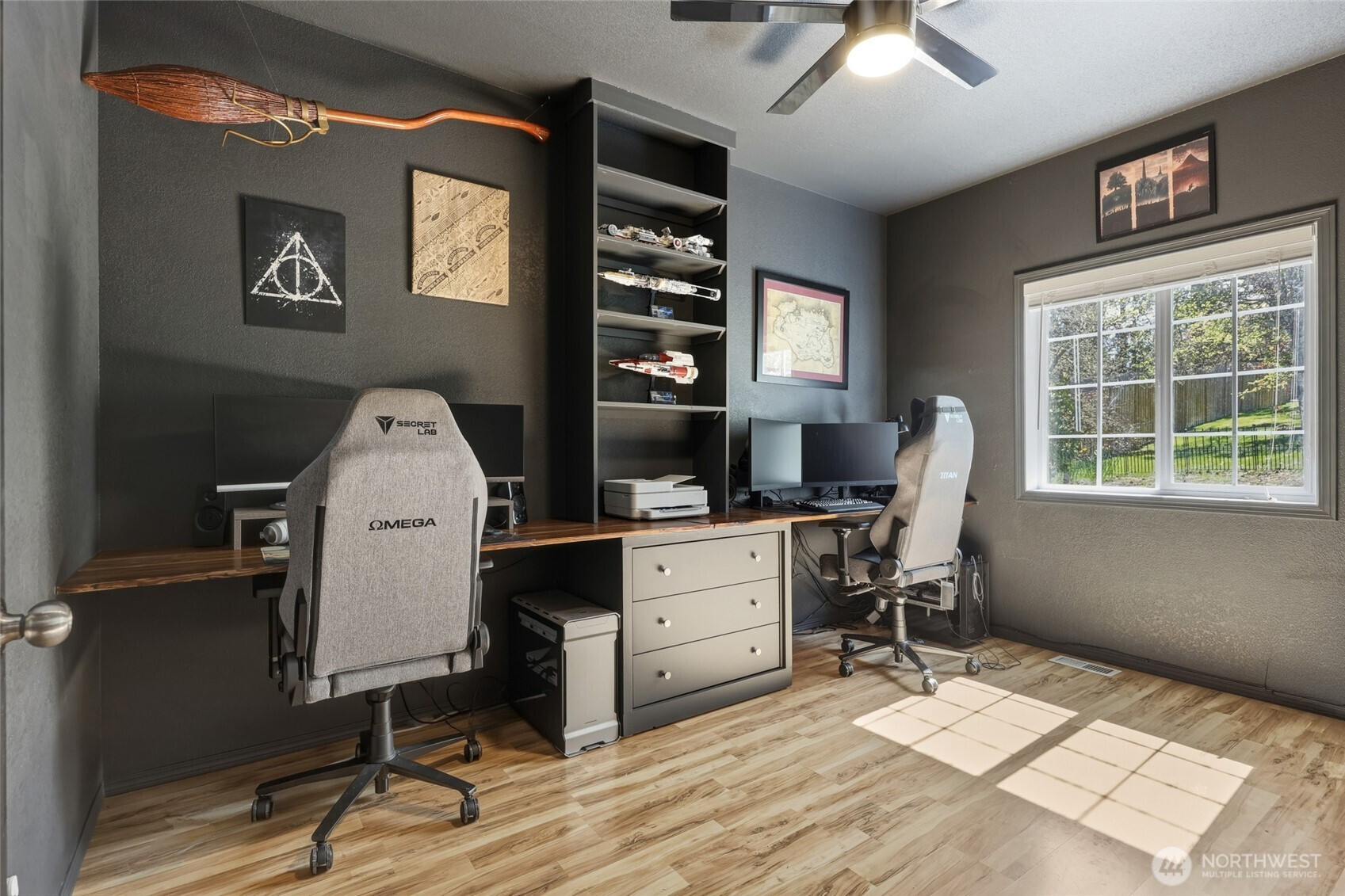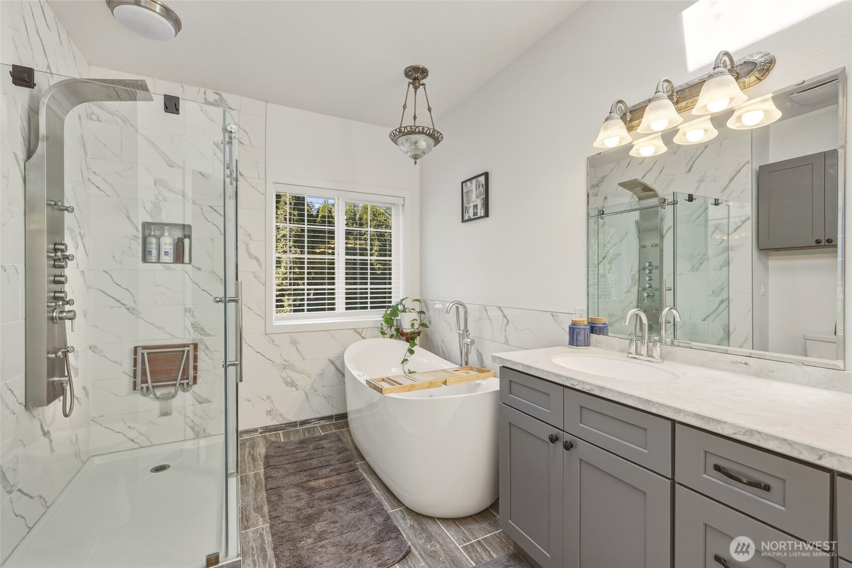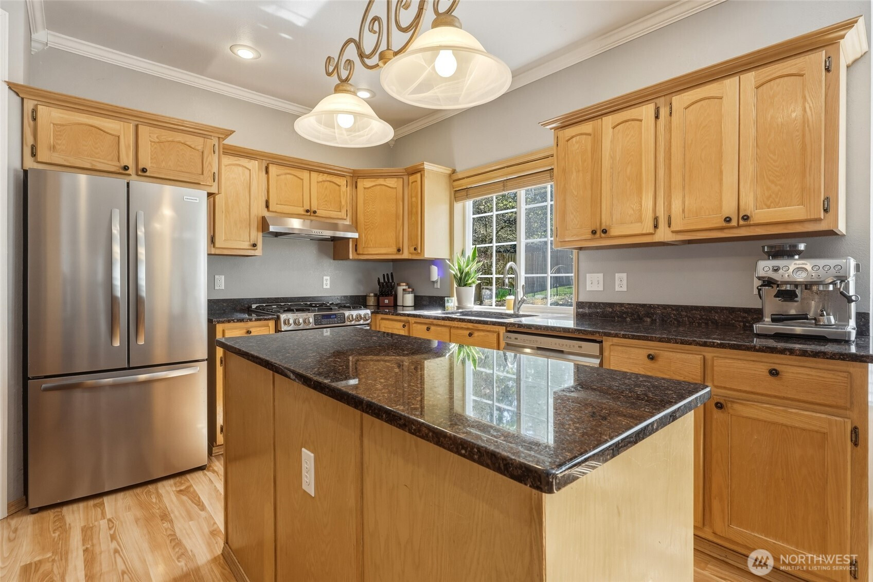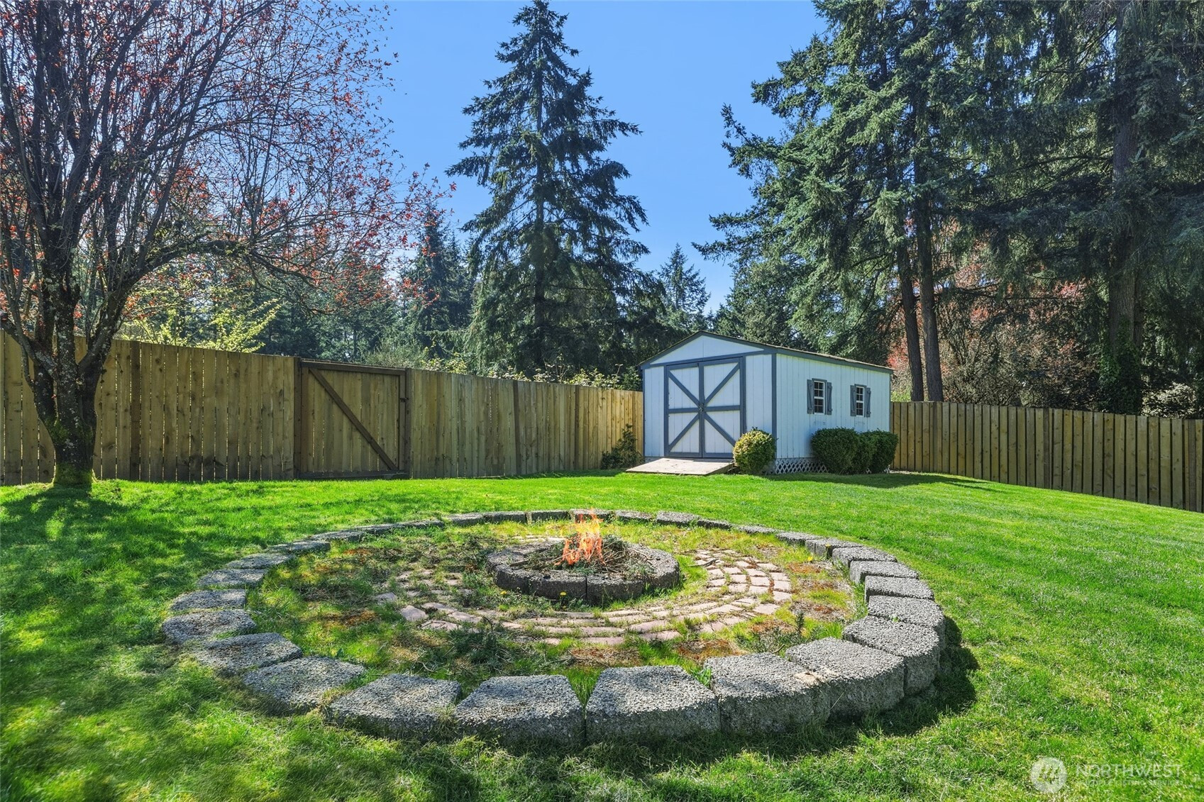 Welcome to 9603 Amanda Drive NE in Lacey, nestled in Delta View Estates and ideally located near JBLM, local parks, schools, nearby amenities and dog parks. This freshly painted exterior 4 bedroom, 2.5 bath home offers 2,033 sq ft of comfortable living space on a just shy of 1/3 acre yard, blending functionality with inviting indoor and outdoor living. Step inside to a bright and functional layout featuring a formal living room, formal dining room, and a dedicated office, perfect for today’s flexible lifestyle. The kitchen with eating space offers granite countertops, a gas range with double oven, abundant cabinet and counter space, and an island, opening to a spacious family room with a warm gas fireplace. French doors open to the covered back deck, creating a seamless indoor outdoor connection. The primary suite is designed as a true retreat with an updated en suite bathroom featuring dual sinks, a jetted soaking tub, a frameless glass walk in shower with a panel system, and a walk in closet. Skylights, central air, and a tankless water heater add comfort and efficiency. Outside, enjoy a fully fenced backyard built for relaxing and entertaining with a covered deck, lower patio, fire pit, storage shed, RV parking, and an in ground sprinkler system. Comfort, functionality, and location come together in this well cared for home with easy I-5 access.