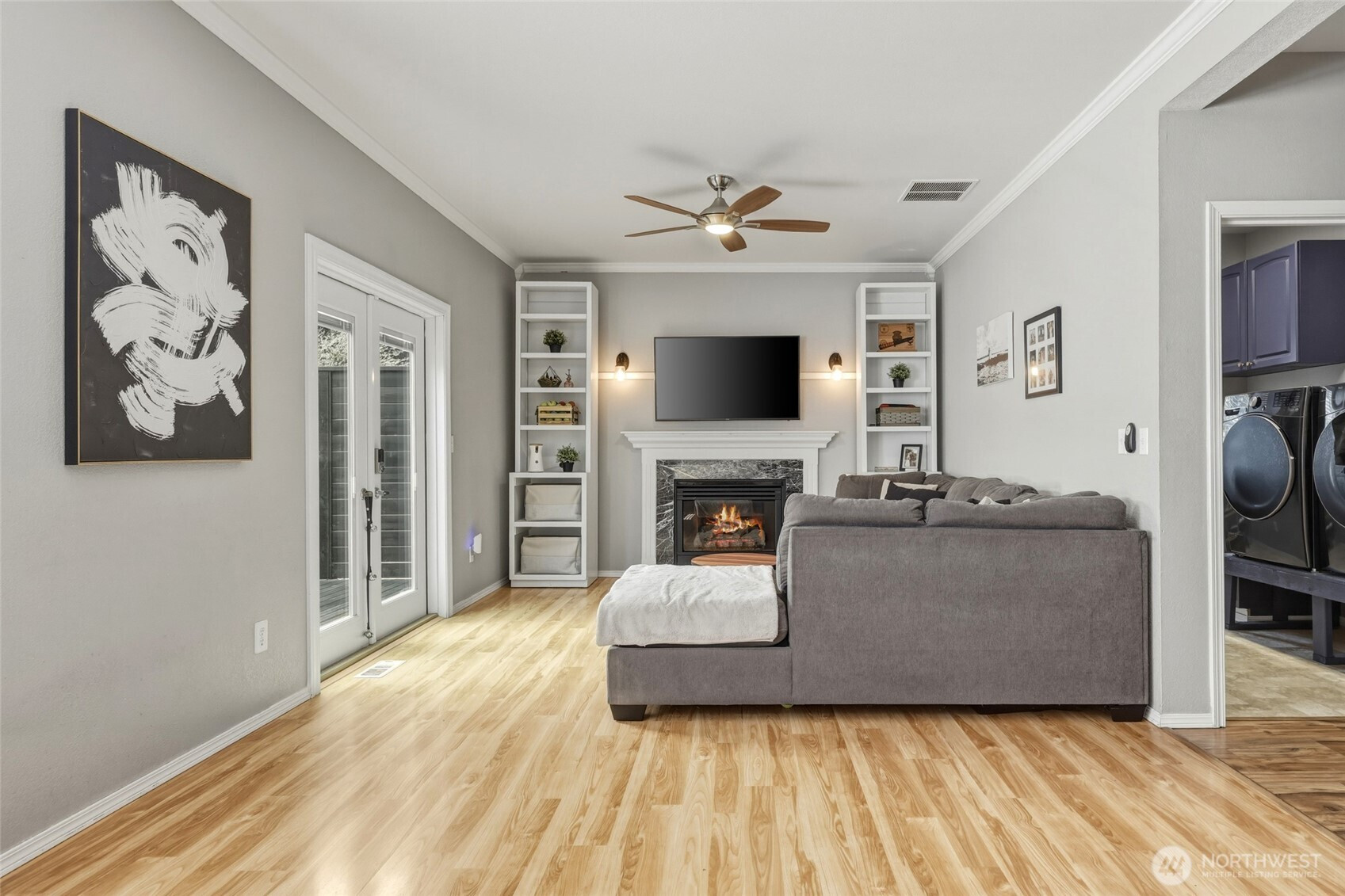 Bath Off Primary, Ceiling Fan(s), Dbl Pane/Storm Window, Dining Room, Fireplace, French Doors, Secur