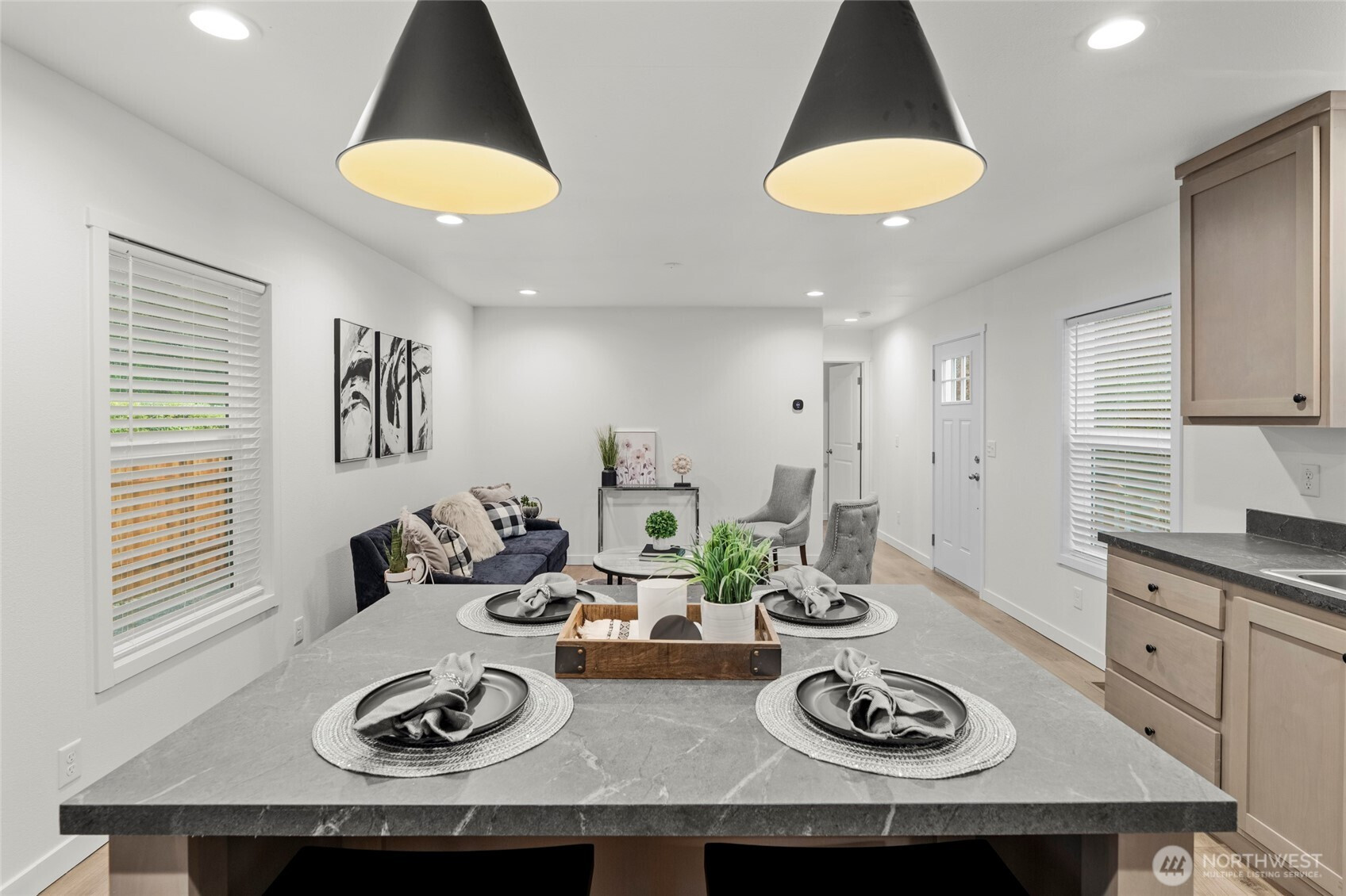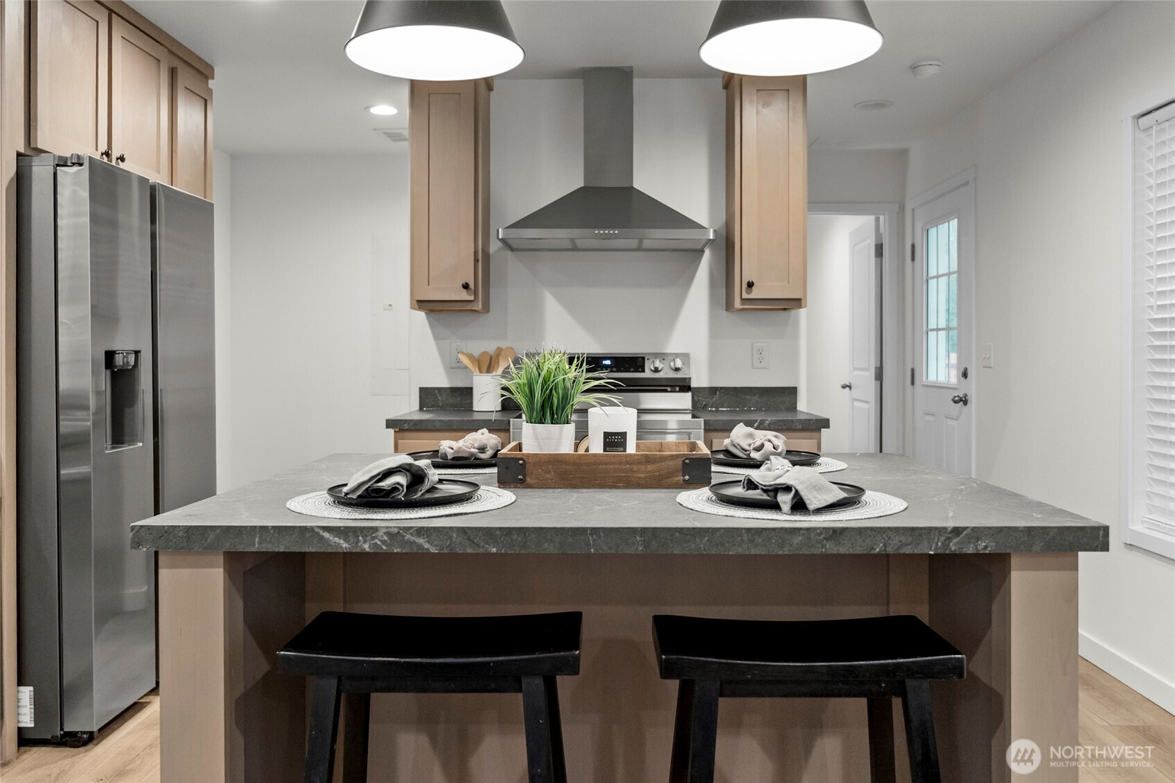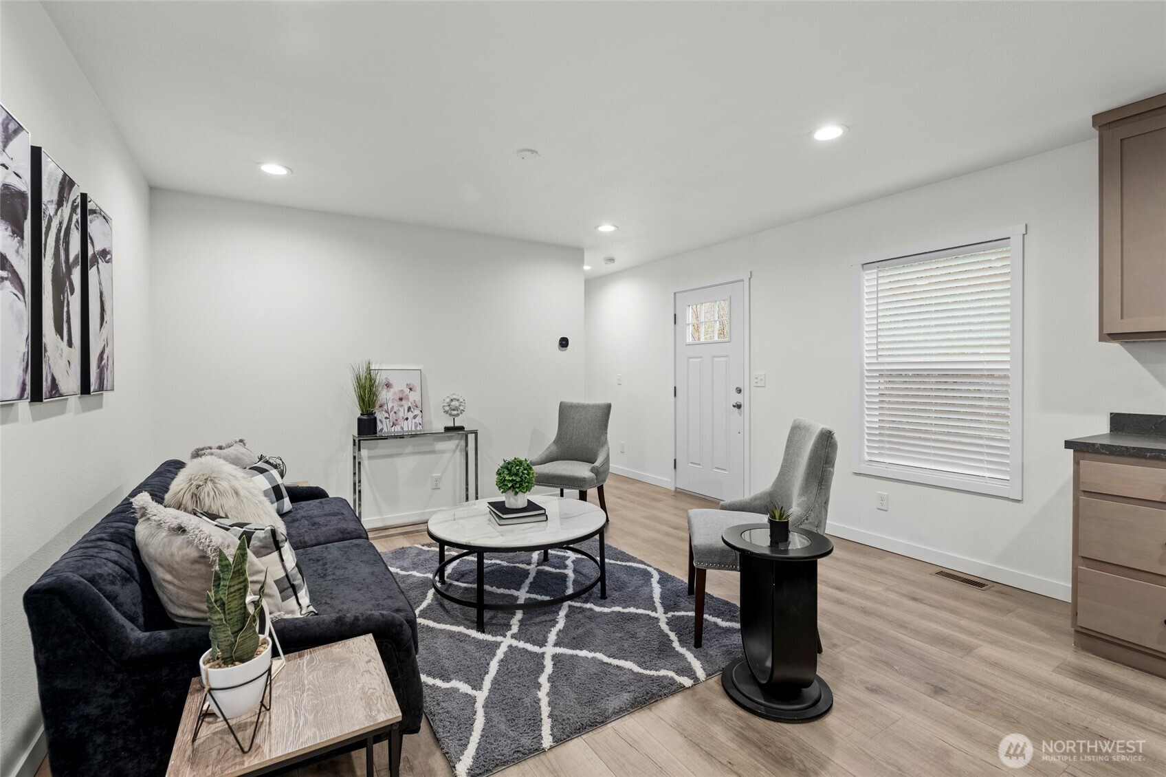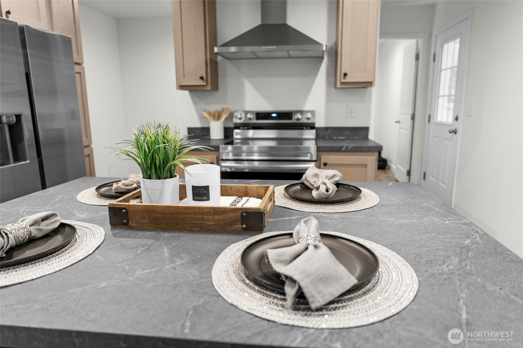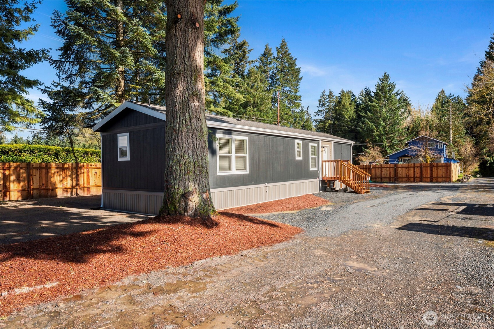 AFFORDABLE & BRAND NEW ON ITS OWN LAND! Enjoy the comfort of a brand new 900 sq ft manufactured home — No space rent, no HOA & move-in ready. The thoughtfully designed open floor plan features a bright living room flowing into the kitchen and dining area, complete with stainless steel appliances and a versatile kitchen island that doubles as a dining table. The spacious primary suite easily fits a king-size bed and includes a walk-in closet and private full ensuite bath. A second bedroom and full guest bath are located on the opposite end of the home, providing privacy for guests or household members. The laundry area and pantry are conveniently tucked behind the kitchen, maximizing functionality without sacrificing living space. Outside you’ll find stairs on both sides of the home, a composition roof, and low-maintenance vinyl windows. The well house features new components for added peace of mind, and fresh grass seed has just been planted to complete the yard. Fenced for privacy. Located just minutes from Tumwater, with quick access to Costco, shopping, parks, and everyday amenities, this property offers the perfect balance of new construction, affordability, and convenience.