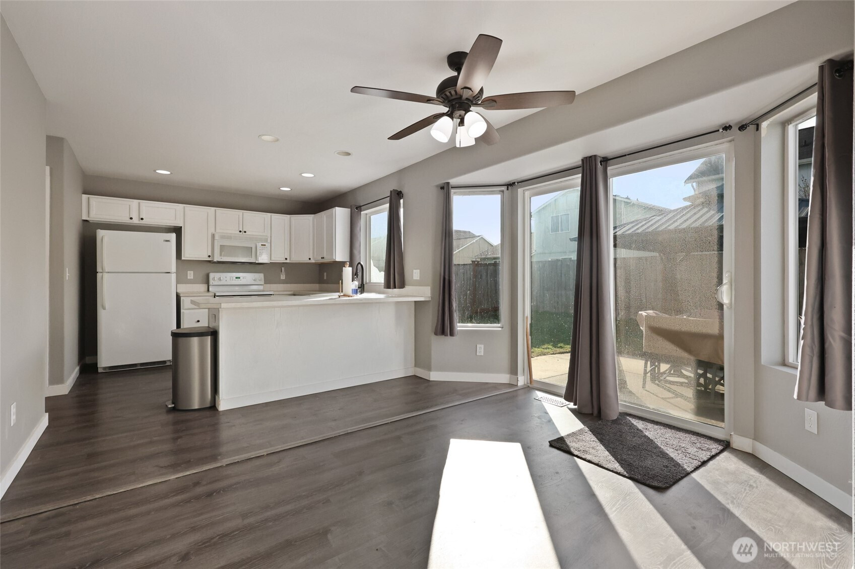 What a Gem! Come enjoy this well cared for home on the "Curve of the Loop" Plenty of parking in this location due to the interesting and unique neighborhood layout. Recent upgrades include exterior paint all around, hard floors on the full main level with an enlarged concrete patio and gazebo. The vaulted ceilings on the main level bring the huge feeling to the room with the kitchen with eating space all opened up to the sliding door out into the fully fenced rear yard. This location is excellent with easy access to all that Yelm has to offer. Easy access to JBLM - Highway routes to Tacoma or Olympia. Bring your imagination and come visit your new abode. Thank you