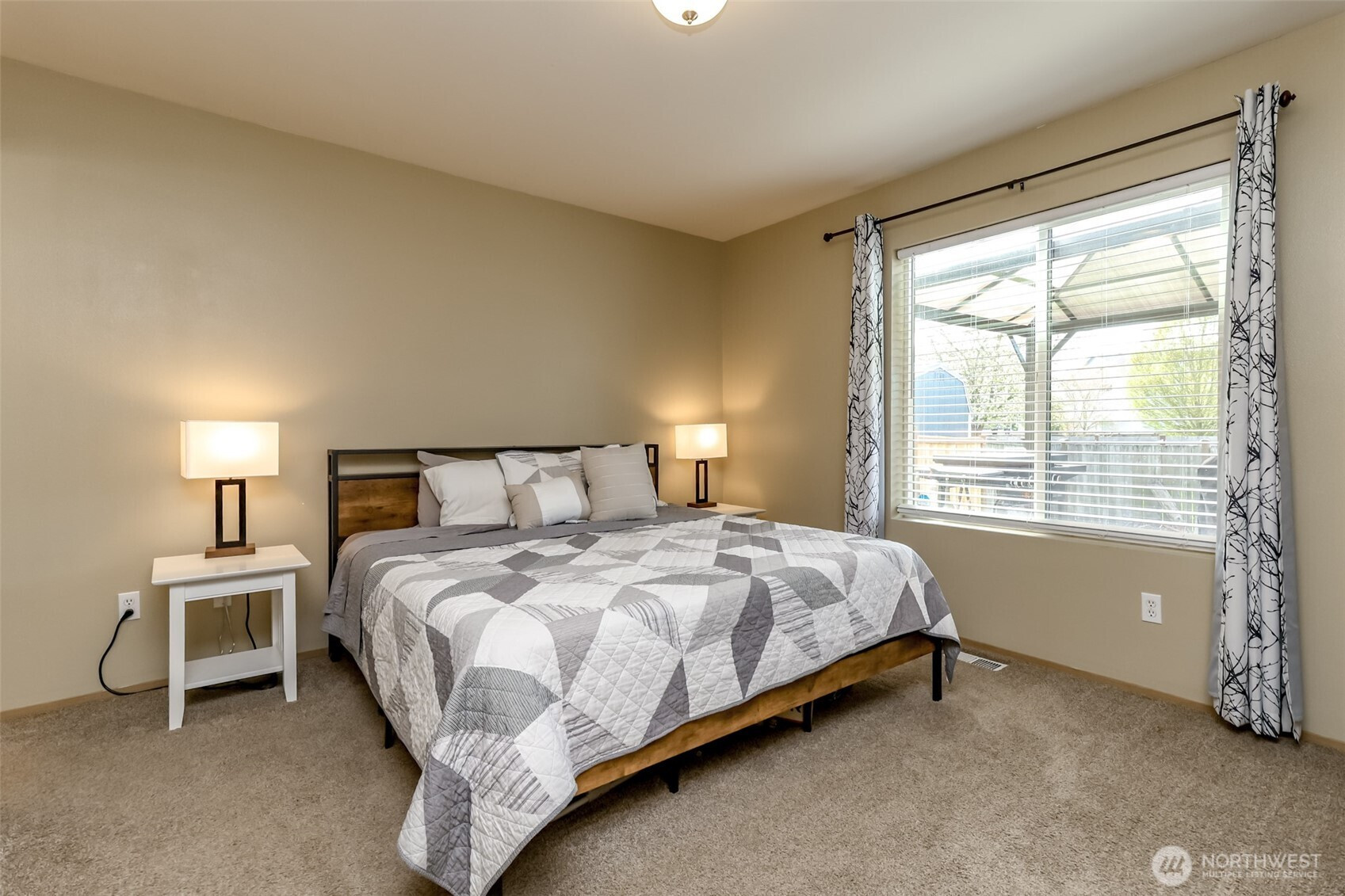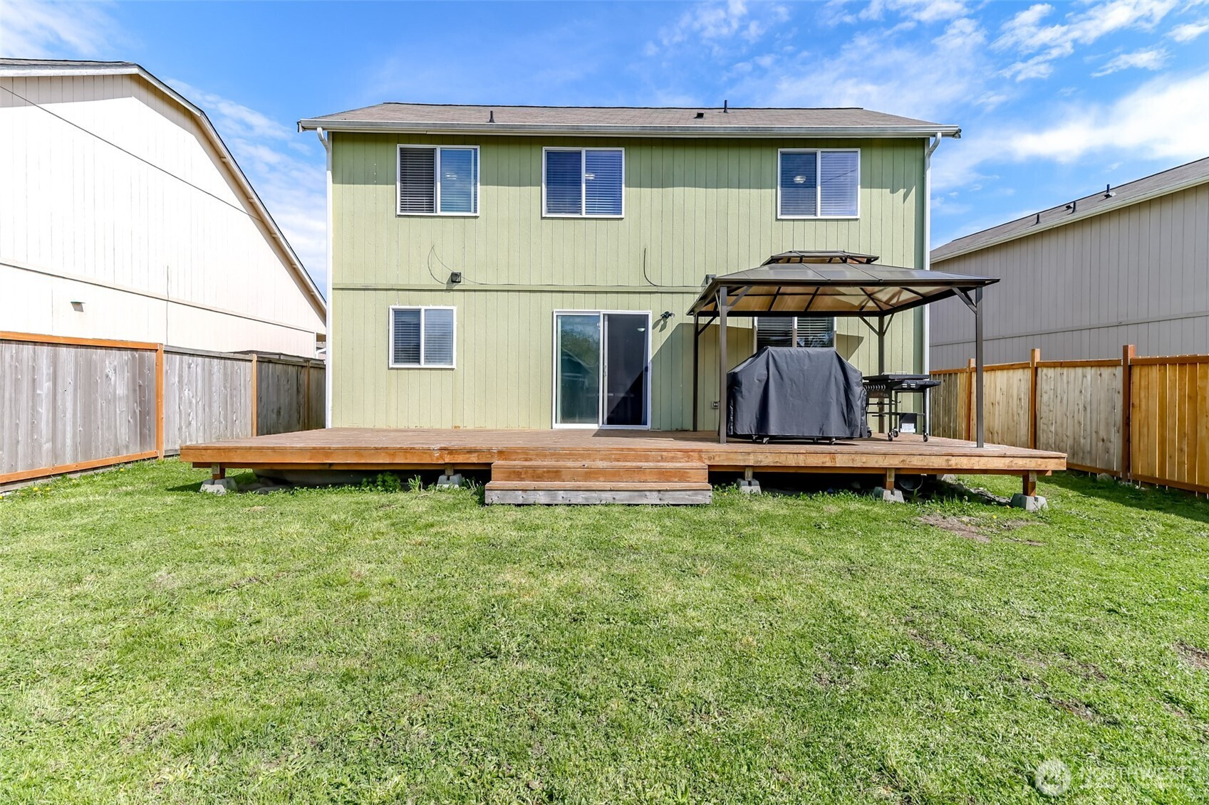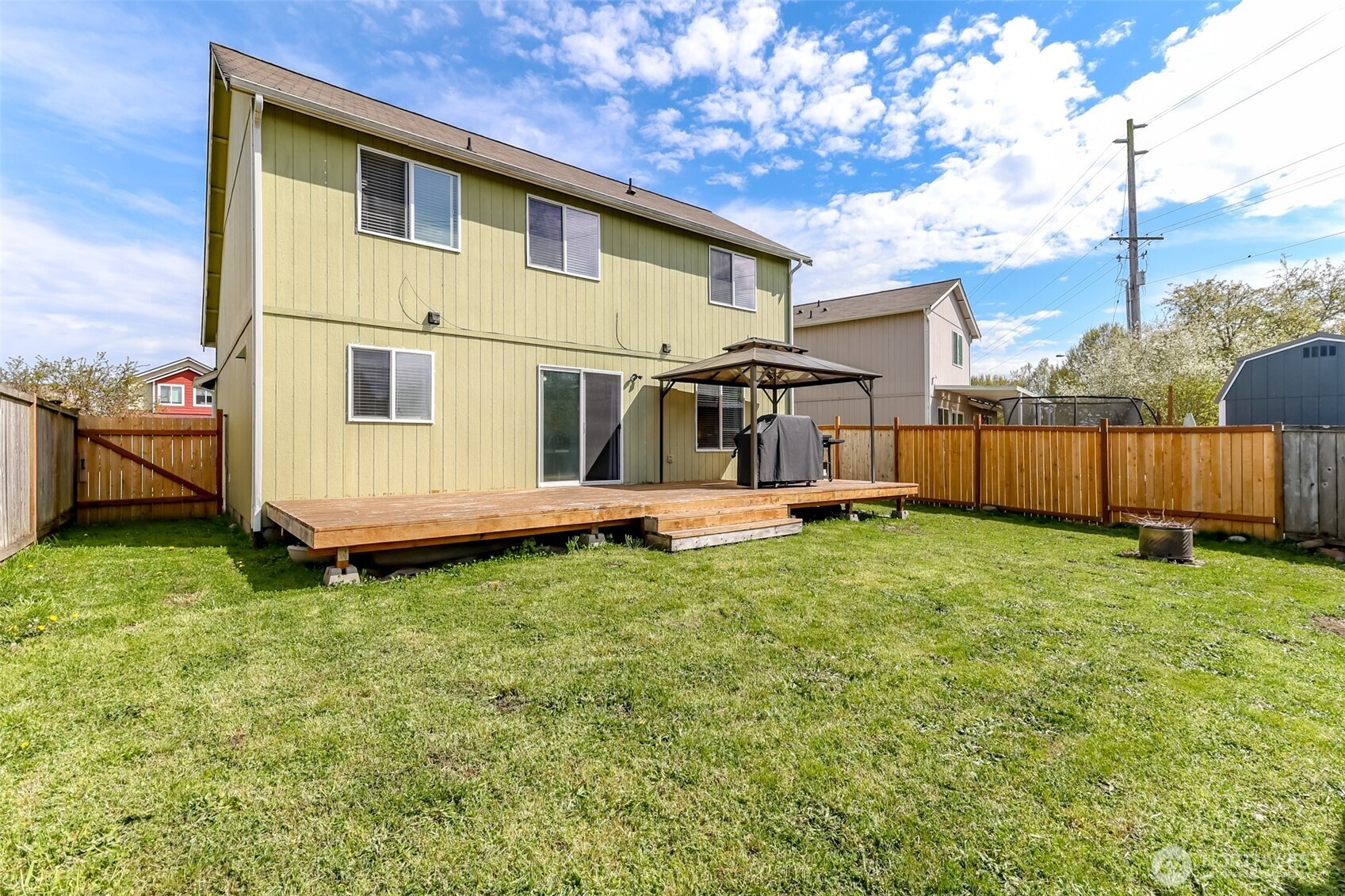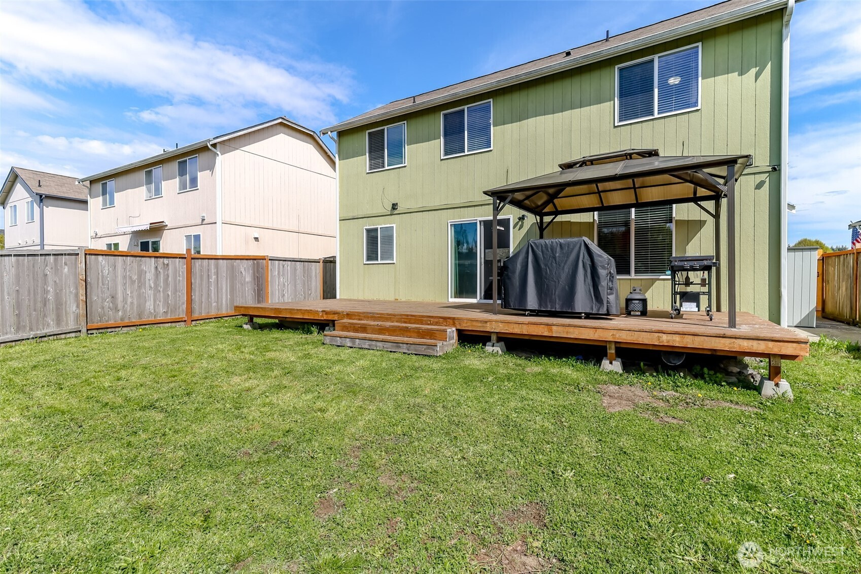 Step into this 3 bedroom home perfectly located near JBLM. The main level offers vaulted ceilings in the great room for an open airy feeling that leads to the eat in kitchen area and main level Primary bedroom complete with custom closet. The main level powder room has been tastefully updated along with light fixtures, blinds, and bathroom fixtures throughout the home. Upstairs you'll find two bedrooms plus a third versitile room- perfect for an office or extra bedroom and a full bath. Enjoy outdoor living on the spacious deck with covered pergola ideal for entertaining or relaxing. Air conditioning for year round comfort. This home is ready for you to move in and enjoy!