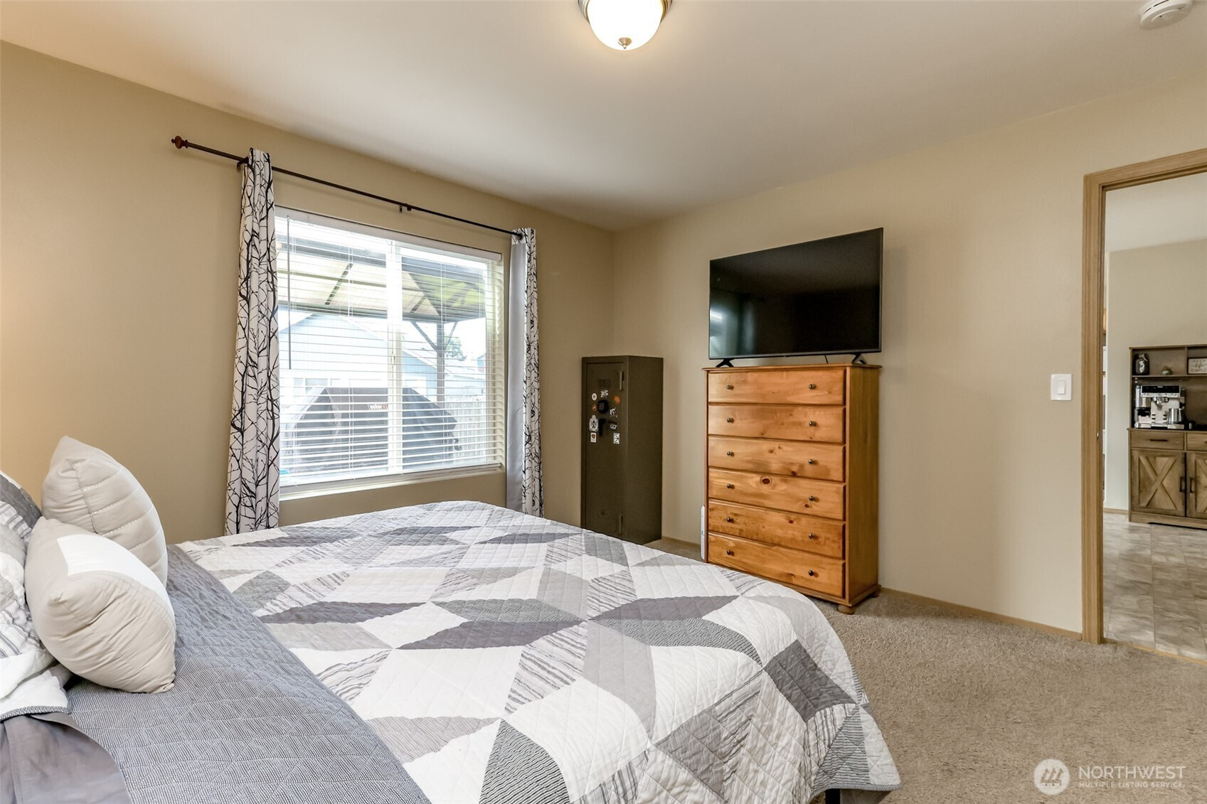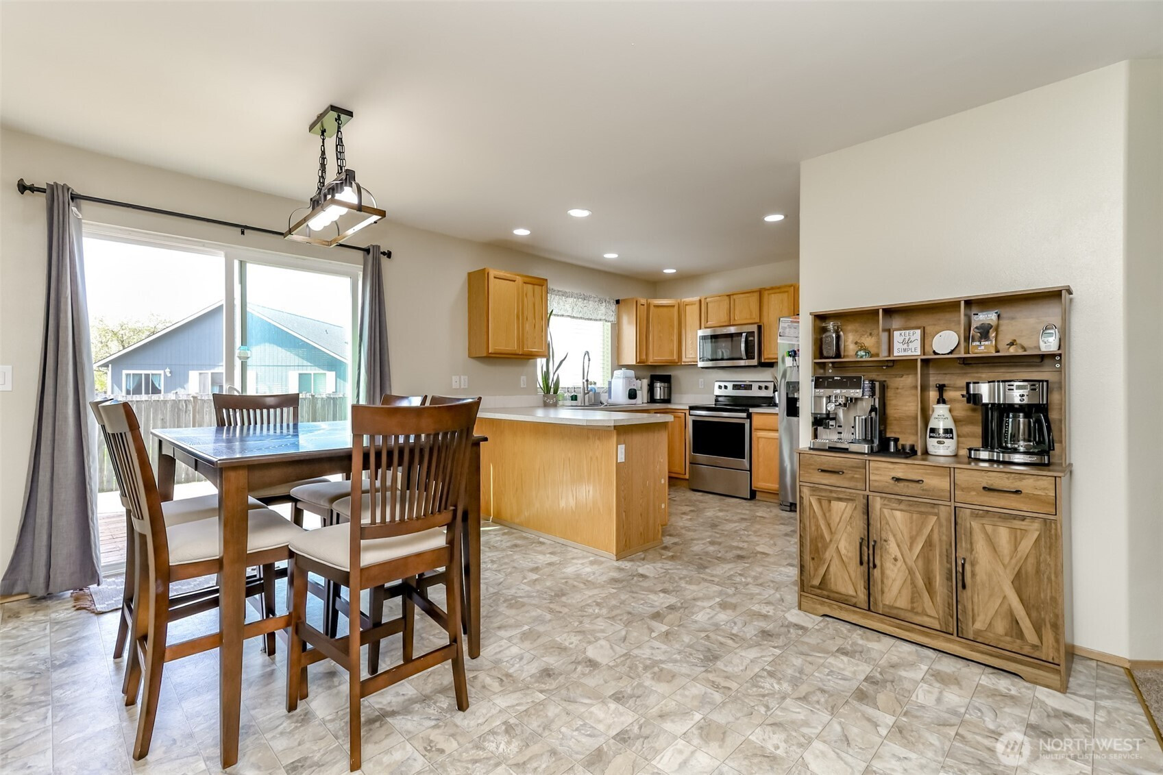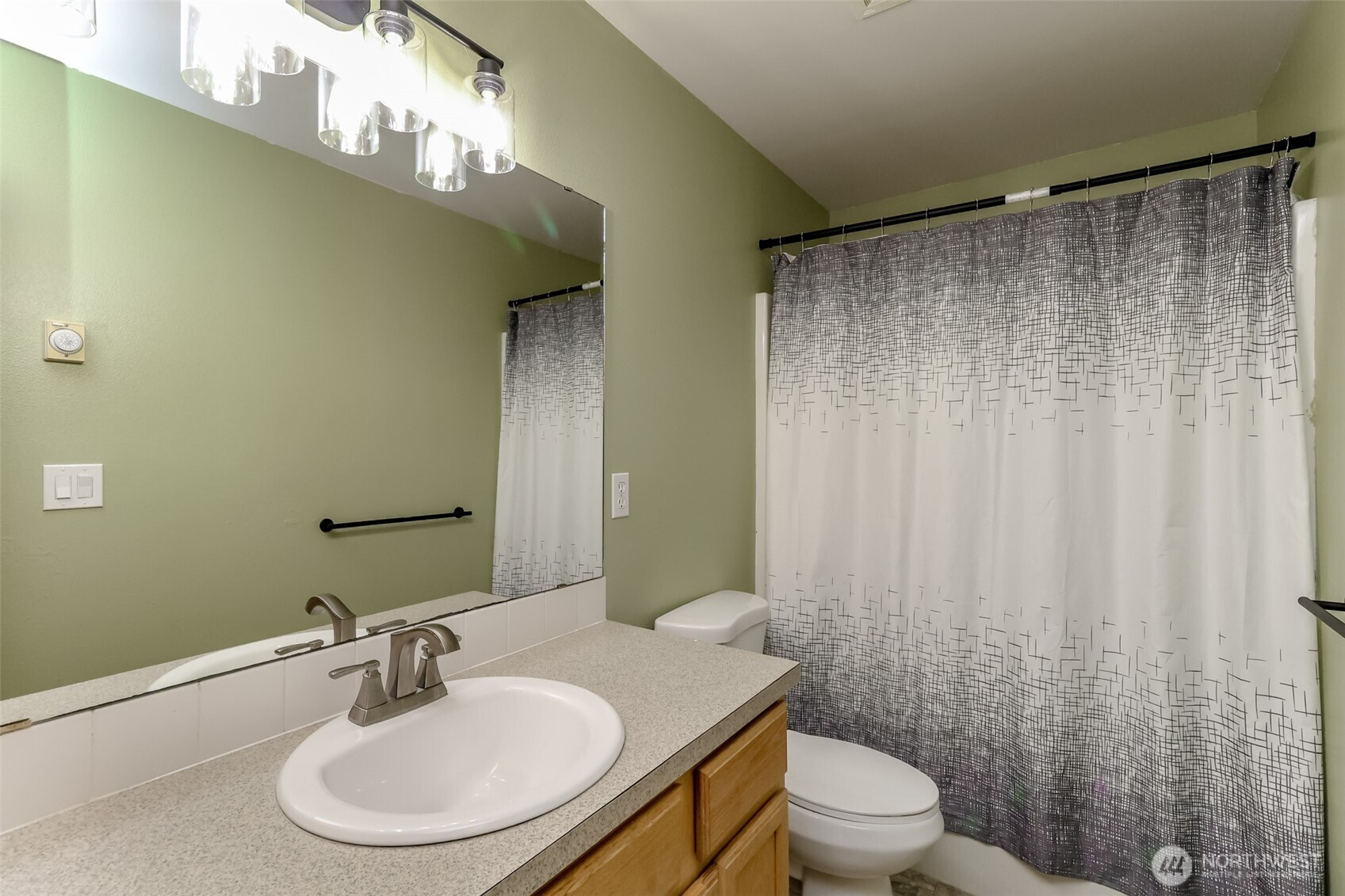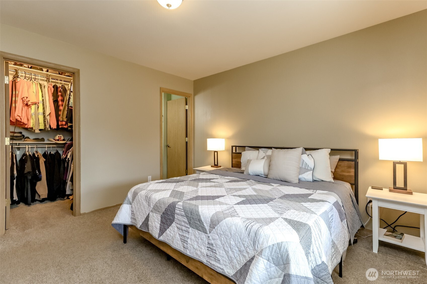 Step into this 3 bedroom home perfectly located near JBLM. The main level offers vaulted ceilings in the great room for an open airy feeling that leads to the eat in kitchen area and main level Primary bedroom complete with custom closet. The main level powder room has been tastefully updated along with light fixtures, blinds, and bathroom fixtures throughout the home. Upstairs you'll find two bedrooms plus a third versitile room- perfect for an office or extra bedroom and a full bath. Enjoy outdoor living on the spacious deck with covered pergola ideal for entertaining or relaxing. Air conditioning for year round comfort. This home is ready for you to move in and enjoy!